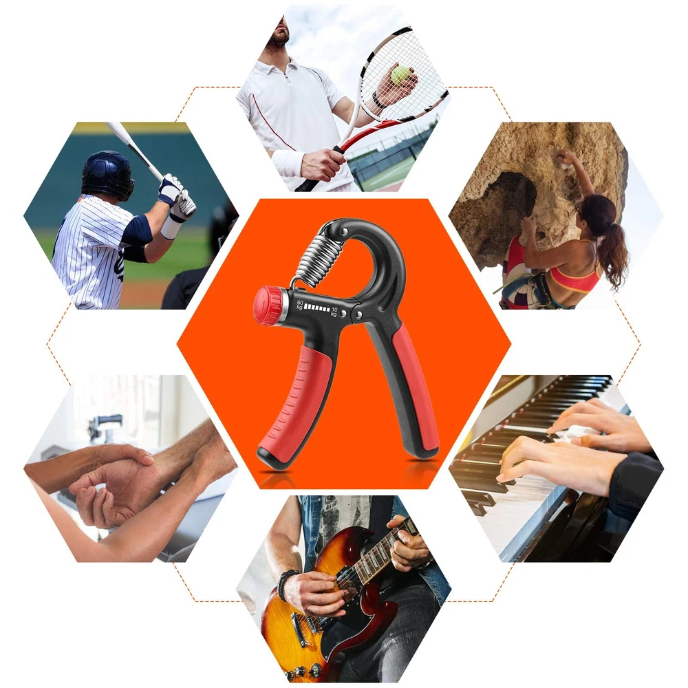 Grip Strength Trainer, Hand Grip Strengthener, Adjustable Resistance 22-132Lbs (10-60kg), Forearm Strengthener, Perfect for Musicians Athletes (Orange, 1 Pack) IMPROVE YOUR GRIP STRENGTH & BUILD STRENGTH - The adjustable grip strengthener is excellent for strengthening hands, forearms, wrists and fingers. It’s easy and efficient, and it helps to strengthen your grip, relieve , and increase stamina. Ideal for anyone wanting to develop and maintain strong healthy hands. ADJUSTABLE RESISTANCE & PORTABLE PERSONAL HOME GYM - Adjustable resistance, you can adjust it from 22 lbs (10 kg) to 132 lbs (60 kg) according to your need. Can be done at home or in office with just 5-10 minutes per day. Perfect for athletes, musicians, rock climbers, tennis players, etc. HIGH QUALITY & DURABLE - Our grip strength trainer is made of heavy-duty plastic and reinforced metal alloy materials, unlike our competitors, which will break or even be made of low-quality materials. Durable and safe, it will not damage your hands and fingers, which will bring you an excellent user experience. EASY TO CARRY & PORTABLE DESIGN - We designed this hand exerciser grip strengthener with you in mind. No matter you’re beginner or an experienced person, you can start grip training anytime and anywhere. hand gripper is made of lightweight and high-quality materials so that you can easily put them in your bag or pocket and carry them anywhere. 24/7 USA - Finding the right grip strength trainer from a reliable, trustworthy company is challenging. You, the , are always #1. We hope you enjoy your grip trainer and if you have any questions regarding your hand grip strengthener, just send a message, and of our friendly, USA-based members will offer you any help you need. Click the ADD TO CART button now and try our product completely risk !