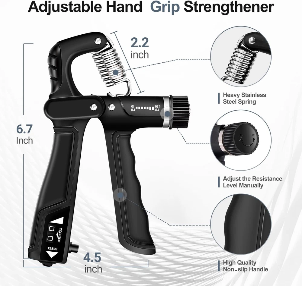 Menu Other Items Feedbacks About Us Contact Us Add To Favorites Grip Strength Trainer Kits (5 Pack), Forearm Strengthener with Adjustable Resistance, Grip Strength Tester, Finger Strengthener, Hand Gripper Strengthener for Muscle Building Injury Recover ใ๐๐ผ๐บ๐ฝ๐น๐ฒ๐๐ฒ ๐๐ฟ๐ถ๐ฝ ๐ฆ๐๐ฟ๐ฒ๐ป๐ด๐๐ต ๐ง๐ฟ๐ฎ๐ถ๐ป๐ฒ๐ฟ ๐ช๐ผ๐ฟ๐ธ๐ผ๐๐ ๐๐ถ๐๐ ๐ฑ ๐ฃ๐ฎ๐ฐ๐ธใThe grip strength trainer set includes an adjustable forearm strengthener(10-130 lbs), Wrist Workout, finger strengthener, Hand Strengthener Grip Ring, and Stress Relief Grip Ball. This grip strength tester set can help you comprehensively strengthen and exercise your hand, fingers, wrist, elbows, and forearms. ใ๐๐ฎ๐๐ ๐๐ผ ๐จ๐๐ฒ & ๐๐ผ๐๐ป๐ใOur forearm strengthener adds a smart counter. Automatically record the number of times you press the button count each time and rotate the button to clear the digitals. You press the button count each time and rotate the button to clear the digitals. Help you get the training progress better. ใ๐ฅ๐ฒ๐ต๐ฎ๐ฏ๐ถ๐น๐ถ๐๐ฎ๐๐ถ๐ผ๐ป ๐ฆ๐๐ฝ๐ฝ๐ผ๐ฟ๐ใRegular use of the hand strengthening devices aids in the recovery of hand injuries, rheumatoid arthritis, arthritis, carpal tunnel syndrome, tendovaginitis, fractured or broken wrists, and even tendon surgery. ใ๐๐จ๐ฆ๐๐จ๐ซ๐ญ๐๐๐ฅ๐ & ๐๐จ๐ซ๐ญ๐๐๐ฅ๐ใThe hand gripper strengthener features an ergonomic and soft handle that fits comfortably in small and large hands, catering to seniors, teenagers, and individuals of all ages. The resistance levels of the hand grip strengthener can be easily adjusted from 10 to 130lbs, making it suitable for both men and women with varying strengths. With its portability, you can conveniently use the grip strength tester anytime, anywhere. ใ๐ ๐จ๐ซ ๐๐ฏ๐๐ซ๐ฒ๐จ๐ง๐'๐ฌ ๐ ๐ข๐ญ๐ง๐๐ฌ๐ฌใThis hand grip strengthener are the ideal tool for strengthen your wrists, improve finger dexterity, and increase hand strength while reducing fatigue with this grip strength trainer. Perfect gifts for athletes, musicians, rock climbers, weightlifters, martial artists, and individuals recovering from hand injuries or surgery. Product Description โAdjustable Hand Grip Strengthener (10-130Lbs) โFinger Resistance Band (13 lbs, 17 lbs, 21 lbs) โFinger Exerciser (4 lbs) โStress Relief Grip Ball โHand Strength Ring How to use djustable hand gripper? Item Specification Tension Level 10-130 lbs Style SPORT Part Number TA-gst-02 Color BLACK Material Plastic Package Weight 0.46 Kilograms Item Weight 0.46 Kilograms Shape Variety Item Package Dimensions L x W x H 6.89 x 4.41 x 2.52 inches Dimensions Shipping Returns Additional Info Product Dimensions: 4.41 inches x 6.89 inches x 2.52 inches. Weight: 0.46 kg Fast shipping is very important for us. Our standard shipping service is FREE. Your order will be shipped within 1-3 business days upon full payment received. Most items are delivered within 3-5 business days, however, please allow 3-10 business days. We are shipping only to USA. We only ship to the confirmed Paypal address. We reserve the right to cancel any order for any reason at any time. We are not responsible for undeliverable addresses. We offer a 30 day return policy from checkout winning date. Your satisfaction is guaranteed! If for any reason you are unhappy with your item, just return it within 30 days for a full refund, minus shipping cost. Please contact us prior to initiating a return so that we can issue you a refund authorization. Items defective upon receipt must be packaged in their retail packaging as if new and returned with a detailed description of the problem. Return shipping fees are not refundable. We reserve the right to decline any returns if the above guidelines are not followed. All of our items, unless otherwise stated, will only run on 120 volts. Please check to make sure your country complies with these specifications. If you have a problem or question regarding your transaction please contact us before leaving any type of feedback. We will work with you to resolve any problem you may have.