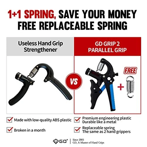Menu 1. We require immediate payment. 2. We currently accept payment via eBay managed payments only. 3. Once payment is cleared, we will dispatch your shipment within 1-3 business days. Please refer to the "Shipping" tab for more information regarding shipping speed to your destination. Grip2 Hand Grip Strengthener (Grip Strength Trainer) Adjustable Gripper (22~77lbs) Forearm and Wrist Exerciser Strengthener for Grip Strength Product description [Dual Function for Strength and Gap Adjustment! Customizable Hand Gripper] Parallel Grip allows you to adjust both the resistance intensity and the handle gap with ease. You can adjust the resistance from 22 to 77 pounds, and the handle gap can be customized from 3.2 to 2.5 inches. Whether you're a child with weaker grip strength, a senior, or an average adult male, anyone can tailor their hand strength exercise to match their hand size and strength. [1+1 Replaceable Springs] It's like buying two hand grippers with just one! Worried about the springs breaking? No need to fret because you can easily replace them. With a durable body that won't break easily, simply switch out the springs as needed! [Unmatched Grip Comfort, Parallel Handle Operation] The handles operate parallelly, evenly distributing force to all fingers gripping the hand gripper. This provides unparalleled comfort not found in A-shaped hand grippers. Your finger and wrist joints will experience comfort even with frequent use, as t's no strain on them. [Lightweight Yet Durable Like a Tank! High-Quality Components] The body of Parallel Grip is constructed from high-strength engineering plastic. It's incredibly lightweight yet as sturdy as a tank. Unlike easily breakable ABS plastic, this material ensures you won't have to worry about it breaking, even with a of use. PATENTED - GRIP 2 Parallel is protected by PATENT issued by the US government (PATENT NO. US US10,881,903 B2). PLEASE MESSAGE US IF YOU HAVE ANY OTHER QUESTIONS, AND MANY THANKS FOR READING ALL OF THIS. Copyright ©#. All Rights Reserved.