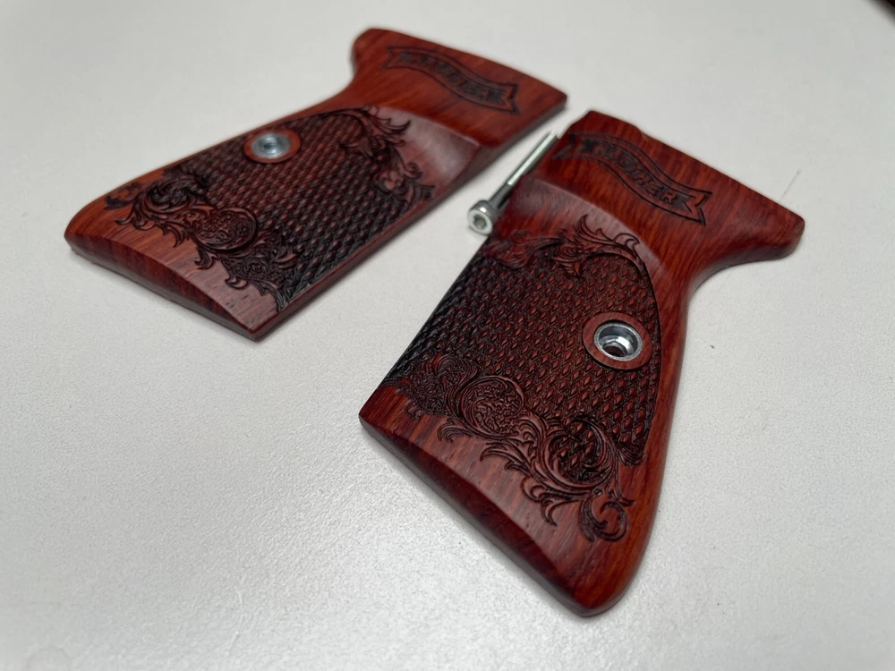 NEW GRIPS FOR WALTHER PP, PPK/S INTERARM .32/.380 ACP , 22LR CHECKERED HARDWOOD , THAI HANDMADE For Interarm & S&W manufactured ONLY Not fit Arkansas PPK/S takes the difference grips for the PPK Please note: This set is not fit for PPK (because PPK is Closed back strap we can't made them) Description Please Note; Do not buy If you not understand in variation of wood color from one piece to the next or handmade job Condition: new Material: praduak wood Quantity: 1 Set = Right and Left side of grips and screw Import duties, taxes, and charges are not included in the item price or shipping cost. These charges are the buyer's responsibility. Please check with your country's customs office to determine what these additional costs will be prior to bidding or buying. Shipping Handling WORLDWIDE. The package will be shipped directly from Thailand , and it will take about 7-15 business days . Please note: Import duties, taxes, and charges are not included in the item price or shipping cost. These charges are the buyer's responsibility. Please check with your country's customs office to determine what these additional costs will be prior to bidding or buying. 100% Satisfaction Guarantee : If you are not satisfied with the product you purchased for any reason, please contact us for a return instruction within 30 days for a refund. Shipping Handling costs are not refundable. Return shipping cost will be paid by buyer.