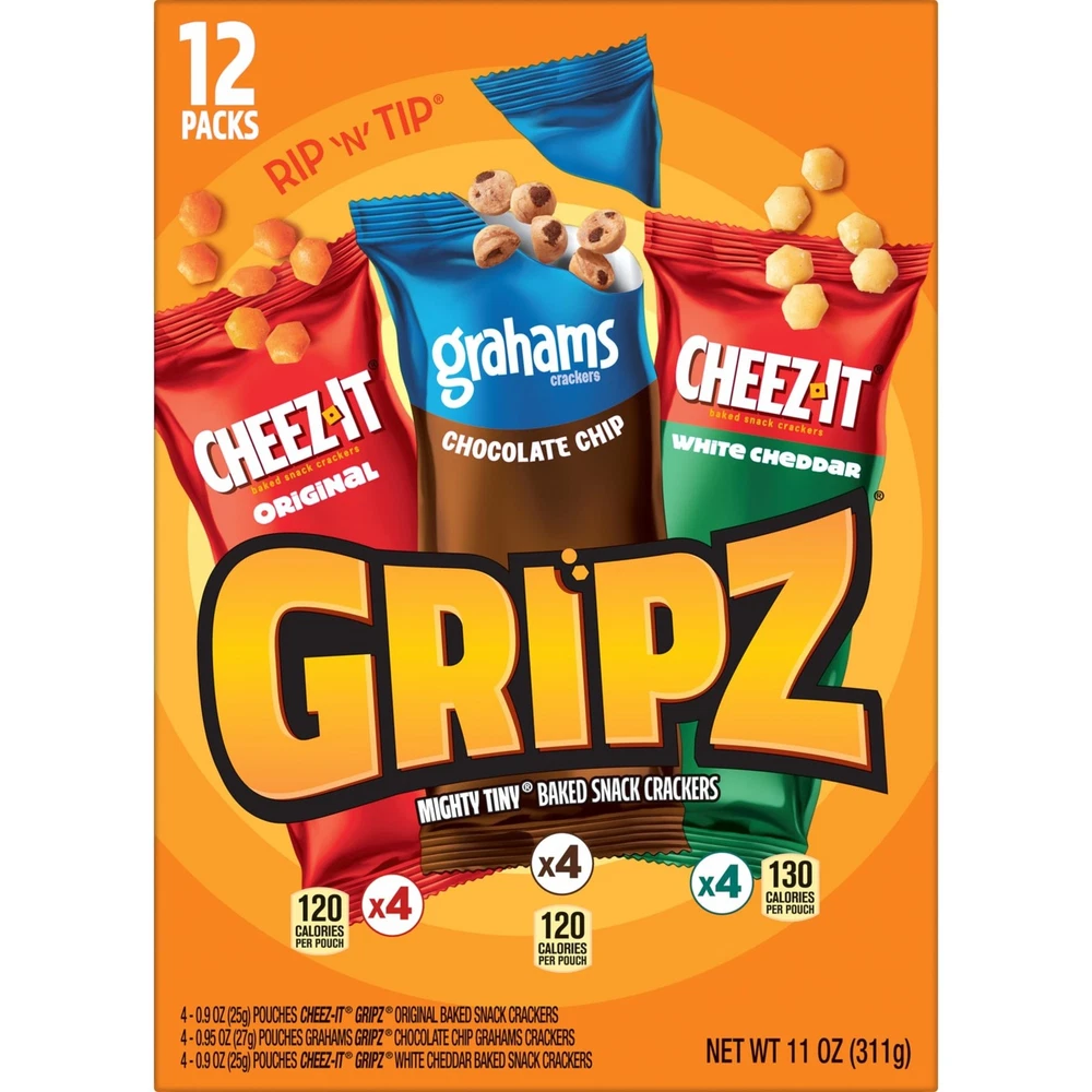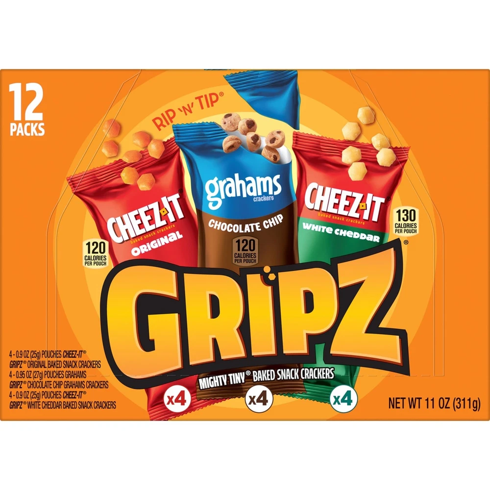 Gripz Mini Baked Snack Crackers, Sweet and Salty Snacks, Variety Pack, 11oz Box (12 Pouches) Mighty, tiny, and irresistibly snackable, this variety pack of Gripz snacks are just the right size for munching by the handful; Mega flavor, mighty tiny Easy-open Rip ‘n’ Tip pouch; Pour in your hand for a no-mess, on-the-go snack; Includes Cheez-It Gripz Original, White Cheddar, and Gripz Chocolate Chip Grahams Cheez-It Gripz crackers are made with 100% real cheese; Gripz Chocolate Chip Grahams snacks contain 8g whole grain; Contains wheat, milk, and soy ingredients Slim pouch fits easily into backpacks; Great for a lunch snack attack or sweet craving; Stock your pantry for a quick afterschool bite or share after the game Includes 1, 11oz box containing 12 pouches of ready-to-eat crackers Shipping We offer FREE shipping on all orders! We ship within Three business days of payment, usually sooner. We use a selection of shipping services such as UPS, FedEx, USPS etc. We only ship to the lower 48 states, no APO/FPO addresses or PO Boxes allowed. Local pickups and combined shipping options are not provided at this time. Return You can return a product for up to 30 days from the date you purchased it ONLY if it's in the original condition. The product cannot be used or open. Any product you return must be in the exact same condition you received it and in the original packaging. Please keep the receipt. Feedback Customer satisfaction is very important to us. If you have any problem with your order, please contact us and we will do our best to make you satisfied. Contact Us If you have any queries, please contact us via ebay. We usually respond within 24 hours on weekdays. Please visit our eBay store to check out other items for sale! Thank you for shopping at our store.