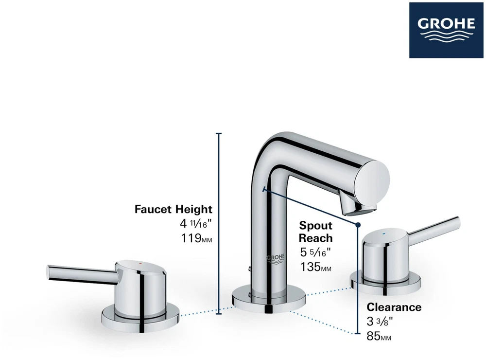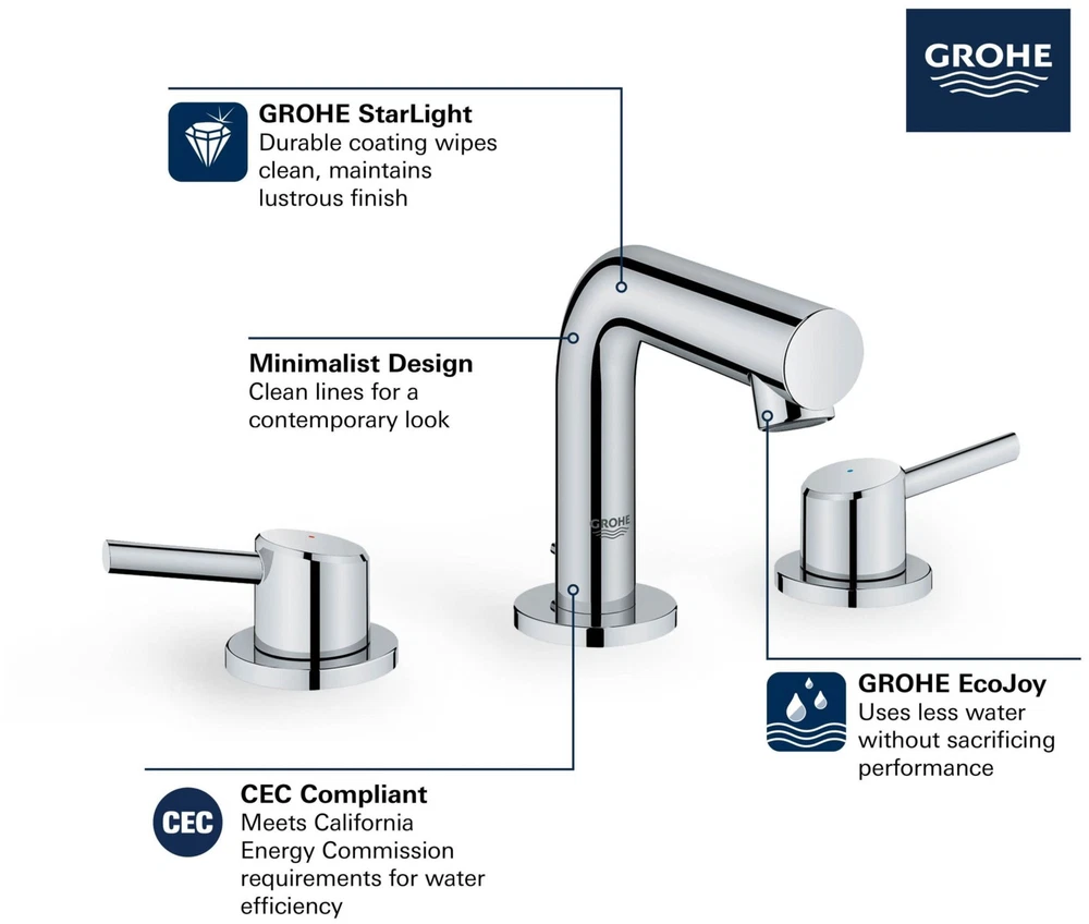 Powered by Frooition Top Products Kitchen Bathroom Lighting Fans Hardware Decor & Organization Grohe 20 572 Concetto 1.2 GPM 8" Widespread Double Handle Bathroom Faucet with SilkMove, EcoJoy, and QuickFix Technologies (Includes Metal Pop-Up Drain) Overview Item Description Grohe 20 572 Key Data: Spout Reach: 5-3/10" Spout Height: 3-6-16" Faucet Centers: 8" Max Deck Thickness: 1-3/16" Grohe 20 572 Features: Coordinates seamlessly with other products from Grohe's Concetto Collection Faucet body constructed of solid brass, ensuring durability for a lifetime Double handle operation allows for easy hot and cold temperature adjustments Grohe faucets are exclusively engineered in Germany Finishes will resist corrosion and tarnishing through everyday use - finish covered under lifetime warranty Stainless steel braided flexible supply lines ADA compliant - complies with the standards set forth by the Americans with Disabilities Act for kitchen faucets Low lead compliant - meeting federal and state regulations for lead content WaterSense Certified product - using at least 30% less water than standard 2.2 GPM faucets, while still meeting strict performance guide lines Fully covered under Grohe's limited lifetime warranty Product Benefits / Technologies: StarLight Finish: Continuously improving over the last 70 years Grohe's unique plating process has been refined to produce and immaculate shiny surface that is recognized as one of the best surface finishes the world over. Grohe plates sub layers of copper and/or nickel to ensure that a completely non-porous, immaculate surface awaits the chrome layer. This deep, even layered chrome surface creates a luminous and mirror like sheen. SilkMove Cartridge: The rich and smooth handling of our single lever faucets conveys pure quality. As you change the temperature from hot to cold, one ceramic disc glides effortlessly across the other with absolute precision. These cartridges are manufactured in a high-tech process and feature discs made from a space-proven ceramic alloy. The SilkMove cartridge is yet another example of design and technology fusing to bring you an enhanced water experience. EcoJoy : Products are systematically designed to save water and energy so that precious resources are conserved. These products, equipped with water-saving technologies, offer the perfect water experience without the need to compromise. Reducing water and energy consumption goes hand in hand with convenience and attractive design. Less water. Perfect flow. QuickFix Plus: Precision engineering has enabled Grohe to simplify the installation process by reducing the complexity and number of parts required to fit a product. This installer-focused technology can reduce installation times by up to 50%, saving both time and money Grohe 20 572 Specifications: Overall Height: 4-11/16" Spout Height: 3-6/16" Spout Reach: 5-3/10" Installation Type: Deck Mounted Number of Holes Required for Installation: 3 Faucet Centers: 8 Flow Rate: 1.2 gallons-per-minute Maximum Deck Thickness: 1-3/16" 2 handles included with faucet Why Choose BuildInc? OUR PROMISE TO YOU About Us At Build, we promise to provide the best selection we can, most competitive pricing, and unmatched customer service. Our store has quality home improvement products from trusted manufacturers like Moen, American Standard, Delta, Kraus, Kichler, Progress Lighting, Schlage, Kwikset, Baldwin, Broan, NuTone, Air King, and Rev-A-Shelf. With over 200,000 home improvement products for you to choose from, we have just what you need to get your project done. Fast & Free Shipping We promise to make it our priority to get you your items as fast as we can. We ship from 440 warehouses around the country, ensuring that your product will get to you as soon as possible. We know you're eager to get your hands on your new purchase, we would be too. As a bonus, most items ship for free. Returns We are happy to accept returns of unused or defective items for a refund within 30 days from the date of delivery. For returns outside 30 days, please contact our Customer Service team to go over our options. For full details, please view the Shipping and Payments tab above. To initiate a return simply go to the eBay Returns Portal and submit a return request. We ask that all items be returned with all original components via a traceable method. Once your return is received and processed, we will quickly get your refund or replacement issued. If for any reason you are unsatisfied with your purchase or for product or warranty questions, please contact Customer Service team for assistance. More Items! View more great items Kingston Brass KS312.AX Vintage 1.2 GPM Wall Mounted Widespread - Chrome $305.47 Delta 3595LF-MPU-LHP Cassidy Widespread Bathroom Faucet - Chrome $389.00 Moen T6905 Voss Double Handle Widespread Bathroom Faucet - Pop-Up - Chrome $326.63 Delta 3597LF-MPU-LHP Cassidy Widespread Bathroom Faucet - Bronze $569.00 About Us | Shipping | Returns | Contact Us | FAQ | Collections | Special Offers! Powered by Frooition Frooition Frooition | No-js Template | eBay design, eBay store design, eBay shop design, eBay template design, eBay listing design (ver:froo_no_js) This listing is currently undergoing maintenance, we apologize for any inconvenience caused.