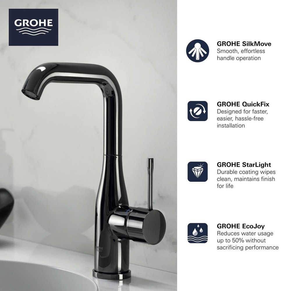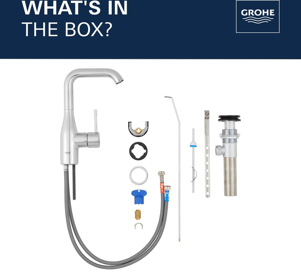 Type: Bathroom Sink Faucet Number of Faucet Handles: 1 Model: 23 486 A Material: Brass Spout Height: 8.3125 Number in Pack: 1 Features: Grohe 23 486 A Essence 1.2 GPM Single Hole Flow Rate (GPM): 1.2 Item Weight: 3.3 lbs Item Length: 4.62 in California Prop 65 Warning: No Finish: Chrome Room: Bathroom gtin13: 4005176569142 Spout Reach: 5 Color: Silver MPN: 3221600A Brand: GROHE Collection: Essence Style: Contemporary Item Height: 6.87 in Faucet Mounting Type: Single-Hole Number of Faucet Holes: 1 Handle Type: Lever Manufacturer: GROHE Country of Origin: China Labels & Certifications: WaterSense UPC: 4005176569142 Item Width: 3.5 in Installation: Deck Mounted Suitable For: Bathroom Sink