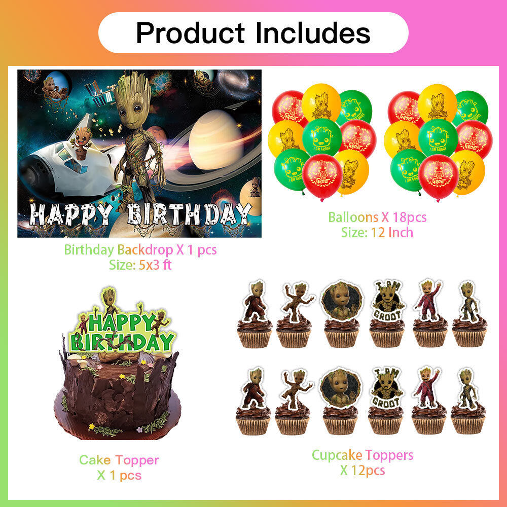About this item 【Themed Sets of Matching Units】: ☰ Take this good favor for themed party to impress your kids and their friends. ☰ Enrich your kids’childhood dream well,giving them a fantastic surprise. 【Party Decor Is So Easy】 ☰ It contains all of your Groot birthday party tableware needs and is completely disposable. ☰ You can save more time to enjoy this party with your guests. 【Real Savings For You】 ☰ The shiny large backdrop decor will attract you eyes and make everyone laugh.The banner cloth is printed in high definition, making it the perfect party background wall. It is made of thick cloth, not paper. ☰ You will save over 70% compared to buying 2 Groot party supplies separately. 【Super Value Groot Package】: ✪ 1PCS X Large Happy Birthday Banner 5x3ft(150x100cm) ✪ 18PCS Balloons. ✪ 1PCS X Cake Topper. ✪ 12PCS X Cupcake Toppers. 【After Sale Service】: ☰ We try our best to bring the best use experience to our customers. ☰ If you are not satisfied with the purchase of this set or have any questions about the product,please contact us at any time.We will definitely solve the problem for you in the first time. ☰ We can also custom backdrop other size or pictures you want. Any questions please contact us. On Feb 21, 2024 at 03:46:44 PST, seller added the following information: On Mar 25, 2024 at 05:27:43 PDT, seller added the following information: On Sep 19, 2024 at 06:20:30 PDT, seller added the following information: On Jun 9, 2025 at 18:49:03 PDT, seller added the following information: