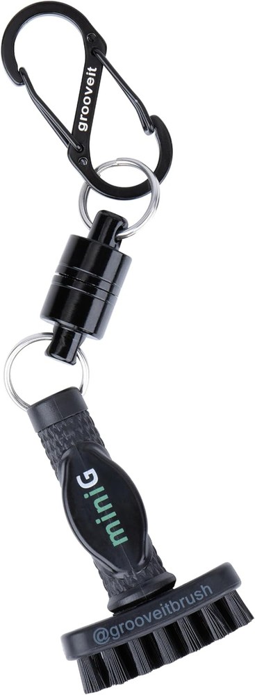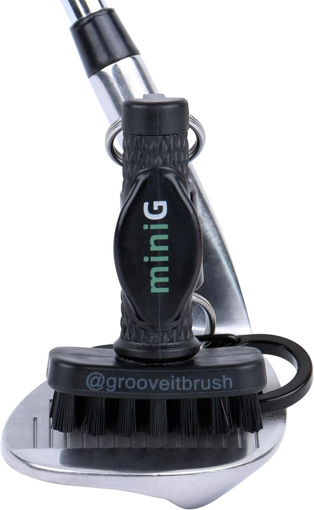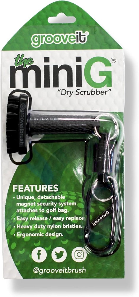 Grooveit Mini Golf Brush The Small MiniG 'Dry Scrubber' Features A Black Product Details Product Dimensions: 3.56 x 7.96 x 1.01 inches Item Weight: 1.76 ounces Department: unisex-adult Manufacturer: Tier 1 Cleaning Tools LLC Country of Origin: China Item model number: GROOVEIT MINI G BRUSH Batteries required: No Included Components: mini G dry golf club cleaning brush Import: Imported TRUSTED BY PROS & AMATEURS - The Grooveit MiniG Golf Club Cleaning Brush, a favorite among professionals and recreational players, is your mini scrubber for pristine clubs. It's the essential golf club cleaning kit accessory, combining efficiency, compactness, and the perfect addition to your golf accessories bag. CONVENIENT MAGNETIC ATTACHMENT - Our heavy-duty magnet and industrial-grade S-clip ensure quick access to your mini scrubber brush, a vital component of your golf club cleaning kit and golf club accessories. Reliable and securely attached to your golf bag, it's your go-to golf groove cleaner. EFFICIENT CLUBHEAD CLEANING - The MiniG's compact nylon-bristle brush head ensures maximum cleaning power for your golf clubs. Spend less time scrubbing and more time perfecting your swing. Keep your clubs in top shape for precision and cleaner shots, all with this mini scrubber brush. VETERAN-OWNED & OPERATED - Grooveit takes immense pride in being a veteran-owned and operated company, rooted in Oklahoma's golfing culture. By choosing our product, you support passionate golfers just like you. Join the Grooveit Brush family today and align yourself with the best in the game.