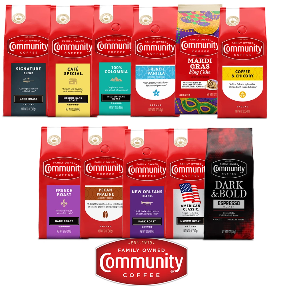 Community Coffee with a wide selection of choices from our 12 oz bag selection. Be sure to check up with us on sales and deals! If you don't see the one you are looking for, feel free to message us to see if we can find it! Disclaimer: All Images seen are from the sole provider, Community Coffee
