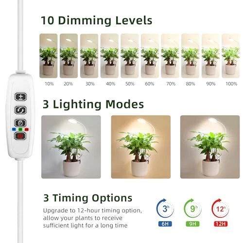 Return Policy Fast Delivery Trusted seller Grow Light for Indoor Plants Full Spectrum Plant Grow Lights 72 LED Plant Light Grow Lamp for Indoor Growing Pot Clip LED Plant Lamp (White, 1) Product Description FULL SPECTRUM LAMP: Our grow light with 36 White LEDs + 36 Warm White LEDs, it's similar to the natural daylight at noon, professionally designed for indoor plants, flowers, herbs and so on. Moreover, the light is soft and flicker-free, which is very suitable for reading lamp. AUTO ON/OFF TIMER FUNCTION: The plant grow light with automatic cycle memory timing function, can set a timer for 3/9/12 hours, the grow light will automatically at the same time every day turns on and off for 3/9/12 hours under the condition of continuous power supply, you will no longer have to worry about your plants when you are not at home. EASY TO INSTALL: Our plant grow lights with flexible thickened goosenecks and strong clamp, can easily rotate to adjust the angle between the lamp and plants, provide the best lighting angle for your plants. The clamp of the plant grow light is designed with a non-slip pad, which can fix the plant lamp well. 3 LIGHTING MODES AND 10 DIMMING LEVELS: Our grow lights for indoor plants full spectrum has 3 lighting modes (white light, warm white light and white+warm white light), please choose the lighting mode of this indoor grow light according to the growth status and environment of the plants. Moreover, our grow light provide 10 levels of light intensity to meet each plant's lighting requirements at different stages. PERFECT AFTER-SALES SERVICE GUARANTEE: If you are not satisfied with the product, please feel free to contact us, and we will provide you with a full refund. Shipping Returns Payment Shipping Shipping is FREE to all addresses other than APO/PO boxes in the lower 48 states. All our stock ships from US-based warehouses. Shipped via USPS or UPS (depending on location and package weight) Unless stated otherwise, all orders will ship within 24-72 hours of your payment being processed. Check our feedback to see the great reviews of FAST shipping we offer. Returns Seller does not accept returns Payment We currently accept payment via eBay managed payments only. Once payment is cleared, we will dispatch your shipment within 1-3 business days. Please refer to the "Shipping" tab for more information regarding shipping speed to your destination.