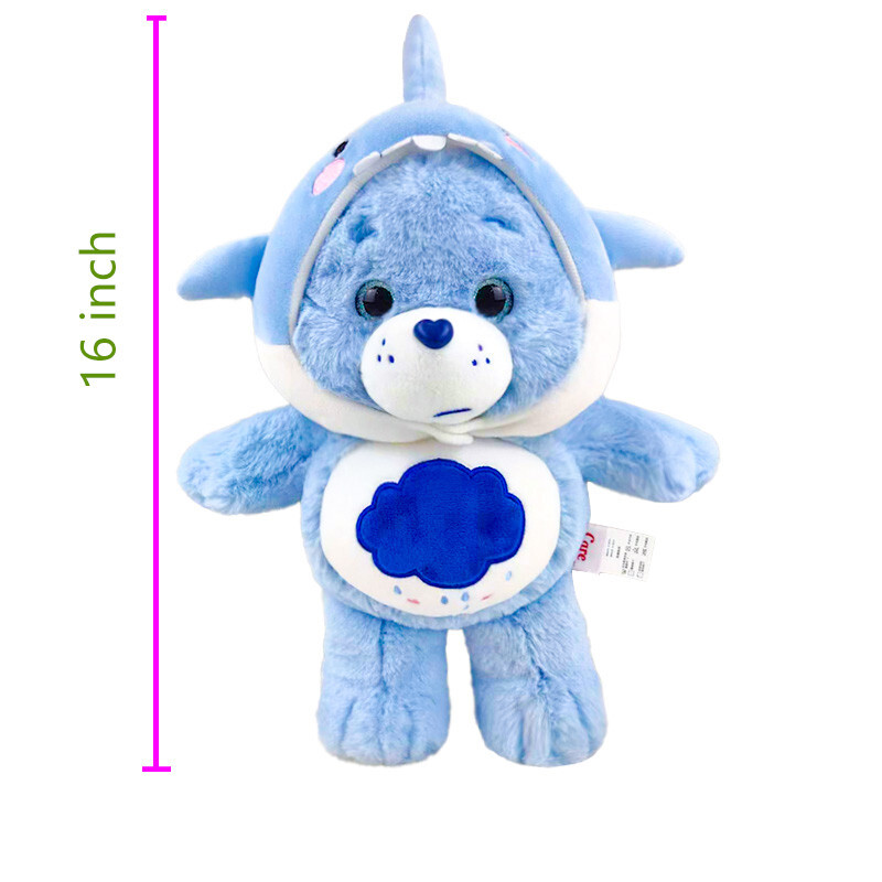 Grumpy Care Bear - Transform Shark Bear Product Specification Size: 16 inches Material: polyester fiber Function: Game, Interactive Weight: 320 grams Features 1. Shark element integration Contrasting shape: retain the rounded shape of the love bear, add shark features, chest love pattern into the “cloud” embroidery. Color scheme: classic ocean blue + white belly gradient, to strengthen the mystery of the deep sea. 2. Theme image Morphing and wearing interaction Shark form switching: Headgear morphing: Bear headdress can be quickly replaced by a “shark cover”, transforming into an ocean expedition leader. Healing shape: round body + cute expression, highlighting the warm and healing feeling. 3. Emotional management aid Through the “love bear - transformation shark shape” to convey positive emotions, to help children overcome separation anxiety or fear of darkness. Usage Scenario: Theme parties: as table decorations, photo props or raffle prizes, to unify the visual style of the party. Growth record: collect a bear every year to make a “bear and child” comparison photo wall. Packaging: Classic care bear-turned-shark model About Qingdao Qunze Toys Co. We produce non-stereotyped animal plush toys for education and decoration. Order now to experience the realistic effect! Note: Due to different measurement methods, the size will be slightly different, the error is 1-3CM. Due to the shooting environment and display equipment and other reasons, the product color may deviate, please prevail in kind.