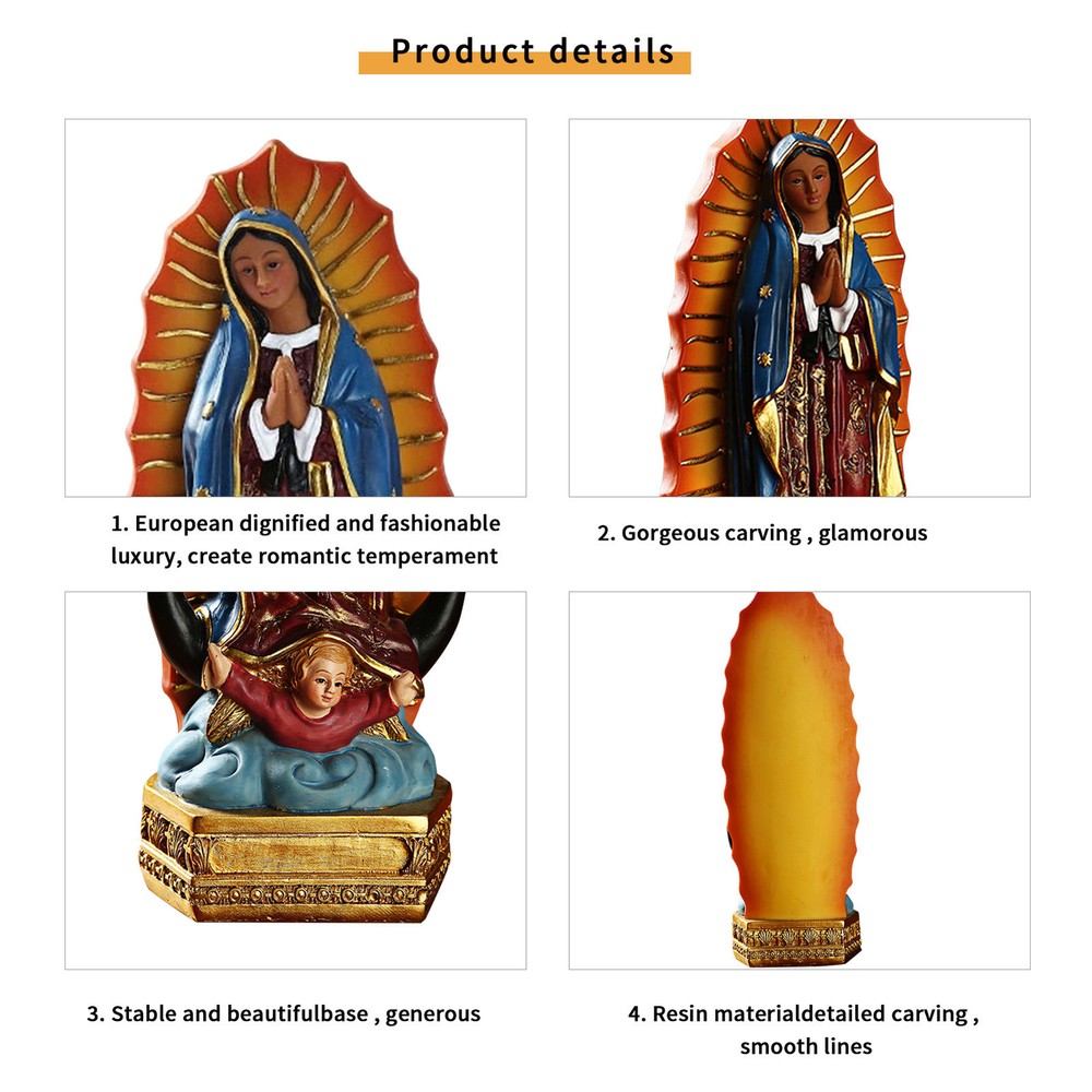 Guadalupe Mary Figure Resin Statue Our Lady of Guadalupe Statue Holy Mary Statue Bullet Points: High-quality Material: This figure is made with a resin stone mix and each carefully hand-painted. It is durable and strong, it has a long service life! Fine Workmanship: Our Faithfully Inspiring figurines, we have taken great care into the likings and details of facial expressions and the coloring. Each piece is hand-painted down to the slightest detail. Detail: This beautiful figure of Our Lady of Guadalupe shows her appearing to St. Juan Diego as he shows the cloth that she blessed him with roses. She appears in a grotto with the sun shining behind her and an angel under her. Gift: This collection is gift boxed for easy gift giving and storage. A perfect religious gift for any Catholic Christian, this piece makes a great conversational piece. Customer Assistance: We provide customer assistance programs. If you have any questions or suggestions about the products you have purchased, please be sure to give us feedback. Your satisfaction has always been our goal. Description: Our Virgin Mary is made of high-quality resin and stone and is durable. Stunning sculptures make it ideal for home decor. You can use it to decorate gardens, tables, windows, etc. Features: 1. Made of high-quality resin, very durable. 2. Bright color, not easy to fade! 3. Perfect as a birthday gift for a friend. Specification: Name: Guadalupe Mary Figure Material: resin Size: about 6.5*5.5*20CM/2.56*2.17*7.87in Application: suitable for living room decoration, window decoration, room decoration Packing List: Statue of Virgin Mary*1 Notes: Due to the lighting effects and shooting angles, there is a color difference in the product, please understand. Due to manual measurement, there is a tolerance in the product size. 1.You can make a Credit payment via Paypal.Paypal will let you use MasterCard,Visa to pay. 2.Payment should be completed within 5 days after auction closed, or unpaid dispute will be filed for an closing auction.An unpaid case will be filled after 4 days. ● We strive for 100% customer satisfaction ! ● Positive Feedback is very important to us. ● We hope that you contact us immediately BEFORE you give us neutral or negative feedback, so that we can satisfactorily address your concerns. ● We promise to offer the lowest price and high quality produce. Dear buyers : ● Welcome to my store ! ● Your satisfaction is our top goal,we appreciate your patronizing. ● If you have any questions, please contact us before leave negative or neutral feedback, we will try our best to solve the issue to your satisfaction, thanks ! ● If you are satisfied with our service, please rate the details of the transaction (Detailed Seller Ratings) on eBay. ● Please always talk to us via ebay Message. ● We appreciate your business and look forward to growing our e-Bay sales with satisfied customers.