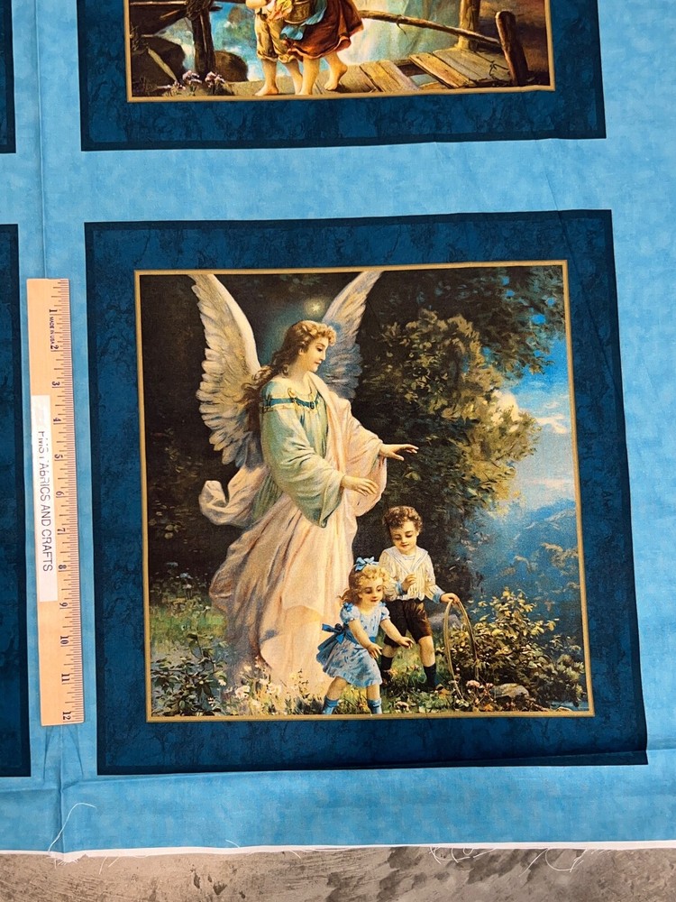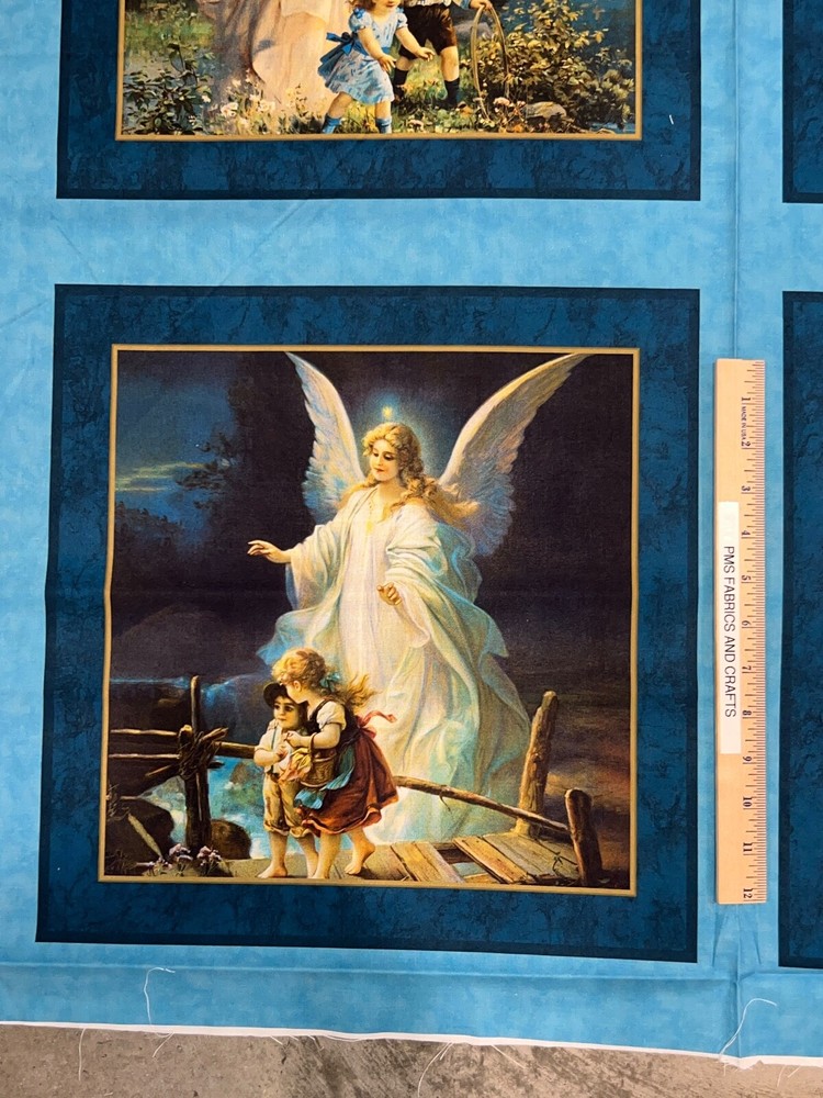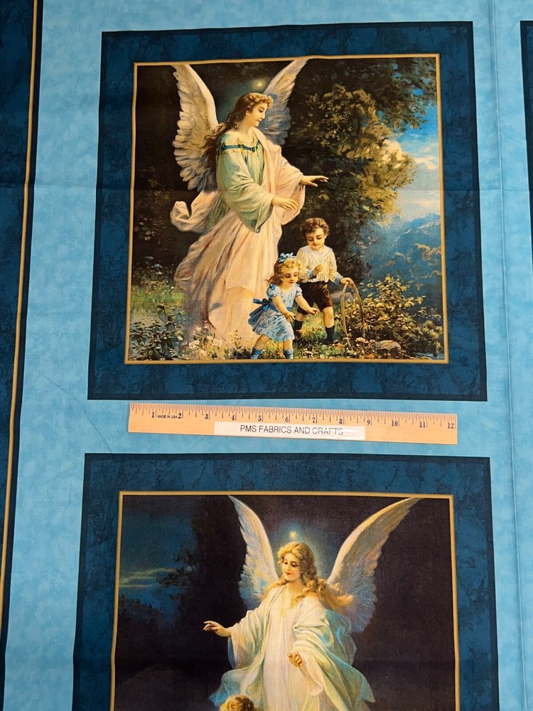 Pillow Panel sections - Digitally printed MDG 100% light to medium weight cotton fabric - Sold by the panel which is a yard - each yard measures approximately 36 inches X 44 inches . Each yard has 4 sections of pillow panels - there are 2 prints so you get 2 of each print on 1 yard of fabric! This is called Guardian Angel. This is a soft cotton. Such a beautiful print - Reminder some computers or mobile devices may NOT show accurate colors. Mostly shades of blue, green and more. I have a ruler shown in some pictures to help you see the image size BUT the ruler is NOT included on the price. Also a picture of the selvage edge is shown as well. Uncut until ready to ship - whenever possible multiple panels/yards will be mailed as 1 section BUT if this is important to you, please ask PRIOR to purchase to make sure that we have the amount that you need as 1 section. Great fabric to make great pillows, quilt blocks & more! Not recommended for sleepwear. NEW unwashed 100% Cotton - in smoke free, vapor free & pet free home! Shipping is to USA only - please review the shipping tab for current shipping rates. PLEASE DO NOT pay for the items individually - WAIT to pay for all items together to save you time & money! When wanting to purchase 4 or more items (same item or can be a mixture of items from our store), please request a special listing! Just message me the item numbers that you want, the qty of each, your mailing zip code & then I can create you a special listing here on ebay with the correct shipping rate! This will save you money on shipping! As per Ebay customer support, Ebay programming will not allow a customer to request the invoice total since we offer discounts on our items, so in order to get the best rate shipping we must create a special item here on Ebay after you send us the item numbers, qty of each, & your mailing zip code. Once payment is received & clears Ebay & please make sure that the USA mailing address is correct on the payment, we will ship US Postal Service or for larger orders, we also use UPS for the best rate shipping. NOTE that the shipping is only good for the initial mailing. If the address is incorrect on your payment & the package is returned to us, you will be charged shipping again so that we can remail - this is why it is IMPORTANT that you make sure that your shipping address is correct on your payment! If your order had free shipping, then you will be charged a 2nd shipping fee as well - again this is why it is important to review your payment BEFORE you complete it. NOTE that the date on EBay is an ESTIMATED delivery date AFTER the payment clears Ebay. This is ONLY an estimate so please do not expect the package to arrive exactly on this date since once we mail the package we cannot control the time that it takes for USPS to deliver the package. Please be FAIR on your feedback since once we mail the package (you will get a tracking number & a message notice showing we mailed the package & the date) we cannot control the actual delivery date. Return policy - In order to comply with Ebay power seller guidelines, we are forced to accept returns for Ebay BUT please understand that any item that has been washed, cut or around smoke, vapor or pets will not get a full refund once the return is received at our location. This is due to the fact that we sell new - unwashed - smoke free - pet free items & once it is altered, washed or around smoke or pets, it is no longer sellable. Shipping for the original package is non-refundable - if your item had free shipping, the actual cost of shipping your order will be deducted from any refund. NOTE that any return on special listings or custom orders will be charged a 10% return fee! Please note that we include a packing slip with EVERY order that includes the order details like item, qty, our Ebay shop name and contact information. This helps prevent lost packages by the carrier in case where the label is removed from the outside of the package. Thanks for shopping pmscrafts74 – we appreciate your business & look forward to hearing from you!