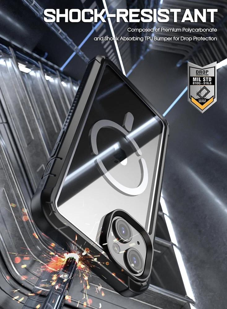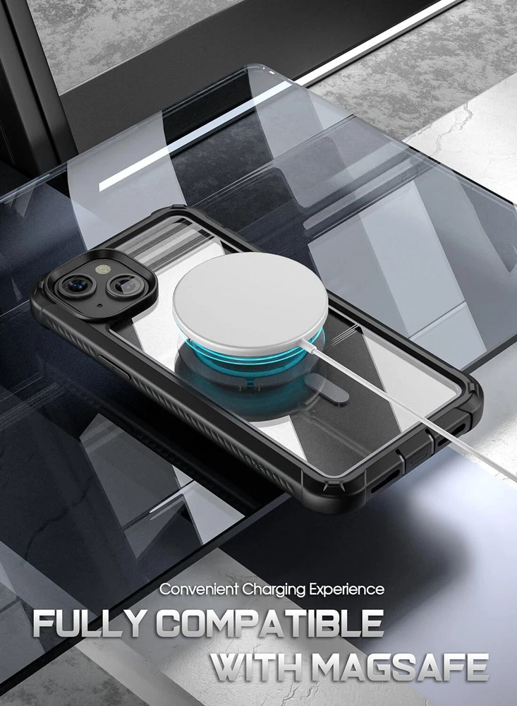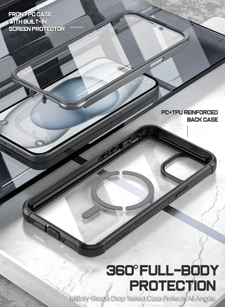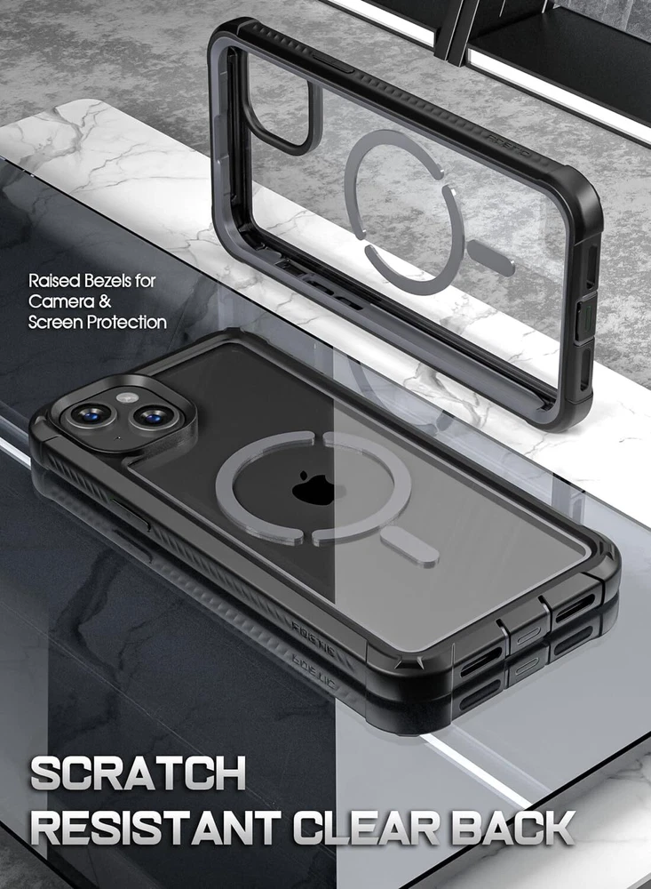 Guardian MagPro Case for iPhone 15 Plus 6.7 Inch,[Compatible with MagSafe][20 FT Mil-Grade Drop Tested] Full-Body Shockproof Rugged Clear Cover with Built-in Screen Protector, Black/Clear