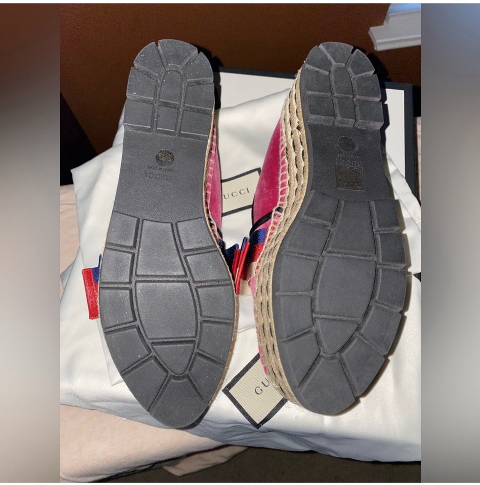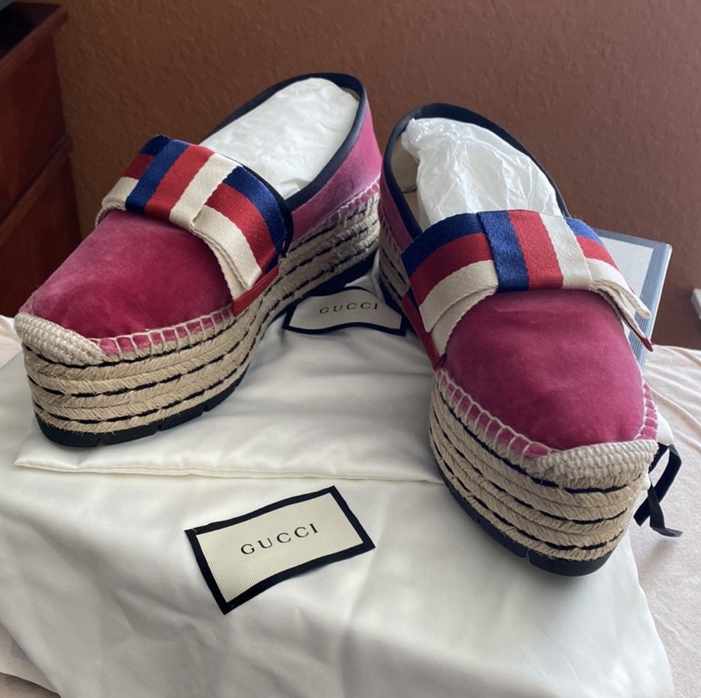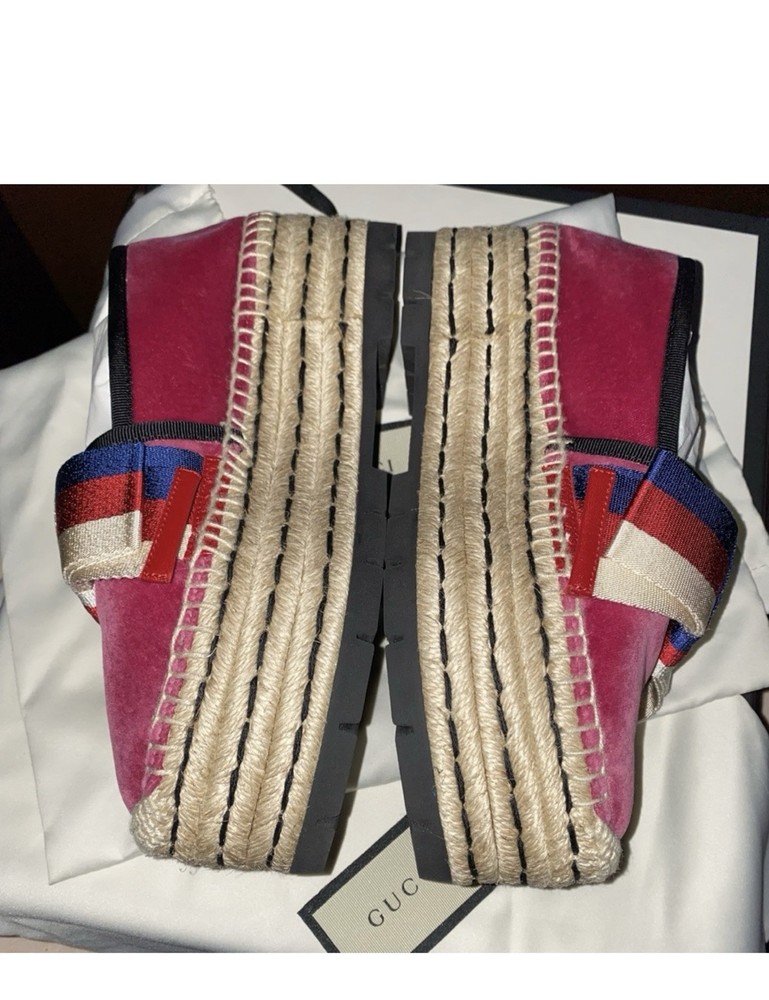 New 36.5,Gucci Shoes Gucci, Velvet Wedge Platform Espadrilles Bow. Condition is New with box. Shipped with USPS Priority Mail.