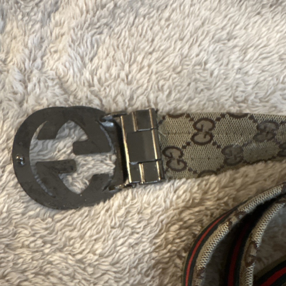 Gucci Beige Women's Fashion Belt Logo Buckle Red-Green Stripe Designer