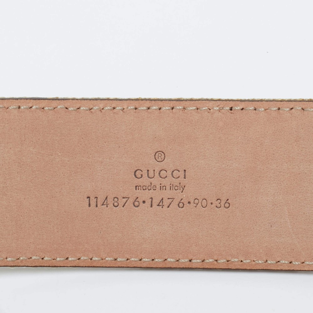 Color: Beige Width: 4 cm Type: Belts Department: Women Hardware: Gold Tone Includes: The Luxury Closet Packaging Brand: Gucci Country of Origin: Italy Size: 90 cm Material: Canvas, Leather Exterior Material: Canvas, Leather
