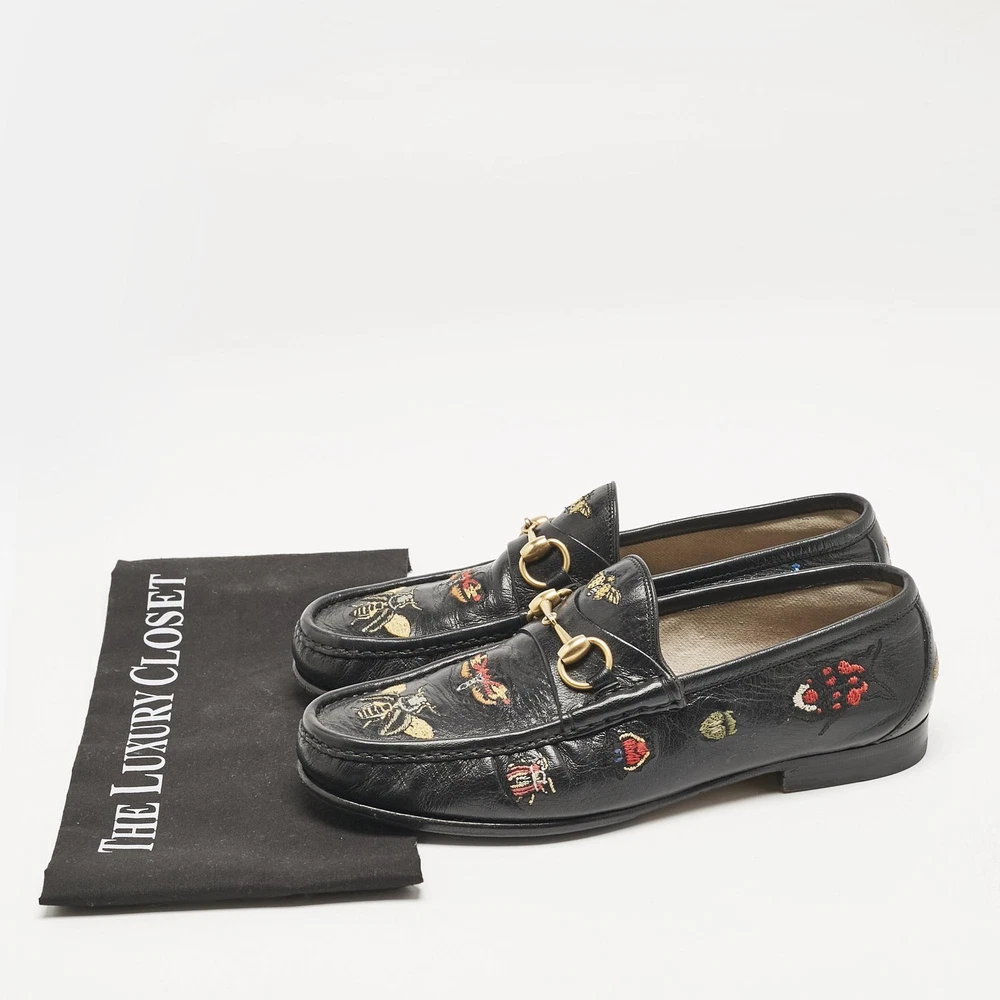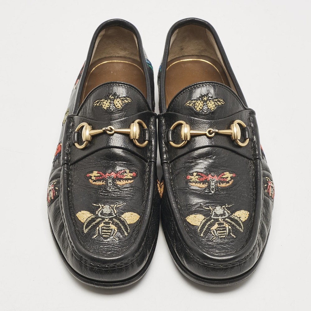 These 1953 Horsebit loafers are a tribute to Gucci’s enduring icons. Crafted in black leather with tonal embroidery, they blend subtle detailing with masculine elegance. The silhouette is classic, the finish, distinctly modern. Ideal for collectors or first timers in the Gucci universe.Certified by The Luxury Closet - This item has gone through a detailed authentication process overseen by our experts. We offer a lifetime guarantee of authenticity on all our items. Import duties, taxes and charges are not included in the item price. These charges are the buyers responsibility. Please check with your country’s customs office to determine what these additional cost will be prior to buying. Our eBay Store About Us Contact Us Add to Favorite Sellers Gucci Black Embroidered Leather 1953 Horsebit Loafers Size 40.5 $306.9 These 1953 Horsebit loafers are a tribute to Gucci’s enduring icons. Crafted in black leather with tonal embroidery, they blend subtle detailing with masculine elegance. The silhouette is classic, the finish, distinctly modern. Ideal for collectors or first timers in the Gucci universe. Product Details Brand Color Black Dimensions Material Nubuck Leather Size 40.5 Outsole Width Outsole Length Heel Height Includes Certified by The Luxury Closet This item has gone through a detailed authentication process overseen by our experts. We offer a lifetime guarantee of authenticity on all our items. How We Check The in-house team of experts at The Luxury Closet is highly trained to verify the authenticity and the condition of the luxury products. They ensure that only 100% authentic items are put on sale.The evaluation process is unique with its own mix of assessment criteria and differs according to the category. Each item is evaluated based on the following combination of hallmarks, hardware, stitching, symmetry, material, craftsmanship, stamping, codes, hologram stickers, and packaging. Our authenticators also check if the items have been modified or amended (e.g., aftermarket diamonds, replaced batteries, repaired bags, etc.) International Buyers Import duties, taxes and charges are not included in the item price. These charges are the buyers responsibility. Please check with your country’s customs office to determine what these additional cost will be prior to buying.