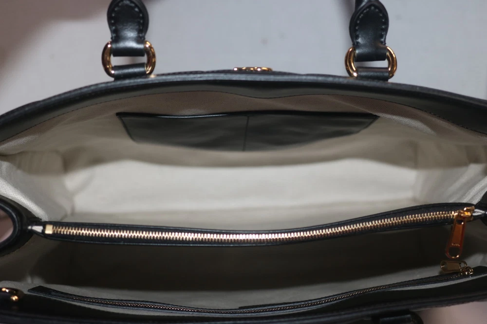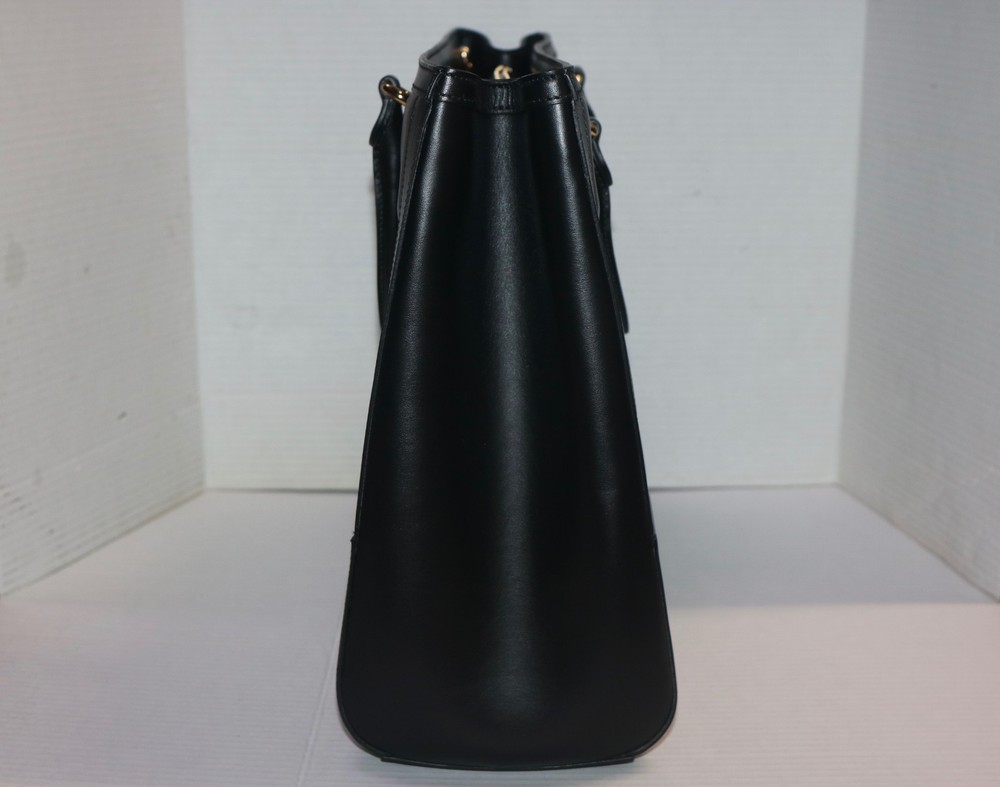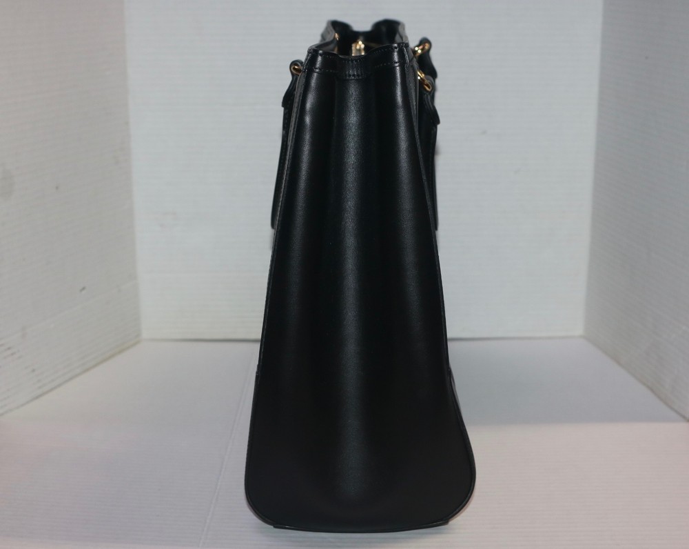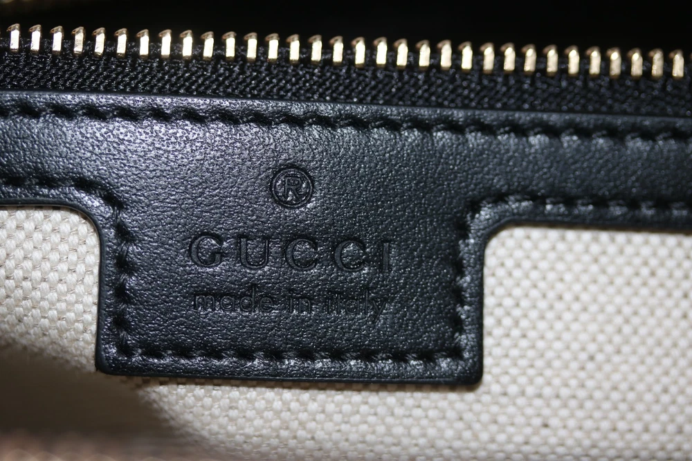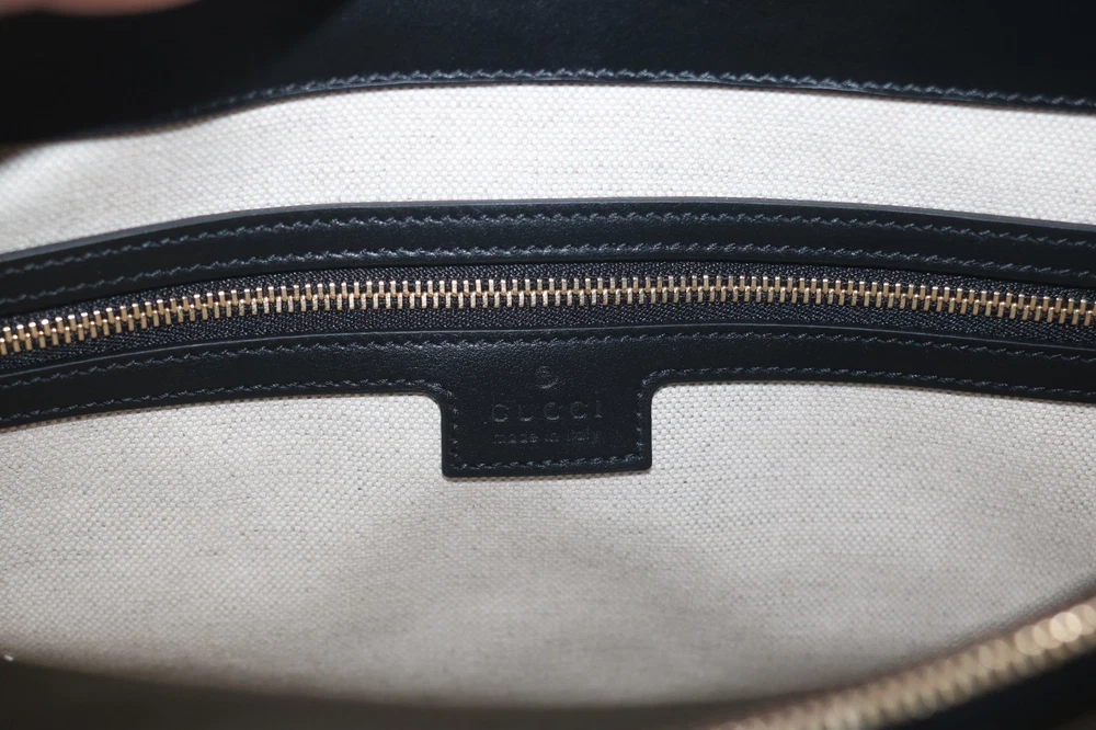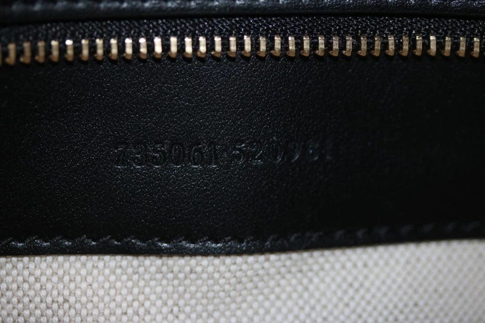 Gucci Black GG Stitched Leather Matelassè Top Handle Tote Bag Designer: Gucci Material: Black stitched leather Origin: Italy Date/Authenticity Code: 735061 Measurements: 16" L x 7" W x 13" H Interior Pockets: Two compartments, one middle zip pocket, one side zip pocket and two flat pockets Handles: Double leather rolled handles, detachable leather shoulder strap and detachable canvas shoulder strap Handle Drop: 4.5" Closure/Opening: Open top Interior Lining: Fine textile lining Hardware: Goldtone