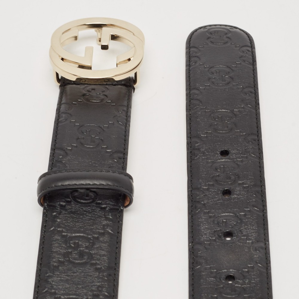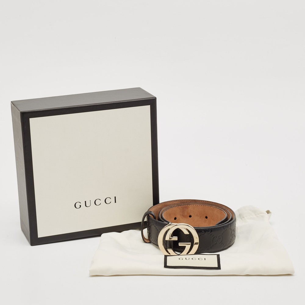 A true wardrobe staple, this black Guccissima leather belt is all about understated luxury. The signature interlocking G buckle adds just the right amount of flair, making it the perfect go to for everyday wear.Certified by The Luxury Closet - This item has gone through a detailed authentication process overseen by our experts. We offer a lifetime guarantee of authenticity on all our items. Import duties, taxes and charges are not included in the item price. These charges are the buyers responsibility. Please check with your country’s customs office to determine what these additional cost will be prior to buying. Our eBay Store About Us Contact Us Add to Favorite Sellers Gucci Black Guccissima Leather Interlocking G Buckle Belt 80 CM $308 A true wardrobe staple, this black Guccissima leather belt is all about understated luxury. The signature interlocking G buckle adds just the right amount of flair, making it the perfect go to for everyday wear. Product Details Brand Color Black Dimensions Width: 3.5 cm, Length: 80 cm Material Leather Size 80 CM Outsole Width Outsole Length Heel Height Includes Original Dustbag, Original Box Certified by The Luxury Closet This item has gone through a detailed authentication process overseen by our experts. We offer a lifetime guarantee of authenticity on all our items. How We Check The in-house team of experts at The Luxury Closet is highly trained to verify the authenticity and the condition of the luxury products. They ensure that only 100% authentic items are put on sale.The evaluation process is unique with its own mix of assessment criteria and differs according to the category. Each item is evaluated based on the following combination of hallmarks, hardware, stitching, symmetry, material, craftsmanship, stamping, codes, hologram stickers, and packaging. Our authenticators also check if the items have been modified or amended (e.g., aftermarket diamonds, replaced batteries, repaired bags, etc.) International Buyers Import duties, taxes and charges are not included in the item price. These charges are the buyers responsibility. Please check with your country’s customs office to determine what these additional cost will be prior to buying.
