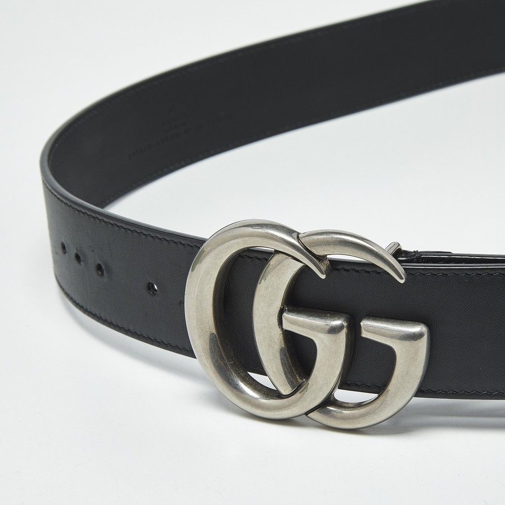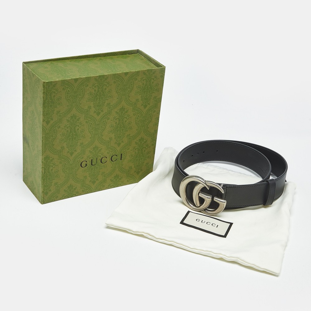 This Gucci belt features smooth black leather and the iconic GG Marmont buckle in antique gold tone finish. A staple in contemporary wardrobes, it cinches everything from dresses to denim with effortless flair. A go to for signature styling.Certified by The Luxury Closet - This item has gone through a detailed authentication process overseen by our experts. We offer a lifetime guarantee of authenticity on all our items. Import duties, taxes and charges are not included in the item price. These charges are the buyers responsibility. Please check with your country’s customs office to determine what these additional cost will be prior to buying. Our eBay Store About Us Contact Us Add to Favorite Sellers Gucci Black Leather GG Marmont Buckle Belt 95 CM $251.9 This Gucci belt features smooth black leather and the iconic GG Marmont buckle in antique gold tone finish. A staple in contemporary wardrobes, it cinches everything from dresses to denim with effortless flair. A go to for signature styling. Product Details Brand Color Black Dimensions Material Leather Size 95 CM Outsole Width Outsole Length Heel Height Includes Certified by The Luxury Closet This item has gone through a detailed authentication process overseen by our experts. We offer a lifetime guarantee of authenticity on all our items. How We Check The in-house team of experts at The Luxury Closet is highly trained to verify the authenticity and the condition of the luxury products. They ensure that only 100% authentic items are put on sale.The evaluation process is unique with its own mix of assessment criteria and differs according to the category. Each item is evaluated based on the following combination of hallmarks, hardware, stitching, symmetry, material, craftsmanship, stamping, codes, hologram stickers, and packaging. Our authenticators also check if the items have been modified or amended (e.g., aftermarket diamonds, replaced batteries, repaired bags, etc.) International Buyers Import duties, taxes and charges are not included in the item price. These charges are the buyers responsibility. Please check with your country’s customs office to determine what these additional cost will be prior to buying.