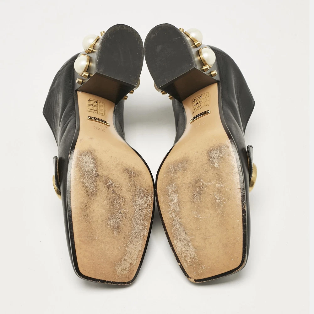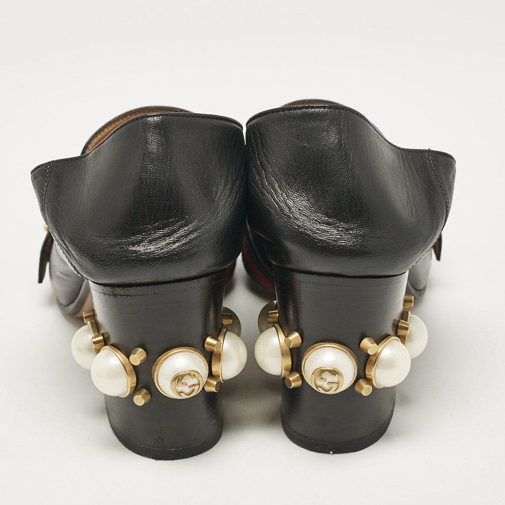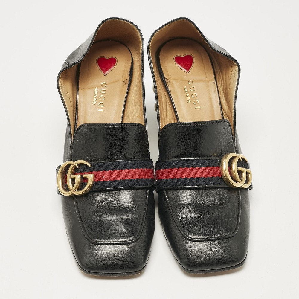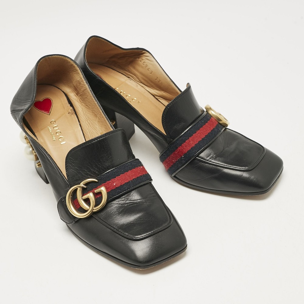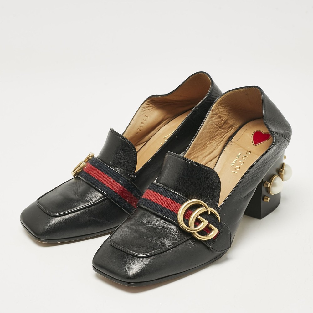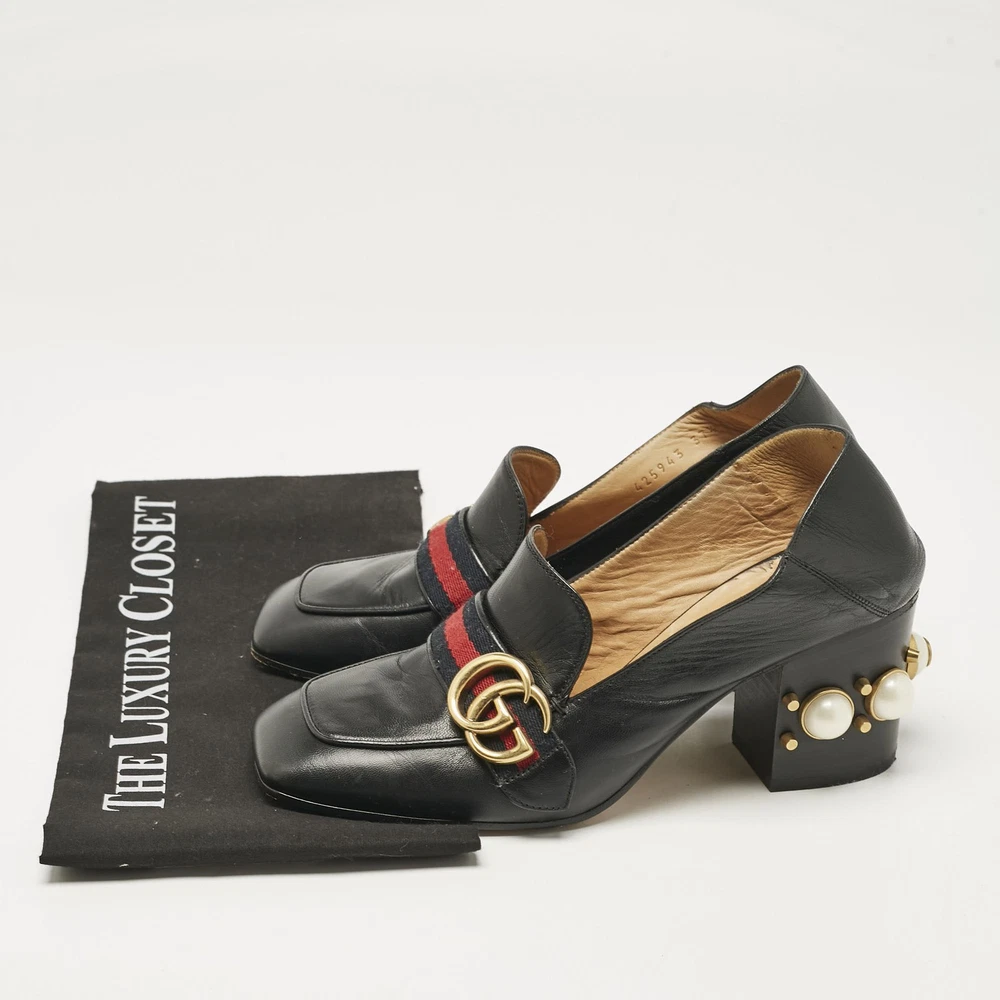 Classic loafers meet statement heels in these Gucci womens pumps accompanied by faux pearls and gold tone hardware. Black leather and block heels bring vintage charm with a modern twist.Certified by The Luxury Closet - This item has gone through a detailed authentication process overseen by our experts. We offer a lifetime guarantee of authenticity on all our items. Import duties, taxes and charges are not included in the item price. These charges are the buyers responsibility. Please check with your country’s customs office to determine what these additional cost will be prior to buying. Our eBay Store About Us Contact Us Add to Favorite Sellers Gucci Black Leather GG Pearl Studded Loafer Pumps Size 37.5 $759 Classic loafers meet statement heels in these Gucci womens pumps accompanied by faux pearls and gold tone hardware. Black leather and block heels bring vintage charm with a modern twist. Product Details Brand Color Black Dimensions Material Leather Size 37.5 Outsole Width 8.5 cm Outsole Length 25 cm Heel Height 4.5 cm Includes The Luxury Closet Packaging Certified by The Luxury Closet This item has gone through a detailed authentication process overseen by our experts. We offer a lifetime guarantee of authenticity on all our items. How We Check The in-house team of experts at The Luxury Closet is highly trained to verify the authenticity and the condition of the luxury products. They ensure that only 100% authentic items are put on sale.The evaluation process is unique with its own mix of assessment criteria and differs according to the category. Each item is evaluated based on the following combination of hallmarks, hardware, stitching, symmetry, material, craftsmanship, stamping, codes, hologram stickers, and packaging. Our authenticators also check if the items have been modified or amended (e.g., aftermarket diamonds, replaced batteries, repaired bags, etc.) International Buyers Import duties, taxes and charges are not included in the item price. These charges are the buyers responsibility. Please check with your country’s customs office to determine what these additional cost will be prior to buying.