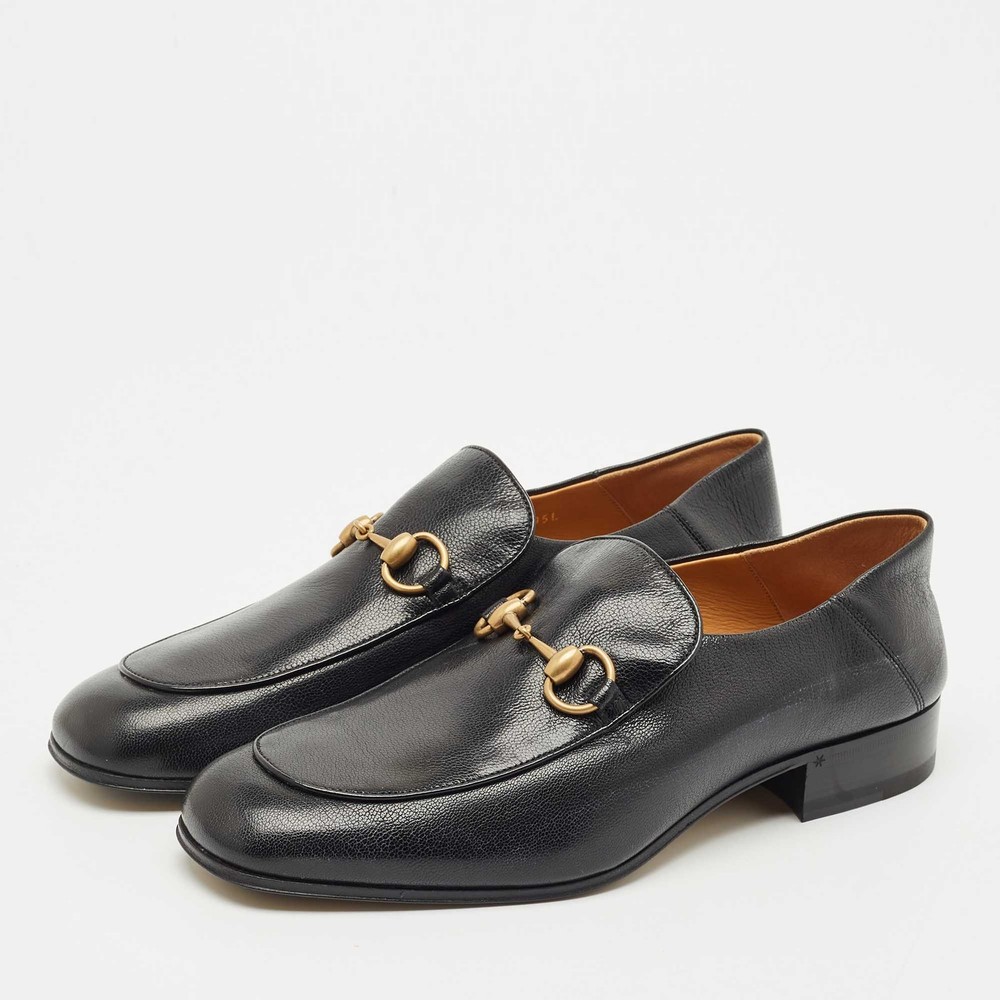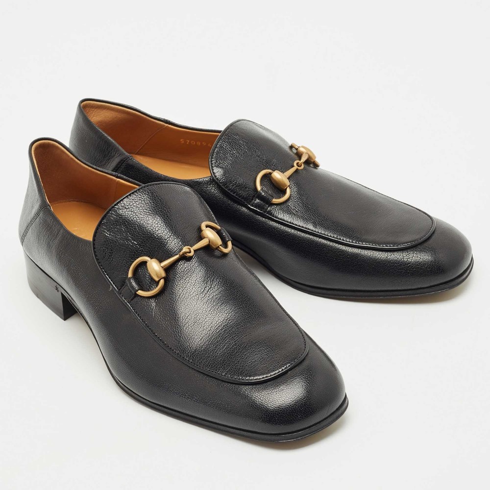 Designed for comfort and ease, Gucci’s foldable loafers in black leather feature the iconic horsebit detail. A luxurious choice for travel or business casual edits, offering flexibility without compromising on polish.Certified by The Luxury Closet - This item has gone through a detailed authentication process overseen by our experts. We offer a lifetime guarantee of authenticity on all our items. Import duties, taxes and charges are not included in the item price. These charges are the buyers responsibility. Please check with your country’s customs office to determine what these additional cost will be prior to buying. Our eBay Store About Us Contact Us Add to Favorite Sellers Gucci Black Leather Horsebit Foldable Loafers Size 42 $733.7 Designed for comfort and ease, Gucci’s foldable loafers in black leather feature the iconic horsebit detail. A luxurious choice for travel or business casual edits, offering flexibility without compromising on polish. Product Details Brand Color Black Dimensions Material Leather Size 42 Outsole Width Outsole Length Heel Height Includes Certified by The Luxury Closet This item has gone through a detailed authentication process overseen by our experts. We offer a lifetime guarantee of authenticity on all our items. How We Check The in-house team of experts at The Luxury Closet is highly trained to verify the authenticity and the condition of the luxury products. They ensure that only 100% authentic items are put on sale.The evaluation process is unique with its own mix of assessment criteria and differs according to the category. Each item is evaluated based on the following combination of hallmarks, hardware, stitching, symmetry, material, craftsmanship, stamping, codes, hologram stickers, and packaging. Our authenticators also check if the items have been modified or amended (e.g., aftermarket diamonds, replaced batteries, repaired bags, etc.) International Buyers Import duties, taxes and charges are not included in the item price. These charges are the buyers responsibility. Please check with your country’s customs office to determine what these additional cost will be prior to buying.