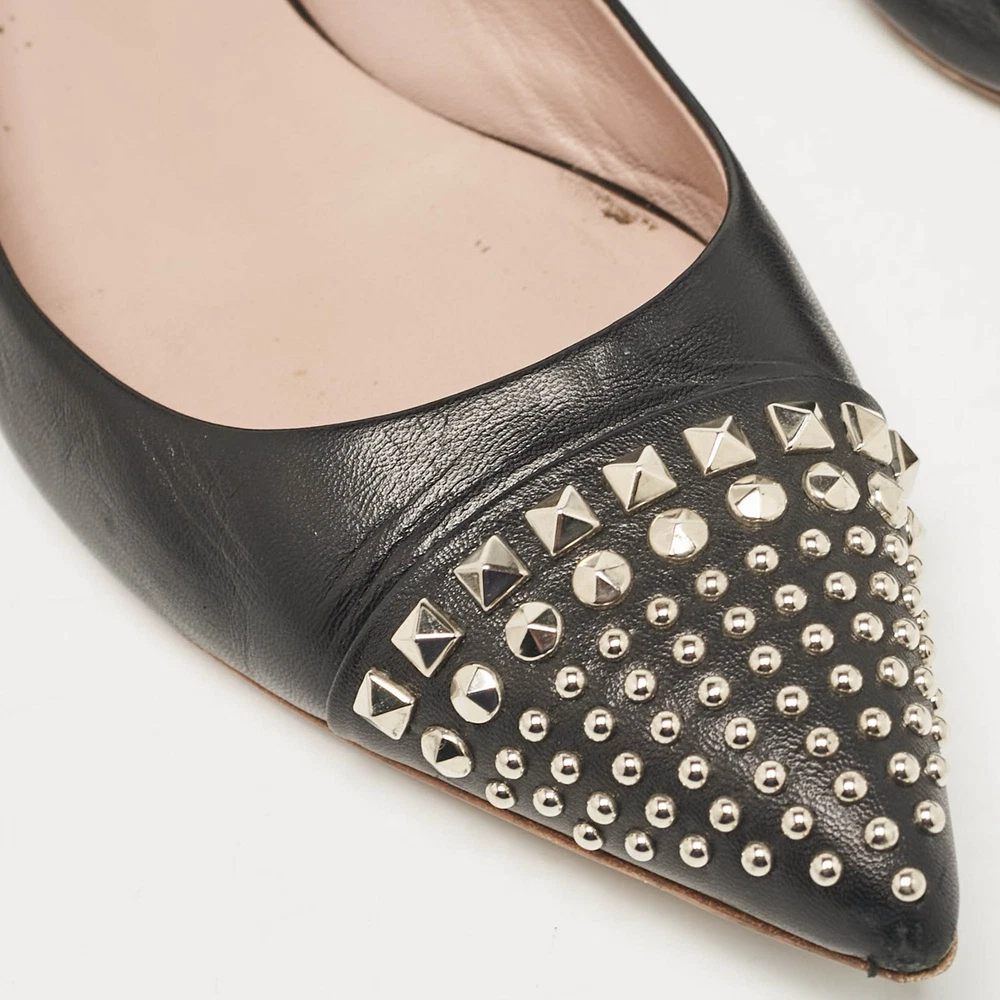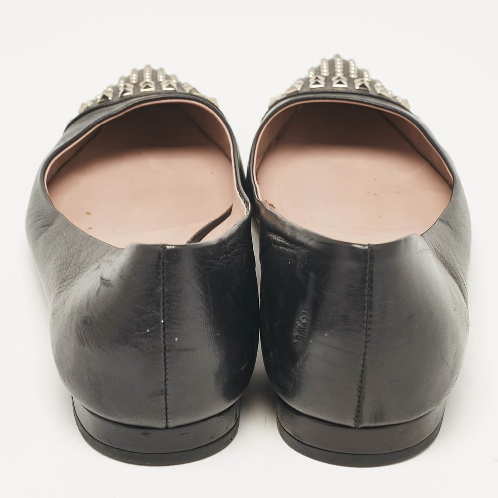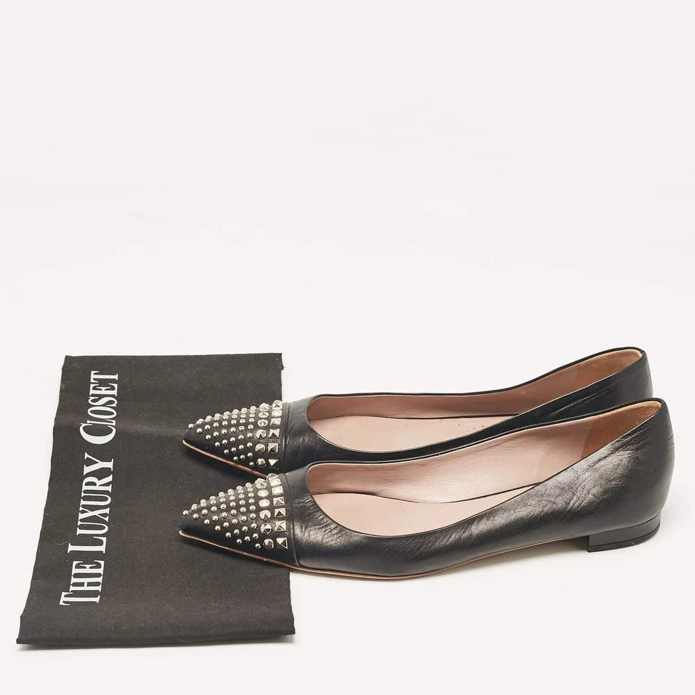 Defined by comfort and effortless style, no wardrobe is ever complete without a pair of chic ballet flats. This pair is lovely to look at and is equipped with elements like a comfortable insole and a durable sole.Certified by The Luxury Closet - This item has gone through a detailed authentication process overseen by our experts. We offer a lifetime guarantee of authenticity on all our items. Import duties, taxes and charges are not included in the item price. These charges are the buyers responsibility. Please check with your country’s customs office to determine what these additional cost will be prior to buying. Our eBay Store About Us Contact Us Add to Favorite Sellers Gucci Black Leather Studded Cap Toe Ballet Flats Size 39 $151.8 Defined by comfort and effortless style, no wardrobe is ever complete without a pair of chic ballet flats. This pair is lovely to look at and is equipped with elements like a comfortable insole and a durable sole. Product Details Brand Color Black Dimensions Material Leather Size 39 Outsole Width 8.5 cm Outsole Length 27 cm Heel Height Includes The Luxury Closet Packaging Certified by The Luxury Closet This item has gone through a detailed authentication process overseen by our experts. We offer a lifetime guarantee of authenticity on all our items. How We Check The in-house team of experts at The Luxury Closet is highly trained to verify the authenticity and the condition of the luxury products. They ensure that only 100% authentic items are put on sale.The evaluation process is unique with its own mix of assessment criteria and differs according to the category. Each item is evaluated based on the following combination of hallmarks, hardware, stitching, symmetry, material, craftsmanship, stamping, codes, hologram stickers, and packaging. Our authenticators also check if the items have been modified or amended (e.g., aftermarket diamonds, replaced batteries, repaired bags, etc.) International Buyers Import duties, taxes and charges are not included in the item price. These charges are the buyers responsibility. Please check with your country’s customs office to determine what these additional cost will be prior to buying.
