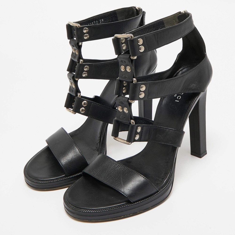 These sandals will frame your feet in an elegant manner. Crafted from quality materials, they display a classy design and comfortable insoles.Certified by The Luxury Closet - This item has gone through a detailed authentication process overseen by our experts. We offer a lifetime guarantee of authenticity on all our items. Import duties, taxes and charges are not included in the item price. These charges are the buyers responsibility. Please check with your country’s customs office to determine what these additional cost will be prior to buying. Our eBay Store About Us Contact Us Add to Favorite Sellers Gucci Black Leather Studded Gladiator Sandals Size 39 $179.3 These sandals will frame your feet in an elegant manner. Crafted from quality materials, they display a classy design and comfortable insoles. Product Details Brand Color Black Dimensions Material Leather Size 39 Outsole Width 9.5 cm Outsole Length 25 cm Heel Height 12 cm Includes The Luxury Closet Packaging Certified by The Luxury Closet This item has gone through a detailed authentication process overseen by our experts. We offer a lifetime guarantee of authenticity on all our items. How We Check The in-house team of experts at The Luxury Closet is highly trained to verify the authenticity and the condition of the luxury products. They ensure that only 100% authentic items are put on sale.The evaluation process is unique with its own mix of assessment criteria and differs according to the category. Each item is evaluated based on the following combination of hallmarks, hardware, stitching, symmetry, material, craftsmanship, stamping, codes, hologram stickers, and packaging. Our authenticators also check if the items have been modified or amended (e.g., aftermarket diamonds, replaced batteries, repaired bags, etc.) International Buyers Import duties, taxes and charges are not included in the item price. These charges are the buyers responsibility. Please check with your country’s customs office to determine what these additional cost will be prior to buying.