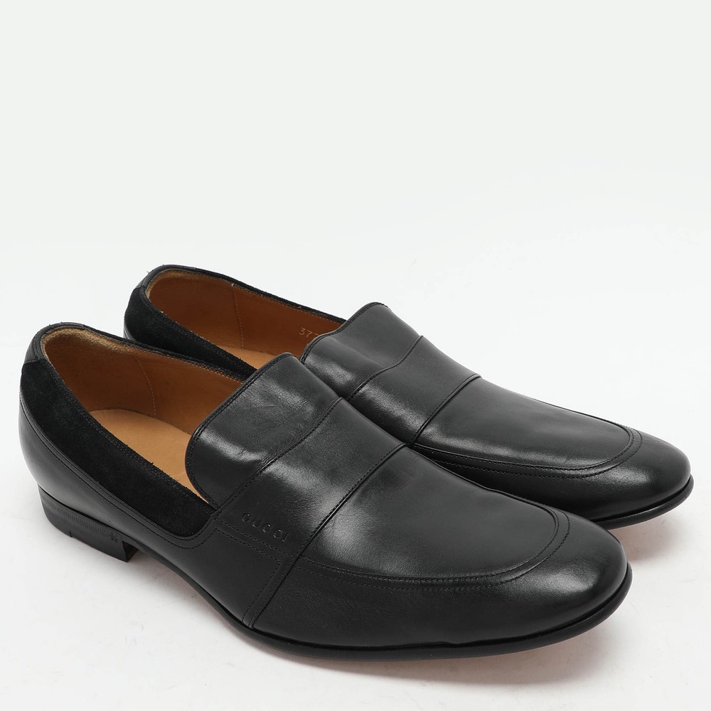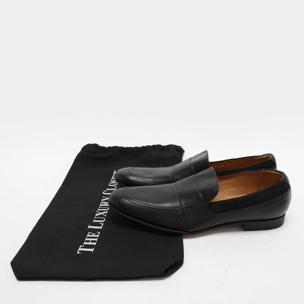 Practical, fashionable, and durable—these designer loafers are carefully built to be fine companions to your everyday style. They come made using the best materials to be a prized buy.Certified by The Luxury Closet - This item has gone through a detailed authentication process overseen by our experts. We offer a lifetime guarantee of authenticity on all our items. Import duties, taxes and charges are not included in the item price. These charges are the buyers responsibility. Please check with your country’s customs office to determine what these additional cost will be prior to buying. Our eBay Store About Us Contact Us Add to Favorite Sellers Gucci Black Leather and Suede Loafers Size 40 $281.6 Practical, fashionable, and durable—these designer loafers are carefully built to be fine companions to your everyday style. They come made using the best materials to be a prized buy. Product Details Brand Color Black Dimensions Material Leather, Suede Size 40 Outsole Width 7 cm Outsole Length 28 cm Heel Height Includes The Luxury Closet Packaging Certified by The Luxury Closet This item has gone through a detailed authentication process overseen by our experts. We offer a lifetime guarantee of authenticity on all our items. How We Check The in-house team of experts at The Luxury Closet is highly trained to verify the authenticity and the condition of the luxury products. They ensure that only 100% authentic items are put on sale.The evaluation process is unique with its own mix of assessment criteria and differs according to the category. Each item is evaluated based on the following combination of hallmarks, hardware, stitching, symmetry, material, craftsmanship, stamping, codes, hologram stickers, and packaging. Our authenticators also check if the items have been modified or amended (e.g., aftermarket diamonds, replaced batteries, repaired bags, etc.) International Buyers Import duties, taxes and charges are not included in the item price. These charges are the buyers responsibility. Please check with your country’s customs office to determine what these additional cost will be prior to buying.