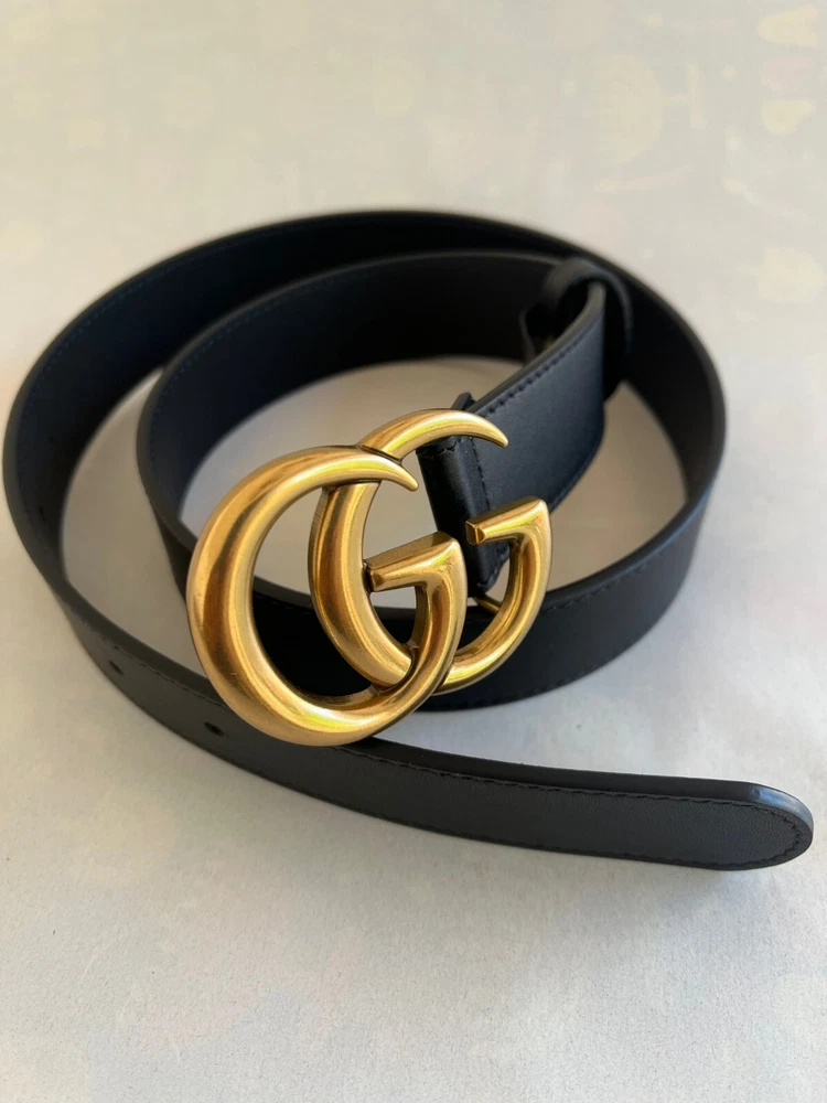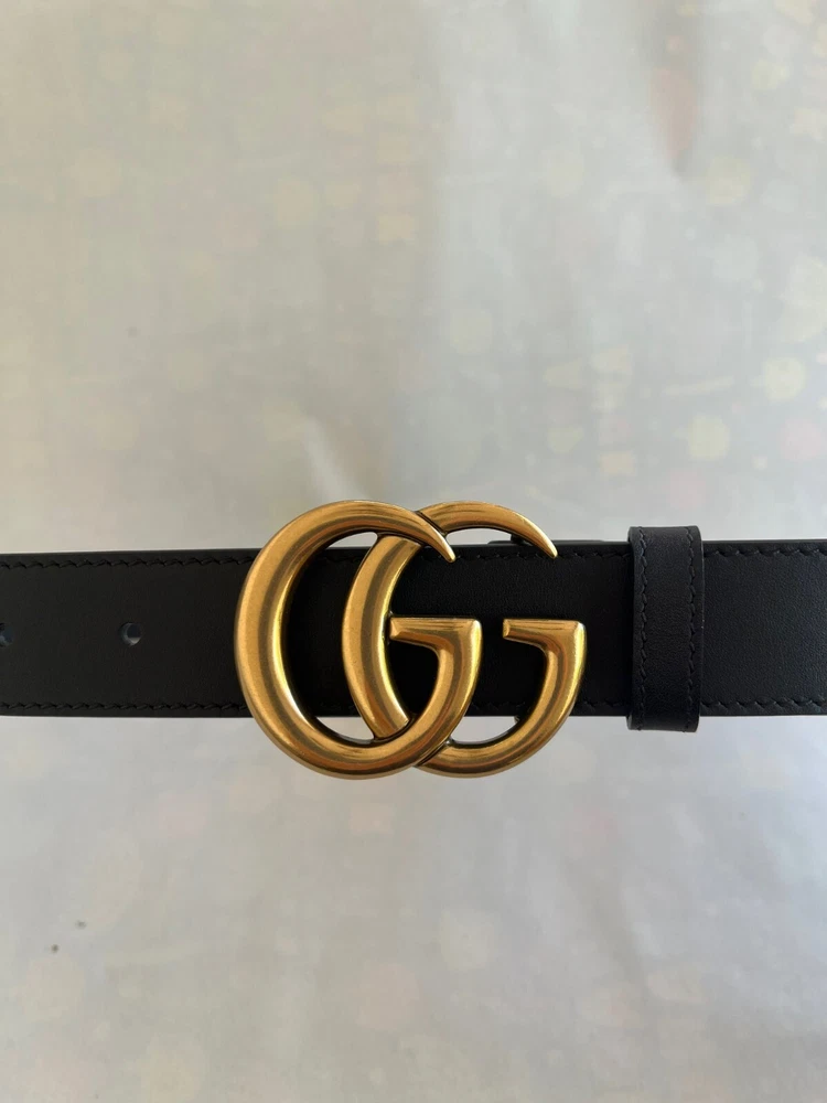 Gucci Skinny Leather Belt with Double G Buckle Black Size 80 cm, fits 28/30 waist, fits dress size 2-4 in Excellent Condition, comes with Dust Bag and BOX.
