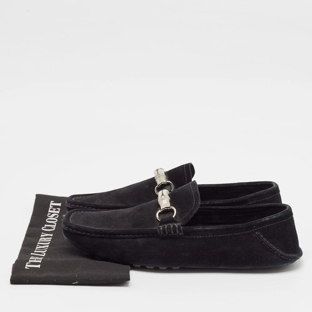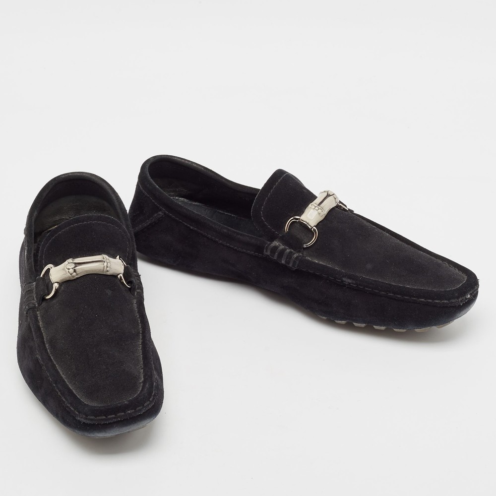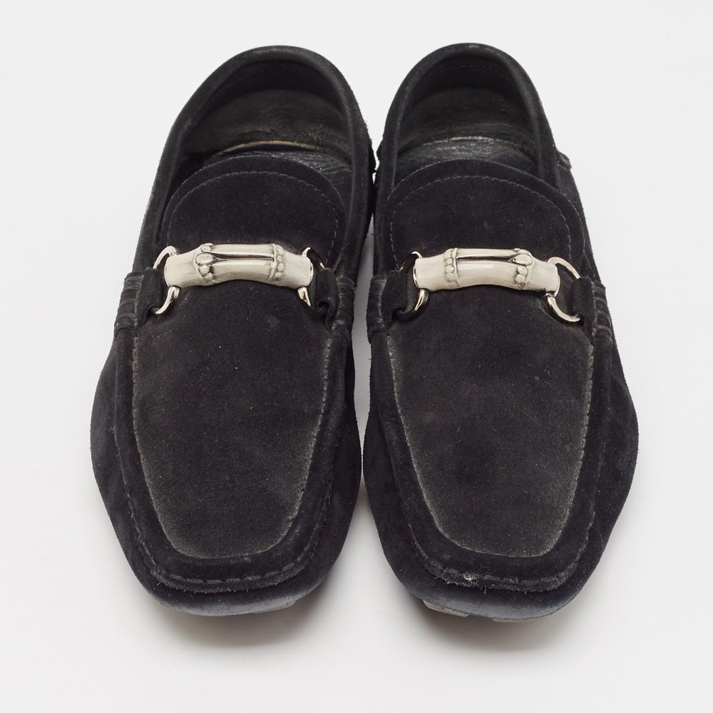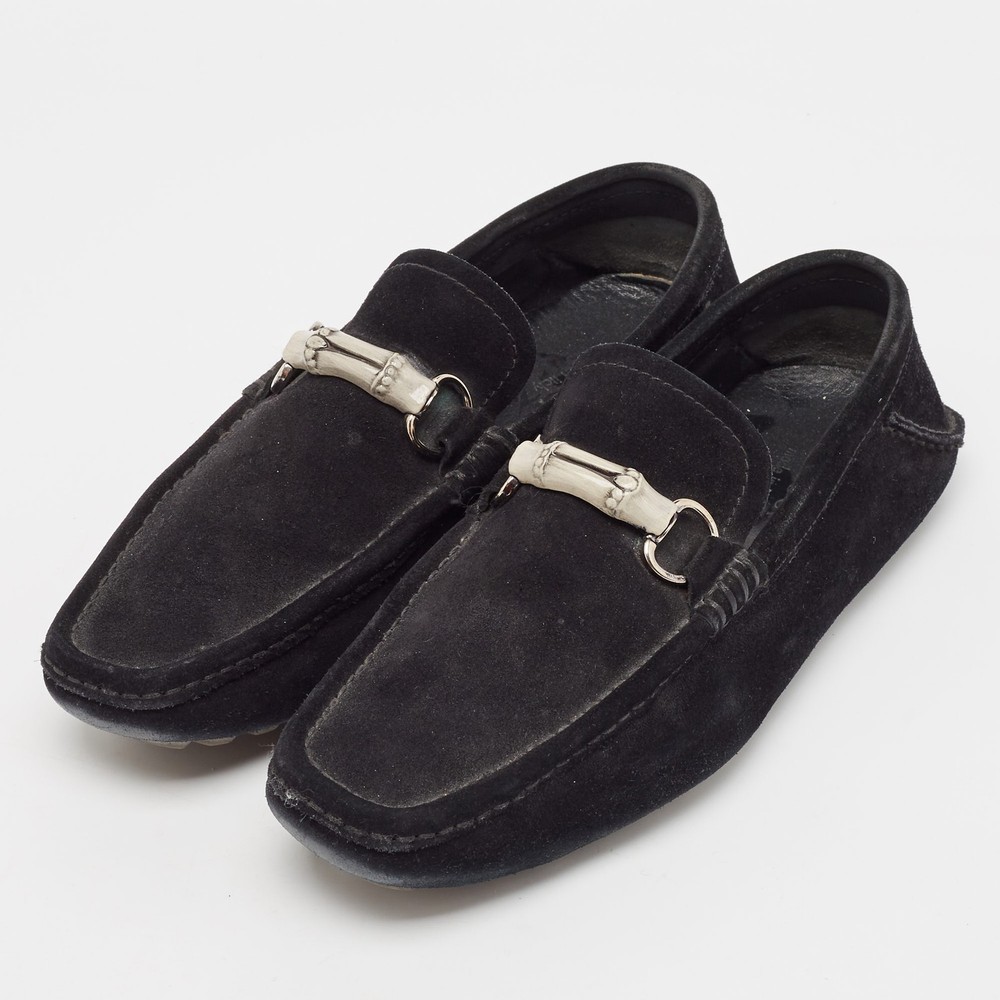 Let comfort and classic style be yours with these Horsebit loafers from Gucci. Crafted with skill, the high quality shoes have the perfect construction to take you through the day with ease.Certified by The Luxury Closet - This item has gone through a detailed authentication process overseen by our experts. We offer a lifetime guarantee of authenticity on all our items. Import duties, taxes and charges are not included in the item price. These charges are the buyers responsibility. Please check with your country’s customs office to determine what these additional cost will be prior to buying. Our eBay Store About Us Contact Us Add to Favorite Sellers Gucci Black Suede Bamboo Horsebit Slip On Loafers Size 43.5 $174.9 Let comfort and classic style be yours with these Horsebit loafers from Gucci. Crafted with skill, the high quality shoes have the perfect construction to take you through the day with ease. Product Details Brand Color Black Dimensions Material Suede Size 43.5 Outsole Width 9 cm Outsole Length 32 cm Heel Height Includes The Luxury Closet Packaging Certified by The Luxury Closet This item has gone through a detailed authentication process overseen by our experts. We offer a lifetime guarantee of authenticity on all our items. How We Check The in-house team of experts at The Luxury Closet is highly trained to verify the authenticity and the condition of the luxury products. They ensure that only 100% authentic items are put on sale.The evaluation process is unique with its own mix of assessment criteria and differs according to the category. Each item is evaluated based on the following combination of hallmarks, hardware, stitching, symmetry, material, craftsmanship, stamping, codes, hologram stickers, and packaging. Our authenticators also check if the items have been modified or amended (e.g., aftermarket diamonds, replaced batteries, repaired bags, etc.) International Buyers Import duties, taxes and charges are not included in the item price. These charges are the buyers responsibility. Please check with your country’s customs office to determine what these additional cost will be prior to buying.