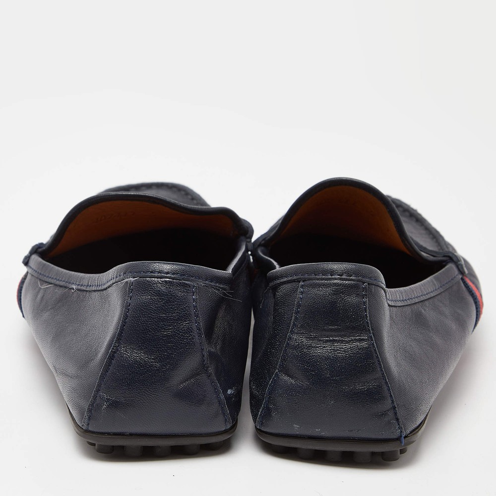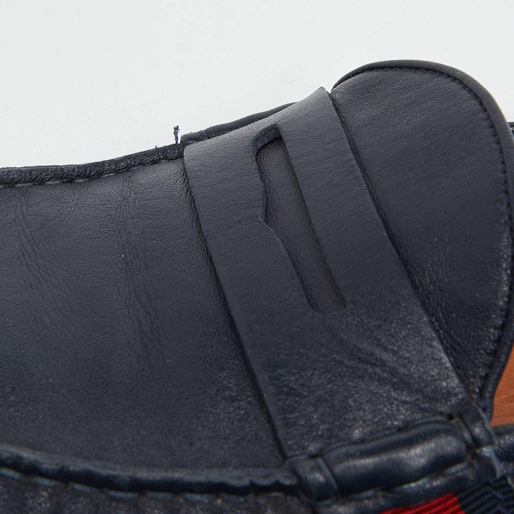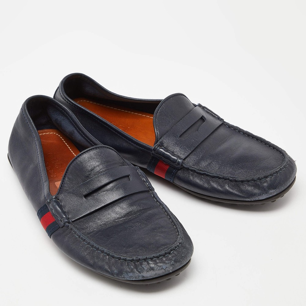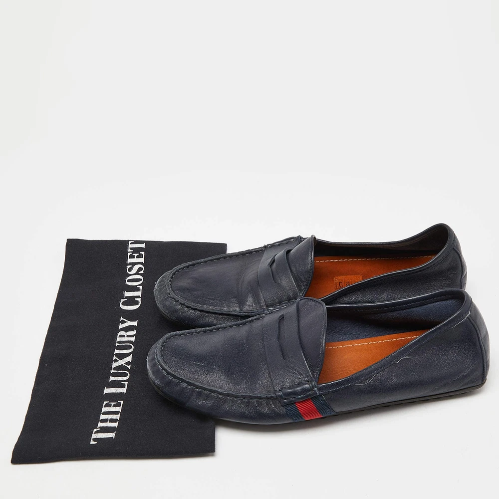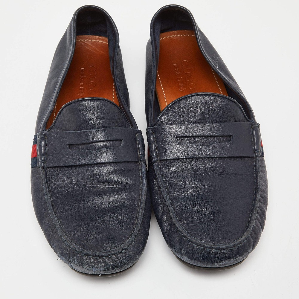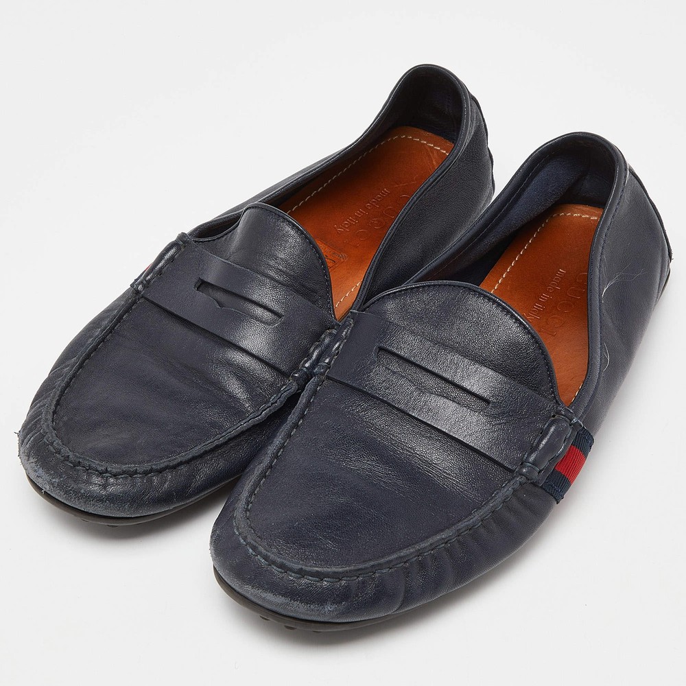 Our eBay Store About Us Contact Us Add to Favorite Sellers Gucci Blue Leather Web Accent Penny Slip On Loafers Size 41 Practical, fashionable, and durable—these Gucci loafers are carefully built to be fine companions to your everyday style. They come made using the best materials to be a prized buy. Product Details Brand Gucci Color Blue Includes The Luxury Closet Packaging Outsole Length 27 cm Outsole Width 9 cm Size UK 7 (EU 41/US 7.5) Certified by The Luxury Closet This item has gone through a detailed authentication process overseen by our experts. We offer a lifetime guarantee of authenticity on all our items. How We Check The in-house team of experts at The Luxury Closet is highly trained to verify the authenticity and the condition of the luxury products. They ensure that only 100% authentic items are put on sale.The evaluation process is unique with its own mix of assessment criteria and differs according to the category. Each item is evaluated based on the following combination of hallmarks, hardware, stitching, symmetry, material, craftsmanship, stamping, codes, hologram stickers, and packaging. Our authenticators also check if the items have been modified or amended (e.g., aftermarket diamonds, replaced batteries, repaired bags, etc.) International Buyers Import duties, taxes and charges are not included in the item price. These charges are the buyers responsibility. Please check with your country’s customs office to determine what these additional cost will be prior to buying.