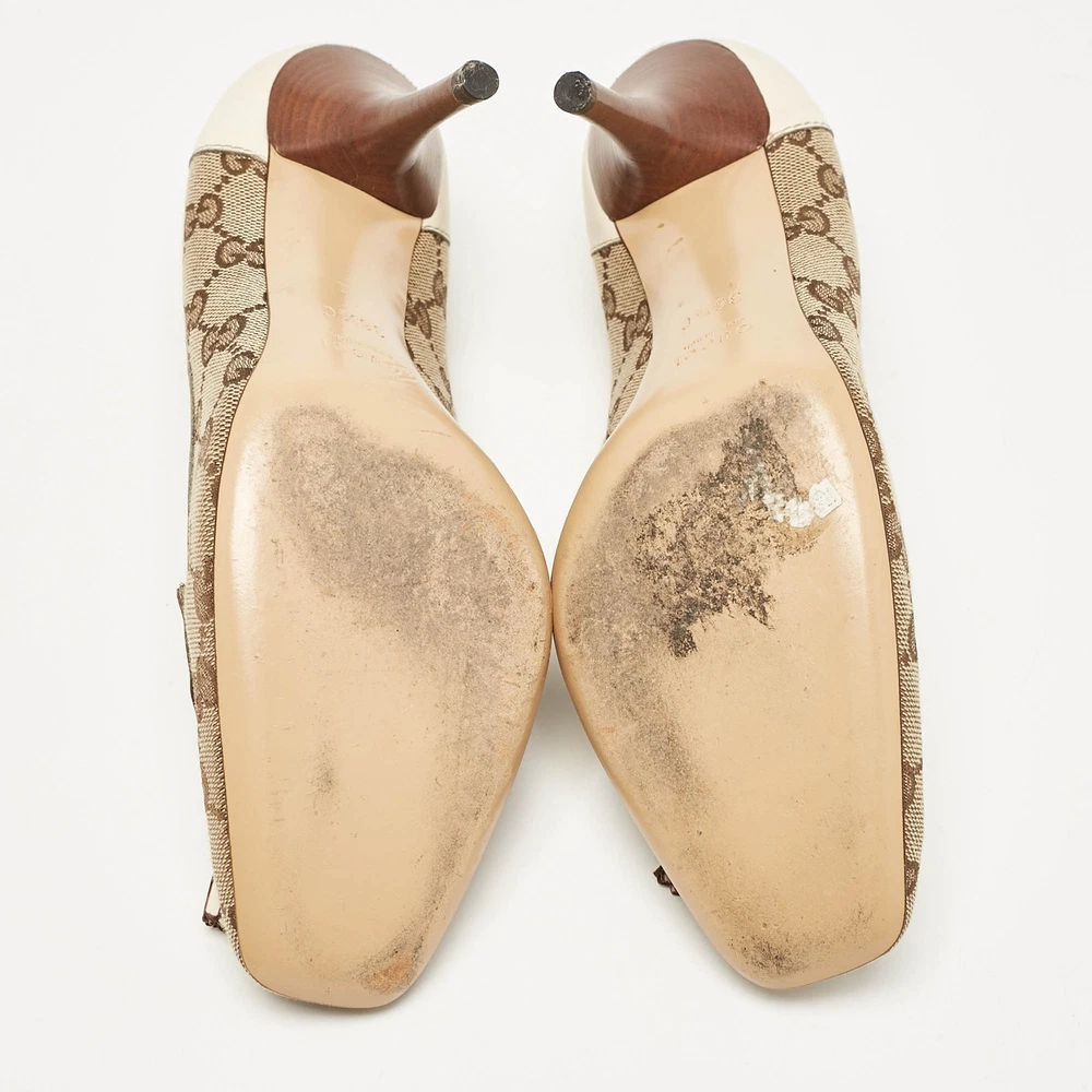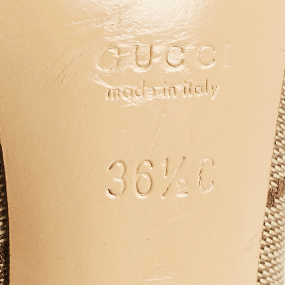 Gender: female Customized: No EU Shoe Size: 36.5 Upper Material: Canvas, Leather Style: Not Available Brand: Gucci Size: 36.5 US Shoe Size: N/A Product Type: Pumps Color: Brown Department: Women Material: Canvas, Leather