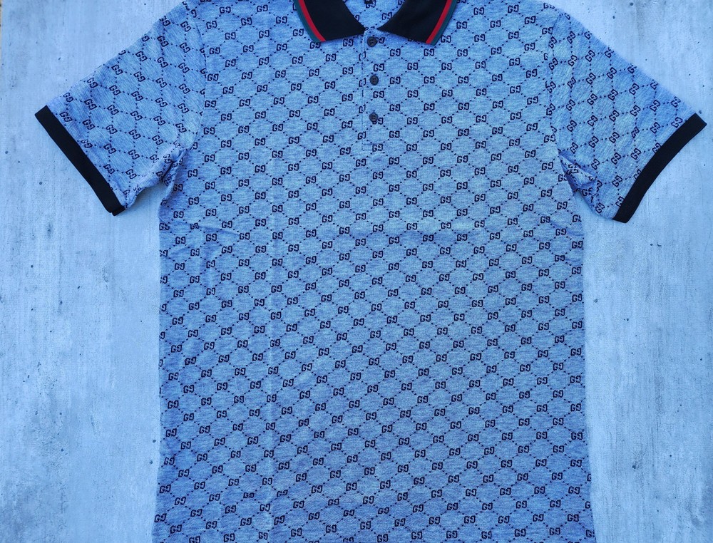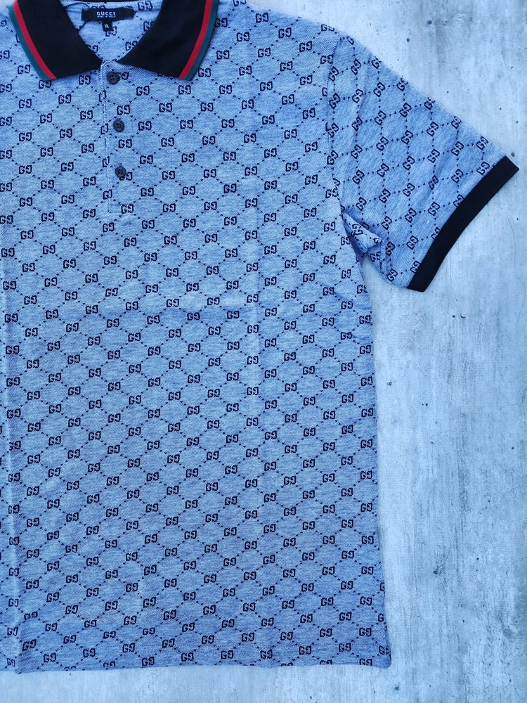 Polo Shirt Mens Gucci Regular Fit Excellent condition not have defect cotton button closure spread gg Classic polo Color Gray Tags inside outside Size XL Chest 59 Cm Length 80 Cm