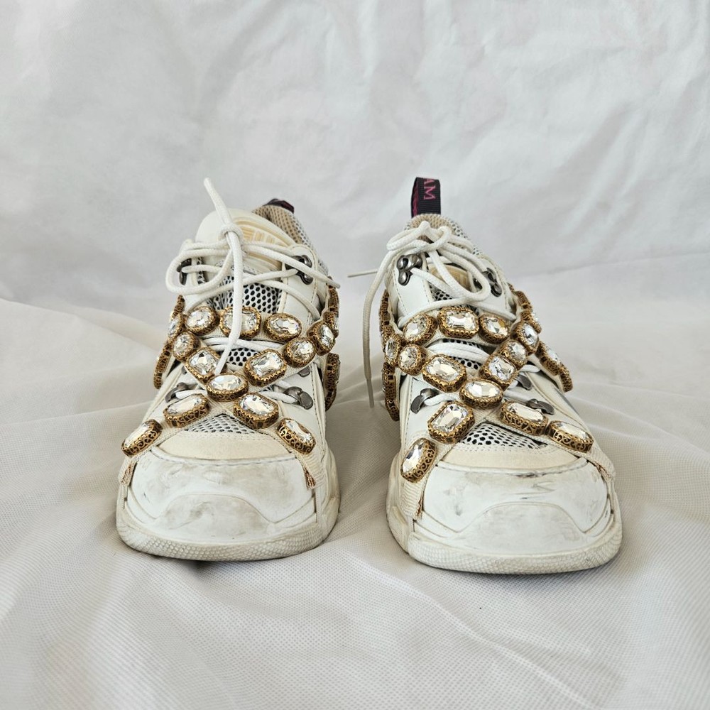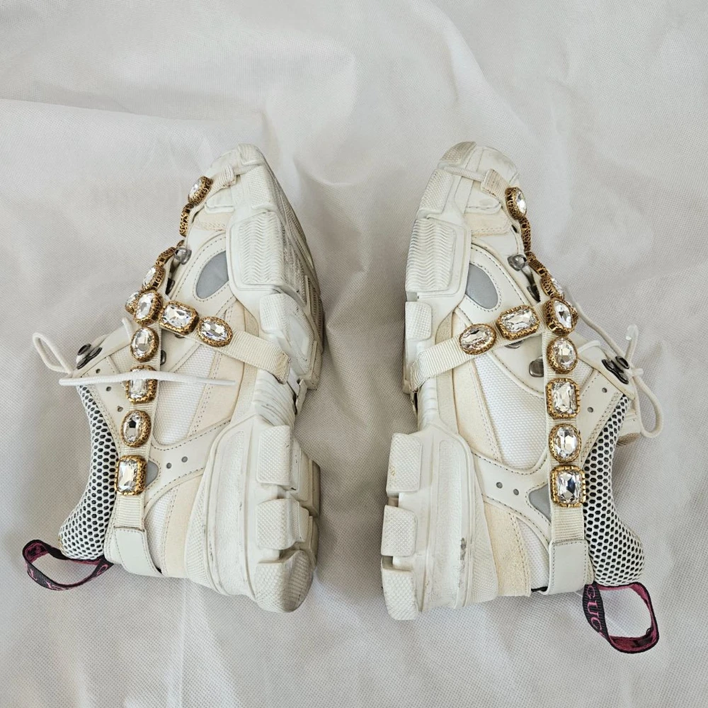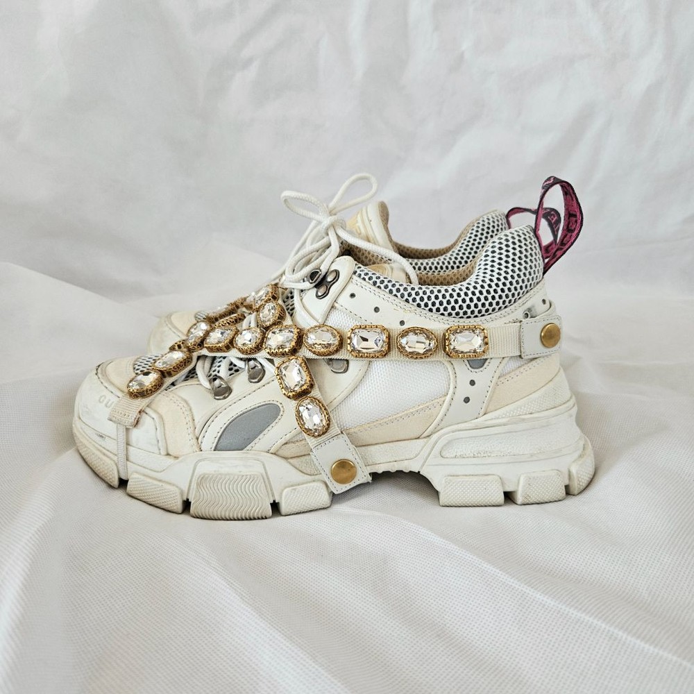 bopf Visit thebusinessofprelovedfashion store to see all the catalogue ABOUT US CUSTOMER FEEDBACK CONTACT US Gucci Cream Leather & Suede Flashtrek Lace Up Sneakers, Size 39 check_circle Handling Time: 4 days check_circle Additional custom duties may apply check_circle 100% Authentic Gucci Cream Leather and Suede Flashtrek Lace Up Sneakers Attributes Material: Fabric, rubber, leather, suede Color: Cream Condition: Gently used; scuffs on exterior Size: 39 Inclusions: dust bag About This Item Department: women Style: Sunglasses Upper Material: Fabric Brand: Gucci US Shoe Size: 39 Color: Cream How we list items 1. METICULOUS INHOUSE AUTHENTICATION PROCESS Our in-house luxury consignment experts offer a combined experience of over 8 years in the fashion resale industry enabling them to carefully inspect all items listed online to ensure they are authentic 2. VERIFY AUTHENTICITY USING ENTRUPY AI TOOL We use Entrupy: The world's first and only on-demand authentication solution for high-value goods as an additional layer of authenticity ventication. 3. THIRD PARTY PROFESSIONAL AUTHENTICATION SERVICES We use Entrupy: The world's first and only on-demand authentication solution for high-value goods as an additional layer of authenticity ventication. Customers with frequent return orders will incur a restocking fee of 30$ per order. This policy helps cover administrative costs es thoughtful purchases. About the Seller Shipping Policy Description Payment Policy Description Return Policy Description Welcome to The Business of Preloved Fashion (BOPF) – your trusted source for authentic, preloved luxury fashion. Founded in Dubai in 2021 by Hadiza Ibekwe, who brings over 10 years of experience in luxury resale, BOPF is committed to making luxury fashion more accessible and sustainable. Why Shop With Us? Authenticity Guaranteed: Every item is carefully inspected and authenticated by our experts. New Treasures Weekly: Our collection is updated weekly with carefully curated preloved designer pieces, including preloved bags, clothing, shoes , accessories and jewelry. Luxury for Less: Find high-end designer items at a fraction of their original prices. Quick Shipping: Enjoy fast, reliable shipping with every purchase. Sustainable Fashion: Join us in promoting a more sustainable fashion future by choosing preloved. Have questions? Reach out via eBay messaging – we're readily available! • We will use DHL courier for safe and fast delivery. • Import duties, taxes and charges are the buyer's responsibility. Please check with your country's customs office to determine what these additional costs will be prior to bidding or buying. • We accept only online payment method. • We accept payment by PayPal and Credit / Debit cards entered on eBay only. Customers with frequent return orders will incur a restocking fee of 30$ per order. This policy helps cover administrative costs and encourage thoughtful purchases.