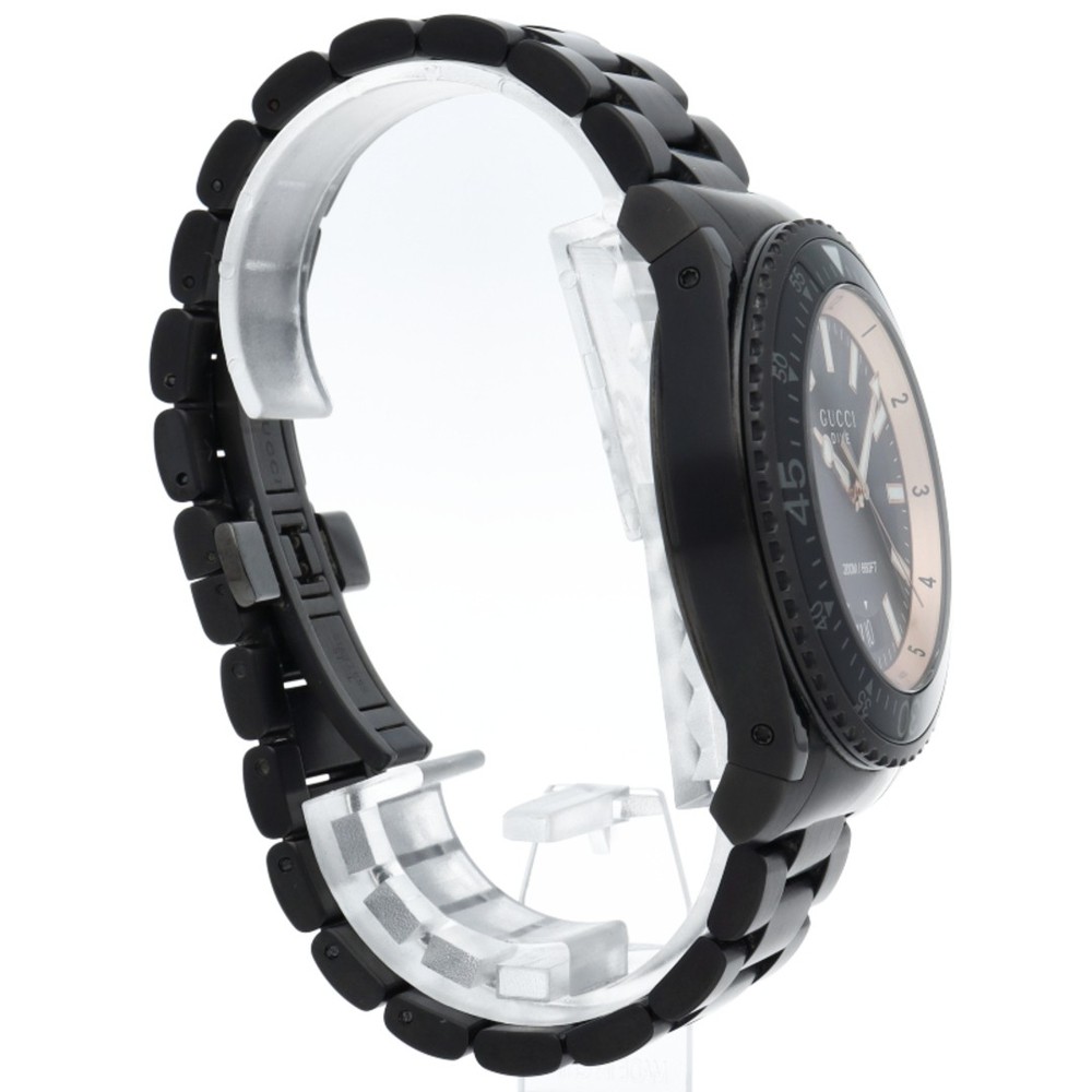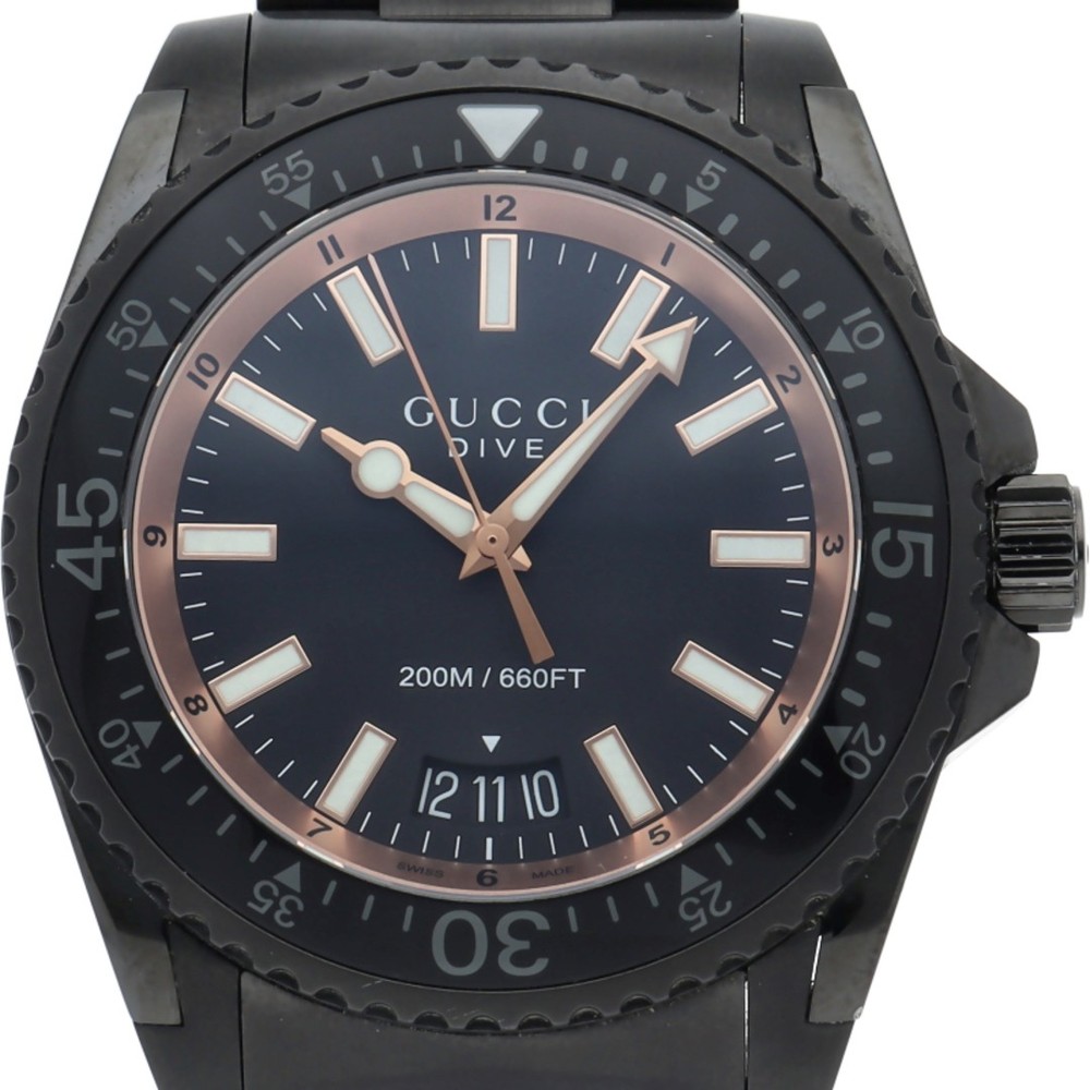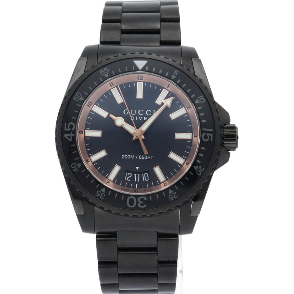 This Gucci Dive watch is a sleek and stylish timepiece perfect for any man who appreciates luxury. The black stainless steel design gives it a bold, modern look, while the durable build ensures it can handle everyday wear. The attention to detail is impressive, making it a standout accessory. Whether for casual or formal occasions, it adds a touch of sophistication. Highly recommended for those who want both quality and elegance in a watch.