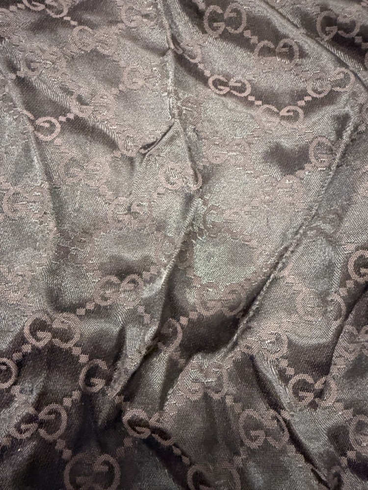 The Gucci Dust Bag in ivory satin is a stylish and practical accessory for storing and traveling with your designer handbags. Featuring a drawstring closure and accents of grosgrain, this unisex storage bag is made from luxurious polyester satin. Measuring 19" x15 ", it is the perfect size for carrying and protecting your fashion-forward items while on the go. The iconic Gucci brand ensures both quality and a touch of luxury to your travel ensemble.