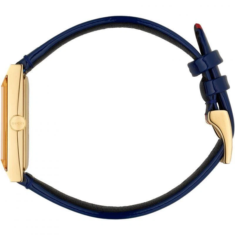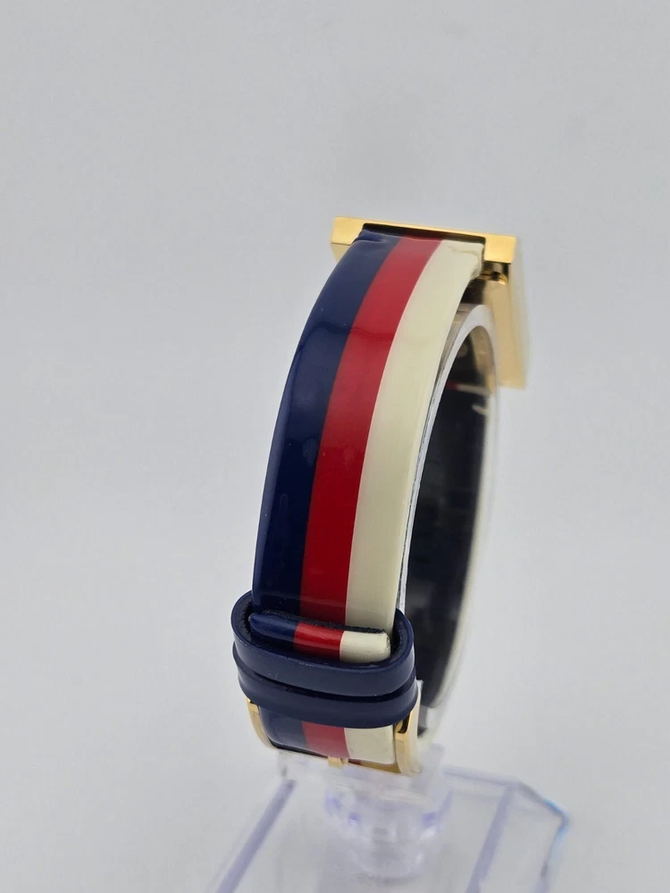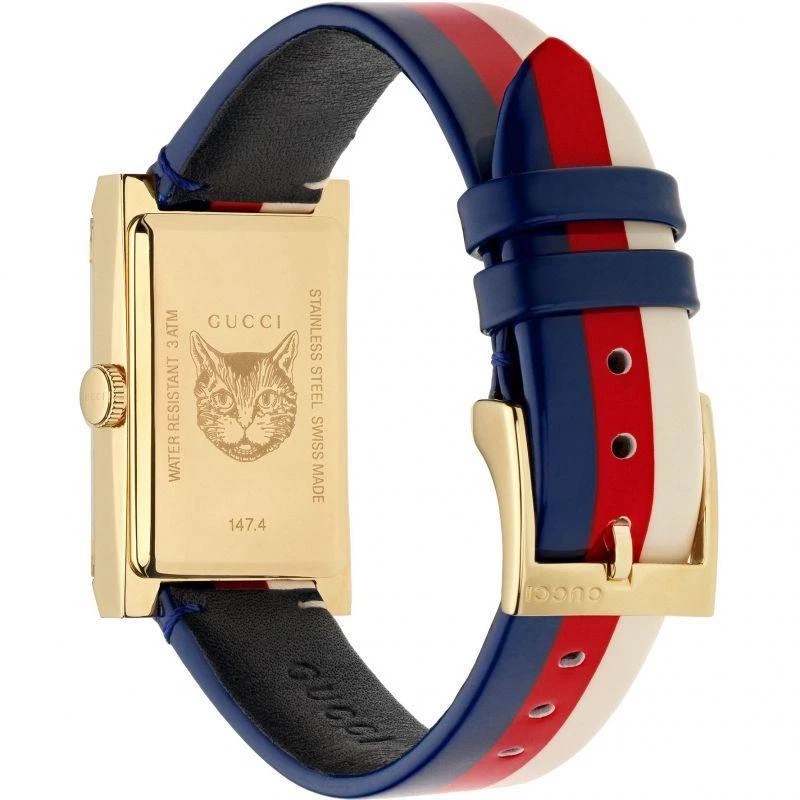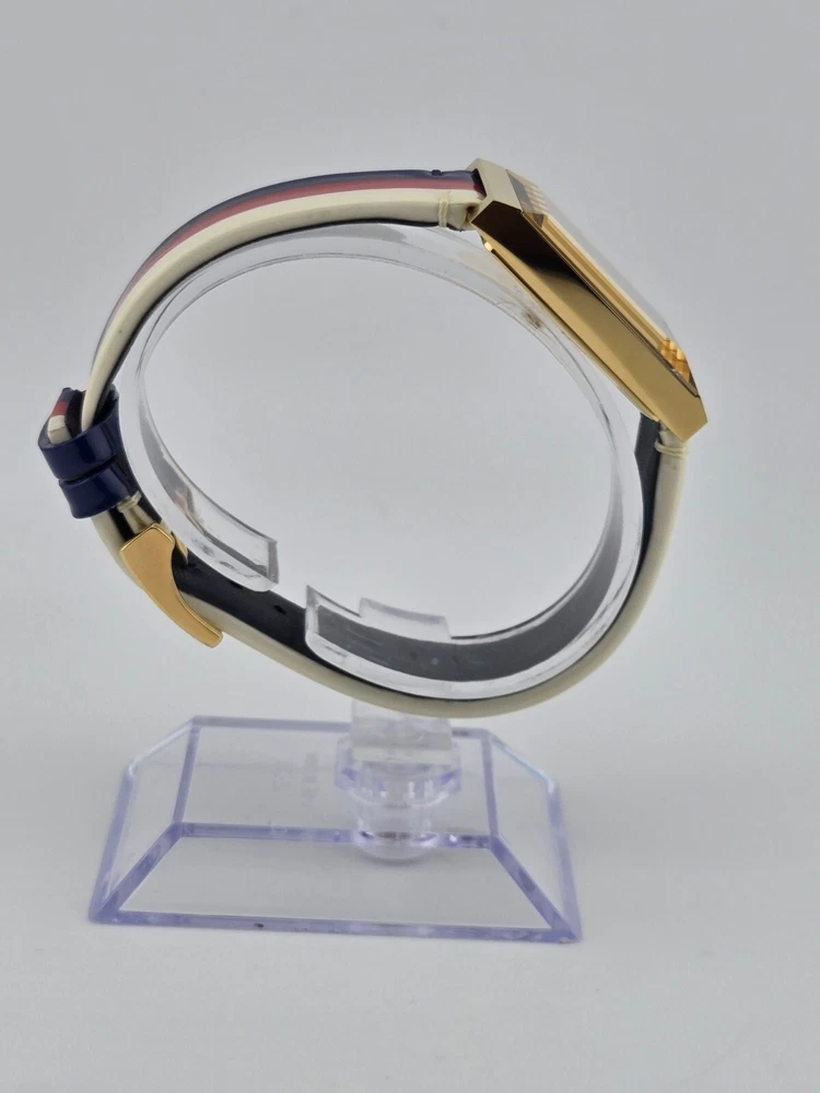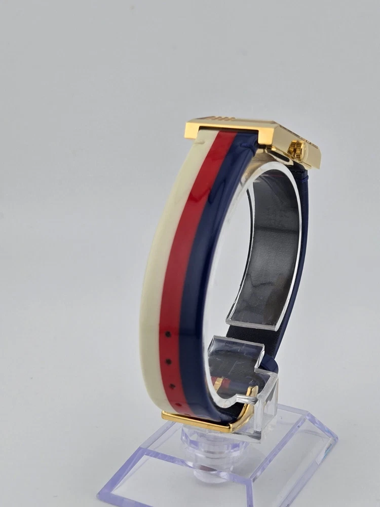 Gucci Women's G-Frame Multi-Color Quartz Ladies Watch - YA147409 ($1400 MSRP) New with Original Box and Tags! This watch is a Shelf Pull from one of the Major Department Stores. May find few micro scratches on the watch case/band, visible under a direct and strong light. The Gucci Women's G-Frame Multi-Color Quartz Ladies Watch - YA147409 exemplifies the brand's dedication to sophisticated design and impeccable craftsmanship. This elegant timepiece features a distinctive rectangular case made from high-quality stainless steel, measuring 21x34 mm with a thickness of 8 mm. The multi-color dial is protected by a scratch-resistant sapphire crystal, ensuring clarity and durability. Gold-tone hands and a gold-tone stainless steel bezel add a touch of luxury to the watch's overall aesthetic. Designed for women who appreciate both fashion and function, the G-Frame watch comes with a vibrant multi-color strap that adds a playful yet refined touch to any outfit. The strap, measuring 14 mm in width and designed to fit a men's standard length, is secured with a buckle clasp, providing a comfortable and adjustable fit. The watch is water-resistant up to 30 meters, making it suitable for everyday wear and light water activities. Powered by a precise quartz movement, this analog watch guarantees reliable timekeeping. The snap-down case back and push/pull crown add to the watch's practical features, ensuring ease of use and maintenance. With its combination of Swiss craftsmanship and Italian design flair, the Gucci Women's G-Frame Multi-Color Quartz Ladies Watch - YA147409 is a perfect accessory for those who demand the highest quality and style. Whether worn as an intricate evening accessory or a stylish everyday piece, this watch seamlessly blends traditional elegance with contemporary sophistication. Features Brand: Gucci Gender: Female Model: YA147409 Series: G-Frame Movement: Quartz Water Resistant: 30 Meters Band Color: Multi-color Band Width: 14 mm Band Length: Men's Standard Band Type: Strap Clasp: Buckle Case Material: Stainless Steel Case Size: 21x34 mm Case Thickness: 8 mm Case Shape: Rectangle Case Back Type: Snap-down Display Type: Analog Dial Color: Multi-color Crystal: Sapphire Crown: Push/Pull Bezel: Gold-Tone Stainless Steel Dial Hands: Gold-Tone Fast and Free Shipping You're already purchasing the item. Why pay additional for shipping, especially slow shipping? We get your order shipped out within 1-business day and delivered to your doorstep as quickly as possible. Competitive Pricing With our dynamic pricing model, our prices are always competitive. Our prices are some of the lowest that you will find on the internet. Rest assured that you're getting a good deal when purchasing with us. 30-day Money Back Guarantee We are committed to making sure that you leave this transaction satisfied. If you're unhappy with the product for any reason, you may return it back for your money-back or a replacement within 30 days. No questions asked!