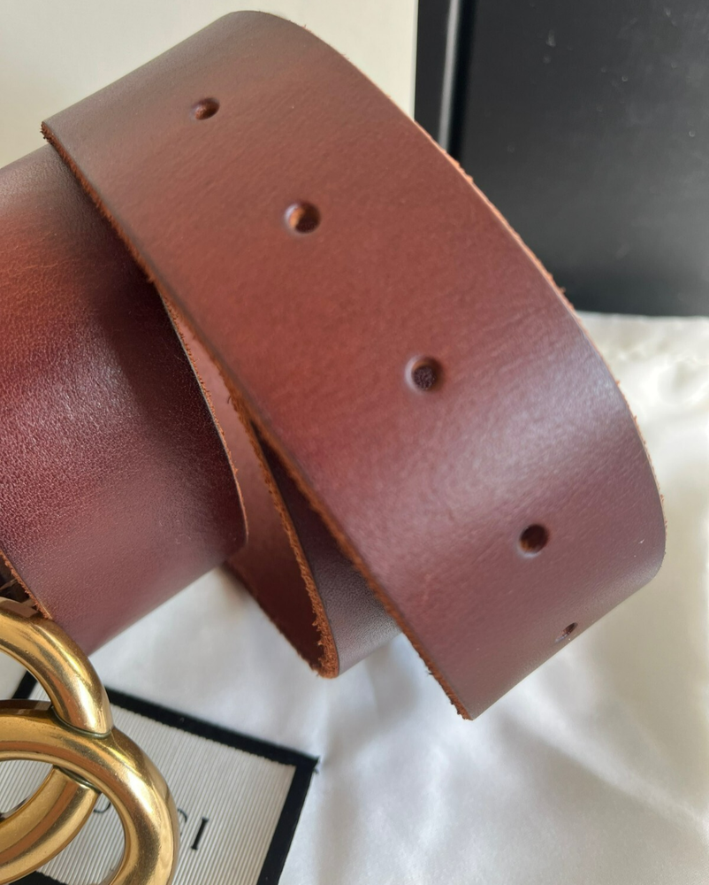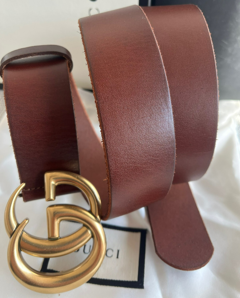 Gucci GG Buckle Women’s Leather Belt Color: Brown Material: Leather Buckle: GG Gold Brass Width: 1.5 inches Size: 105 cm (Fits waist size 36–38) Condition: Excellent / Like New — No signs of wear Includes: Dust Bag, and Tags Gucci women’s belt in pristine condition, clean and ready to wear.