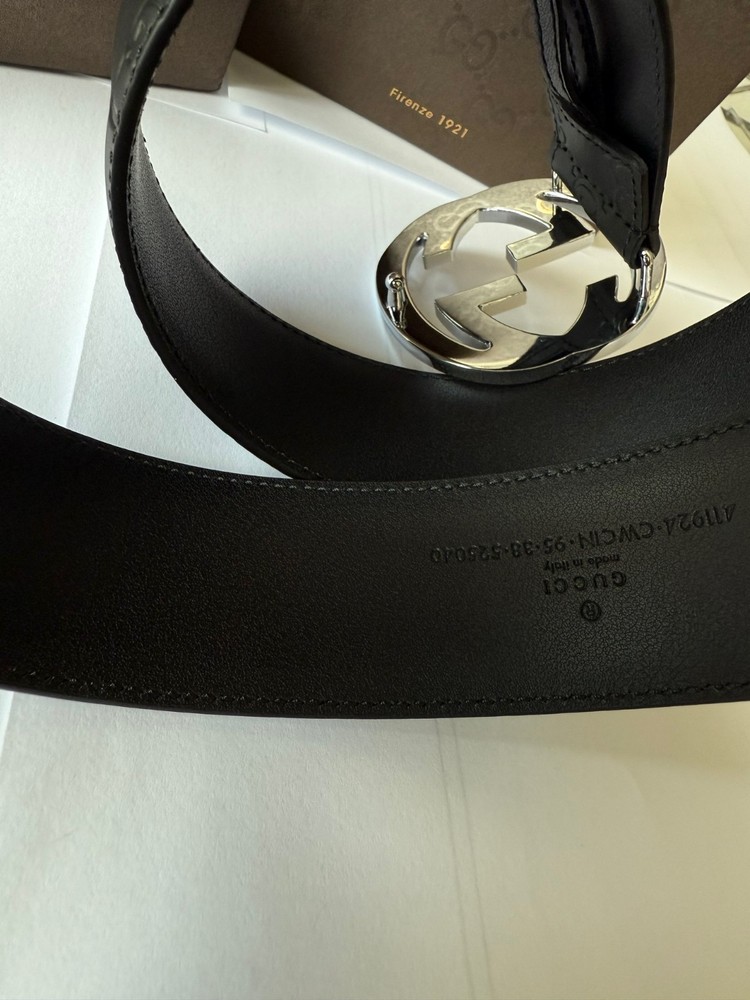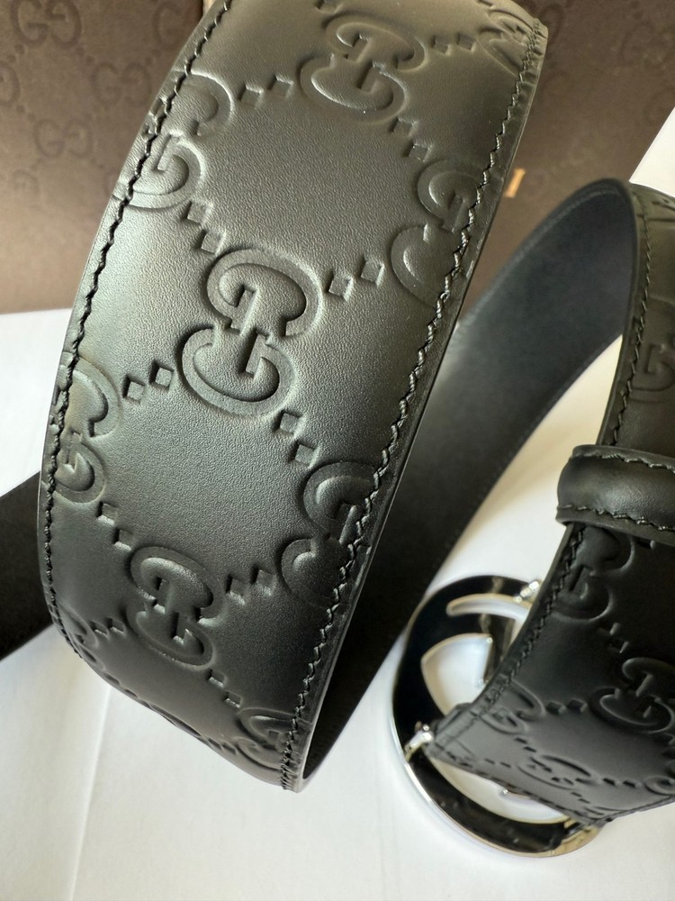 Gucci GG Buckle Black Signature Men's Leather Belt Size 95 cm fits 33-34 Waist, in EXCELLENT CONDITION Like New, Comes with Box & Dust Bag.