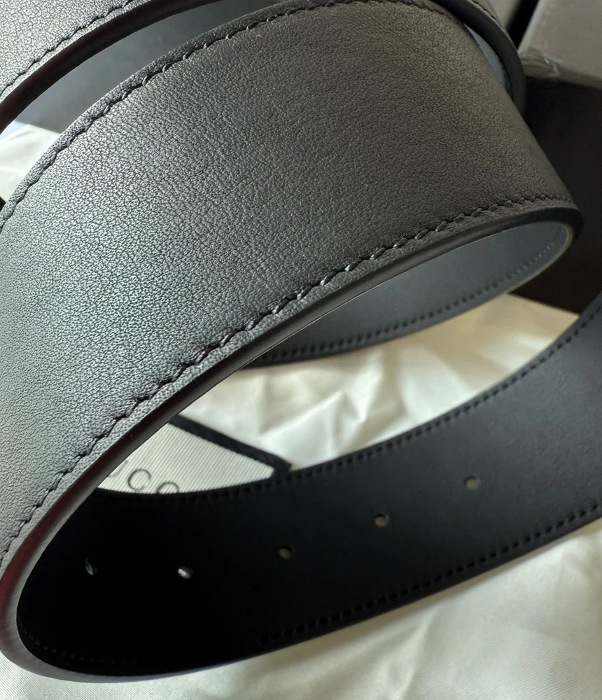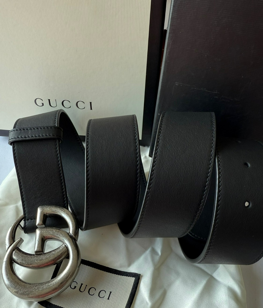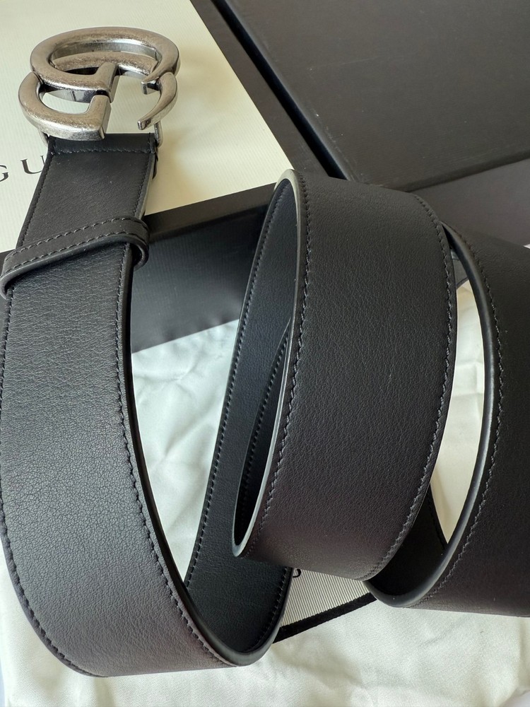 Gucci GG Marmont Black Leather Belt Silver Brass Buckle Size 105 cm fits 36/38 Waist in EXCELLENT CONDITION, Comes with BOX and Dust Bag.