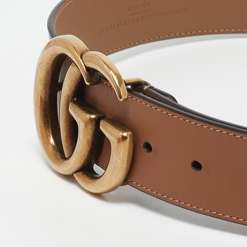 Gucci’s GG Marmont belt is crafted in tan leather with a sleek silhouette and adjustable fit. Defined by its timeless shape and neutral palette, this belt transitions seamlessly from denim to dresses. Wear it to cinch the waist or add a polished layer to structured separates.Certified by The Luxury Closet - This item has gone through a detailed authentication process overseen by our experts. We offer a lifetime guarantee of authenticity on all our items. Import duties, taxes and charges are not included in the item price. These charges are the buyers responsibility. Please check with your country’s customs office to determine what these additional cost will be prior to buying. Our eBay Store About Us Contact Us Add to Favorite Sellers Gucci Tan Leather GG Marmont Buckle Belt 70 CM $397.1 Gucci’s GG Marmont belt is crafted in tan leather with a sleek silhouette and adjustable fit. Defined by its timeless shape and neutral palette, this belt transitions seamlessly from denim to dresses. Wear it to cinch the waist or add a polished layer to structured separates. Product Details Brand Color Tan Dimensions Material Leather Size 70 CM Outsole Width Outsole Length Heel Height Includes Certified by The Luxury Closet This item has gone through a detailed authentication process overseen by our experts. We offer a lifetime guarantee of authenticity on all our items. How We Check The in-house team of experts at The Luxury Closet is highly trained to verify the authenticity and the condition of the luxury products. They ensure that only 100% authentic items are put on sale.The evaluation process is unique with its own mix of assessment criteria and differs according to the category. Each item is evaluated based on the following combination of hallmarks, hardware, stitching, symmetry, material, craftsmanship, stamping, codes, hologram stickers, and packaging. Our authenticators also check if the items have been modified or amended (e.g., aftermarket diamonds, replaced batteries, repaired bags, etc.) International Buyers Import duties, taxes and charges are not included in the item price. These charges are the buyers responsibility. Please check with your country’s customs office to determine what these additional cost will be prior to buying.