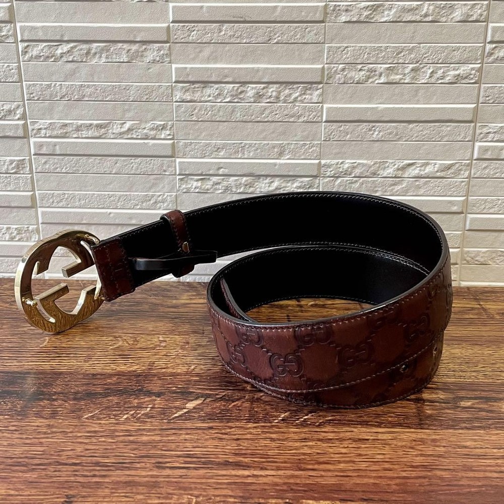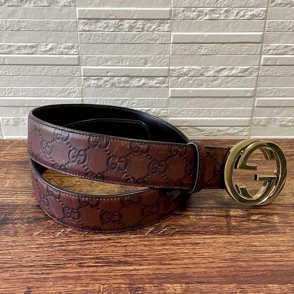 Thank you for your visiting our page! Condition Description Gucci GG Shima Guccissima Brown Leather Belt Interlocking Auth From Japan Size Total length: 95 cm ≈ 37.40 inches Width: 4 cm ≈ 1.57 inches Wearing waist size: 78–83 cm ≈ 30.71–32.68 inches Condition The leather surface is clean with little fading. The brown color makes it easy to match with a variety of outfits. It's instantly recognizable as a GUCCI belt. The GG buckle is the highlight The plating is clean and not peeling off. The surface has been treated with delicate cream. There is no major dirt or damage, and it is a product that can be used normally without any problems. Color Brown Material Leather Please Note shipping from Japan. Policy Payment You can use various payment methods based on eBay Managed Payments. Import duties, taxes and charges are not included in the item price or shipping charges. These charges are the buyer's responsibility. Cancellations & Returns Cancellation or returns will be accepted only if the item has an obvious problem that was not mentioned in the listing description. If that, please let us know within 3 days you got the item. Buyer is responsible for shipping costs and any charge incurred shipping products back. International Buyers Import duties, taxes and charges are not included in the item price or shipping charges. These charges are the buyer's responsibility. Please check with your country's customs office to determine what these additional costs will be prior to bidding/buying. These charges are normally collected by the delivering freight (shipping) company or when you pick the item up - do not confuse them for additional shipping charges.