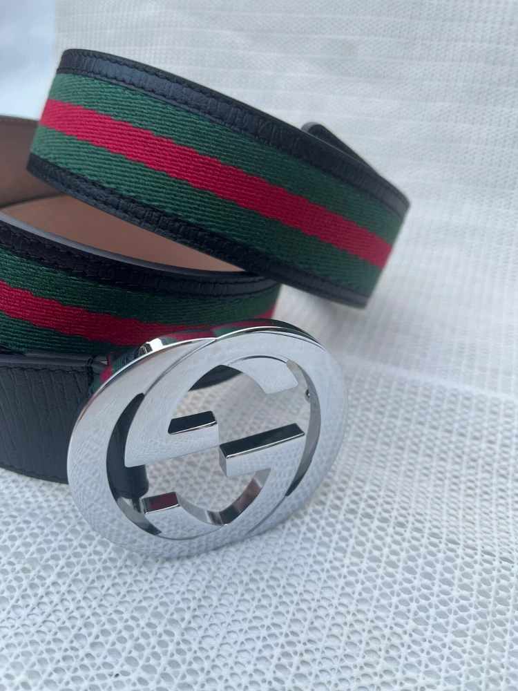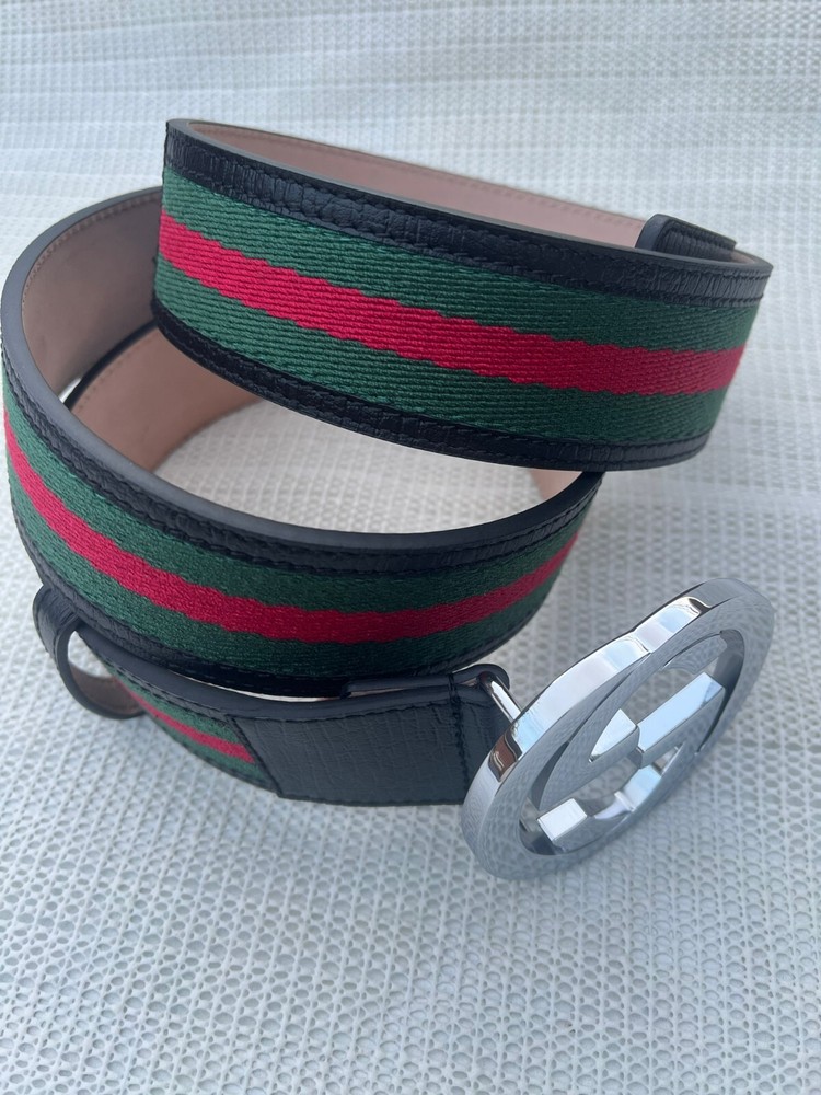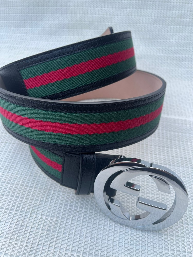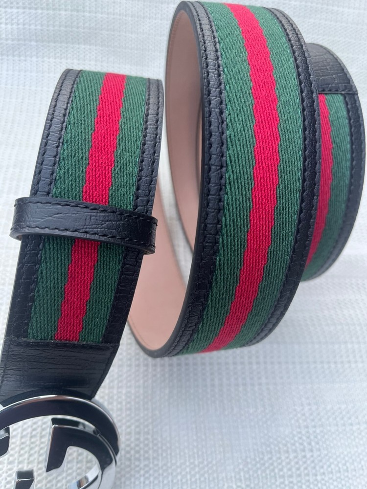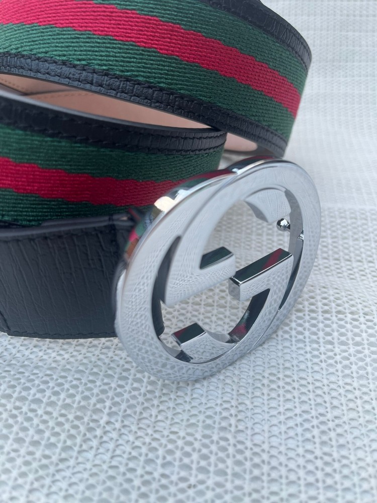 Gucci GG Silver Interlocking Buckle Web Belt Black, Green, Red Canvas Size 115 cm Fit's 40-42 waist , come's with Dust Bag , Box & Tag's in Excellent Condition like NEW.