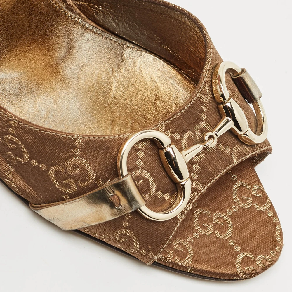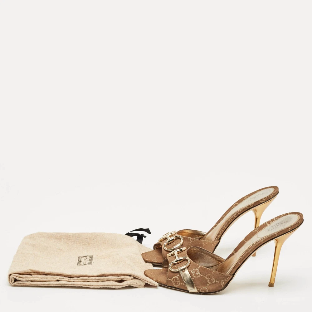 Gucci GG Supreme Gold Horsebit Slide Sandals Size 39 Open Toe