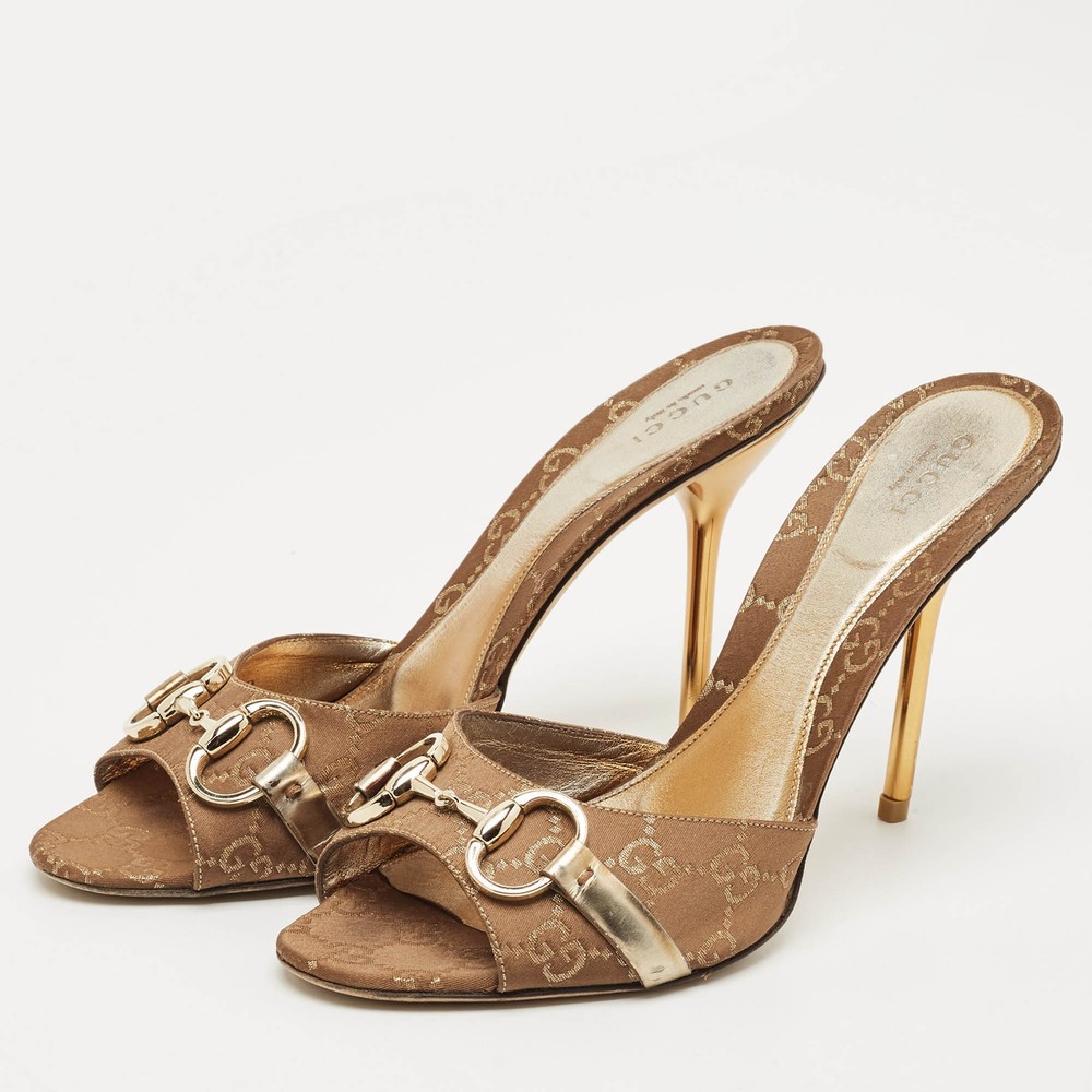 Gucci infuses glam into everyday slides with gold GG Supreme canvas and heritage Horsebit detailing. Open toe and effortlessly chic, they embody the brand’s maximalist DNA.Certified by The Luxury Closet - This item has gone through a detailed authentication process overseen by our experts. We offer a lifetime guarantee of authenticity on all our items. Import duties, taxes and charges are not included in the item price. These charges are the buyers responsibility. Please check with your country’s customs office to determine what these additional cost will be prior to buying. Our eBay Store About Us Contact Us Add to Favorite Sellers Gucci Gold GG Supreme Canvas Horsebit Open Toe Slide Sandals Size 39 $489.5 Gucci infuses glam into everyday slides with gold GG Supreme canvas and heritage Horsebit detailing. Open toe and effortlessly chic, they embody the brand’s maximalist DNA. Product Details Brand Color Gold Dimensions Material Canvas, Leather Size 39 Outsole Width Outsole Length Heel Height Includes Certified by The Luxury Closet This item has gone through a detailed authentication process overseen by our experts. We offer a lifetime guarantee of authenticity on all our items. How We Check The in-house team of experts at The Luxury Closet is highly trained to verify the authenticity and the condition of the luxury products. They ensure that only 100% authentic items are put on sale.The evaluation process is unique with its own mix of assessment criteria and differs according to the category. Each item is evaluated based on the following combination of hallmarks, hardware, stitching, symmetry, material, craftsmanship, stamping, codes, hologram stickers, and packaging. Our authenticators also check if the items have been modified or amended (e.g., aftermarket diamonds, replaced batteries, repaired bags, etc.) International Buyers Import duties, taxes and charges are not included in the item price. These charges are the buyers responsibility. Please check with your country’s customs office to determine what these additional cost will be prior to buying.