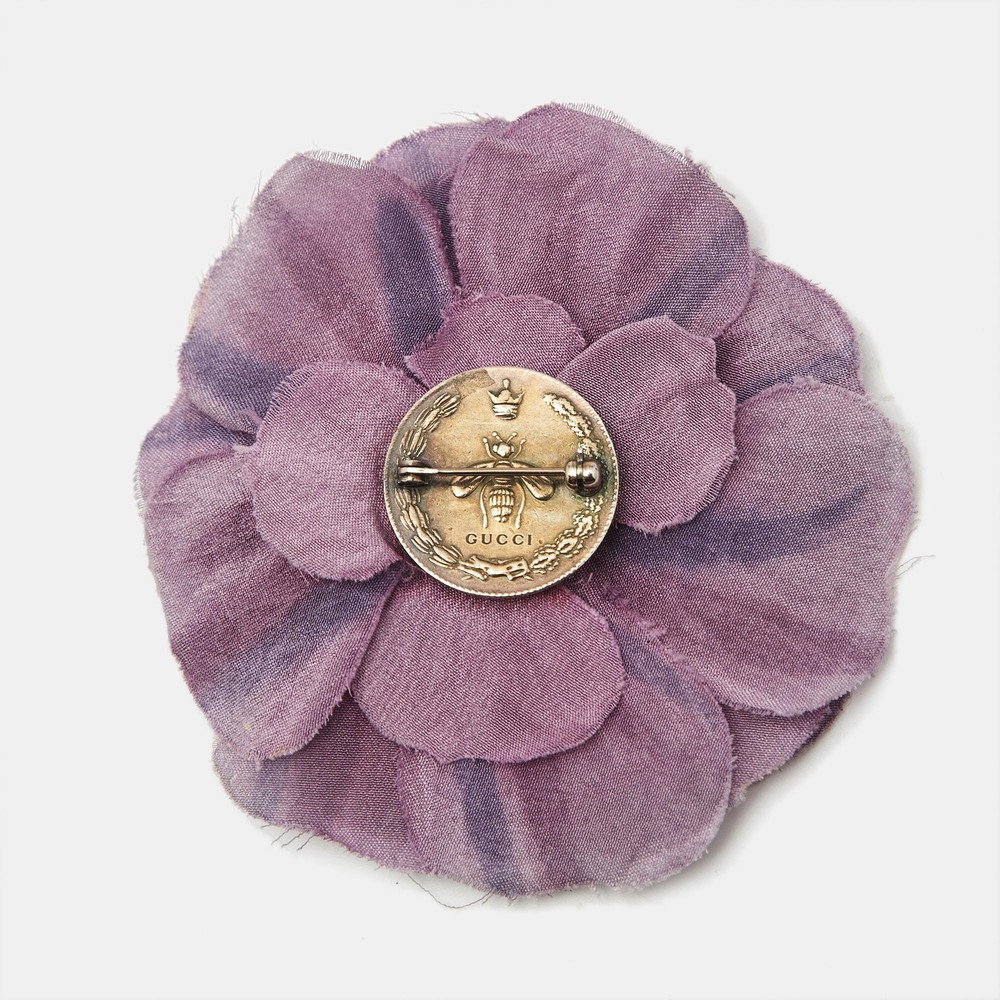 Gucci’s brooch is made from floral fabric with a gold tone base and a gathered silhouette. Romantic and maximal, it adds a pop of personality to jackets, scarves, or bags. A bold accent for styling with flair.Certified by The Luxury Closet - This item has gone through a detailed authentication process overseen by our experts. We offer a lifetime guarantee of authenticity on all our items. Import duties, taxes and charges are not included in the item price. These charges are the buyers responsibility. Please check with your country’s customs office to determine what these additional cost will be prior to buying. Our eBay Store About Us Contact Us Add to Favorite Sellers Gucci Floral Fabric Gold Tone Brooch $292.6 Gucci’s brooch is made from floral fabric with a gold tone base and a gathered silhouette. Romantic and maximal, it adds a pop of personality to jackets, scarves, or bags. A bold accent for styling with flair. Product Details Brand Color Gold Dimensions Material Fabric Size Outsole Width Outsole Length Heel Height Includes Certified by The Luxury Closet This item has gone through a detailed authentication process overseen by our experts. We offer a lifetime guarantee of authenticity on all our items. How We Check The in-house team of experts at The Luxury Closet is highly trained to verify the authenticity and the condition of the luxury products. They ensure that only 100% authentic items are put on sale.The evaluation process is unique with its own mix of assessment criteria and differs according to the category. Each item is evaluated based on the following combination of hallmarks, hardware, stitching, symmetry, material, craftsmanship, stamping, codes, hologram stickers, and packaging. Our authenticators also check if the items have been modified or amended (e.g., aftermarket diamonds, replaced batteries, repaired bags, etc.) International Buyers Import duties, taxes and charges are not included in the item price. These charges are the buyers responsibility. Please check with your country’s customs office to determine what these additional cost will be prior to buying.