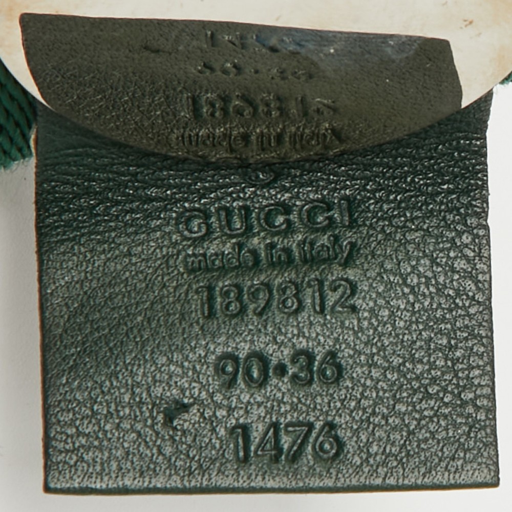 Elevate your ensemble with this exquisite belt from a renowned Italian fashion house. Crafted from fine fabric, its iconic green and red web pattern speaks to timeless elegance. Perfectly suited for women with a flair for sophistication, this accessory seamlessly marries classic design with modern artistry. The distinct buckle adds a touch of exclusivity, ensuring a seamless blend of luxe style and functionality. An impeccable addition to any fashion forward wardrobe, crafted with passion and precision.Certified by The Luxury Closet - This item has gone through a detailed authentication process overseen by our experts. We offer a lifetime guarantee of authenticity on all our items. Import duties, taxes and charges are not included in the item price. These charges are the buyers responsibility. Please check with your country’s customs office to determine what these additional cost will be prior to buying. Our eBay Store About Us Contact Us Add to Favorite Sellers Gucci Green/Red Fabric Web Buckle Belt 90CM $235.4 Elevate your ensemble with this exquisite belt from a renowned Italian fashion house. Crafted from fine fabric, its iconic green and red web pattern speaks to timeless elegance. Perfectly suited for women with a flair for sophistication, this accessory seamlessly marries classic design with modern artistry. The distinct buckle adds a touch of exclusivity, ensuring a seamless blend of luxe style and functionality. An impeccable addition to any fashion forward wardrobe, crafted with passion and precision. Product Details Brand Color Green Dimensions Width: 4 cm, Length: 90 cm Material Fabric Size M Outsole Width Outsole Length Heel Height Includes Original Dustbag Certified by The Luxury Closet This item has gone through a detailed authentication process overseen by our experts. We offer a lifetime guarantee of authenticity on all our items. How We Check The in-house team of experts at The Luxury Closet is highly trained to verify the authenticity and the condition of the luxury products. They ensure that only 100% authentic items are put on sale.The evaluation process is unique with its own mix of assessment criteria and differs according to the category. Each item is evaluated based on the following combination of hallmarks, hardware, stitching, symmetry, material, craftsmanship, stamping, codes, hologram stickers, and packaging. Our authenticators also check if the items have been modified or amended (e.g., aftermarket diamonds, replaced batteries, repaired bags, etc.) International Buyers Import duties, taxes and charges are not included in the item price. These charges are the buyers responsibility. Please check with your country’s customs office to determine what these additional cost will be prior to buying.