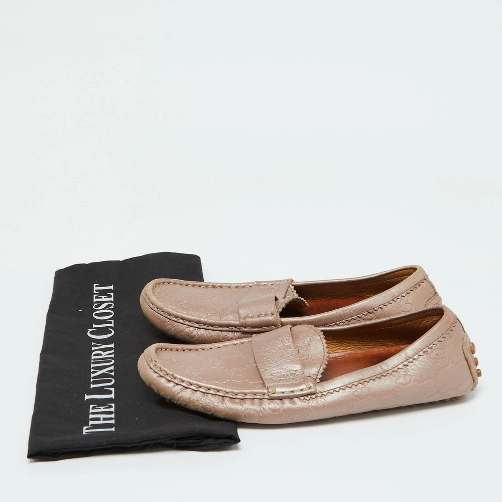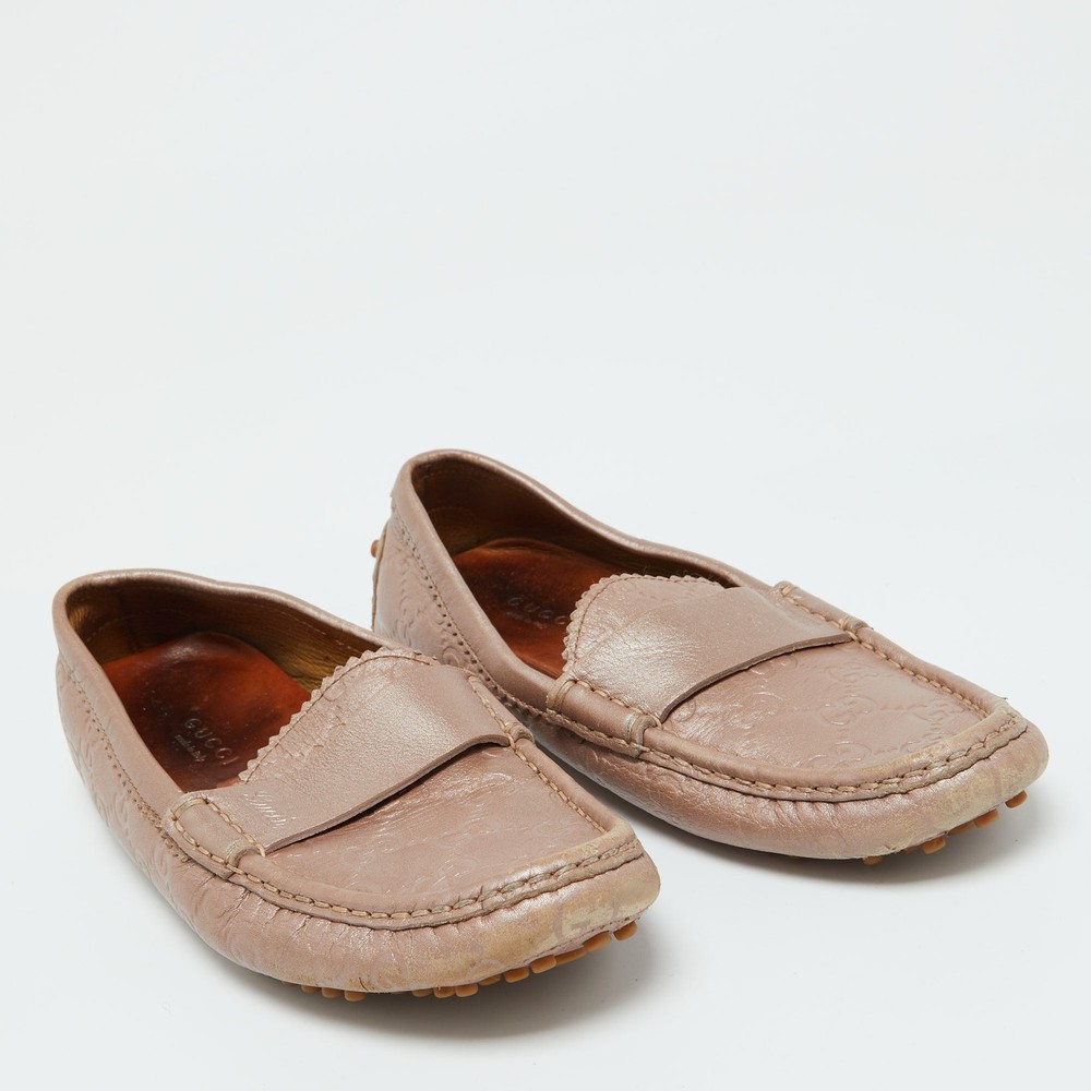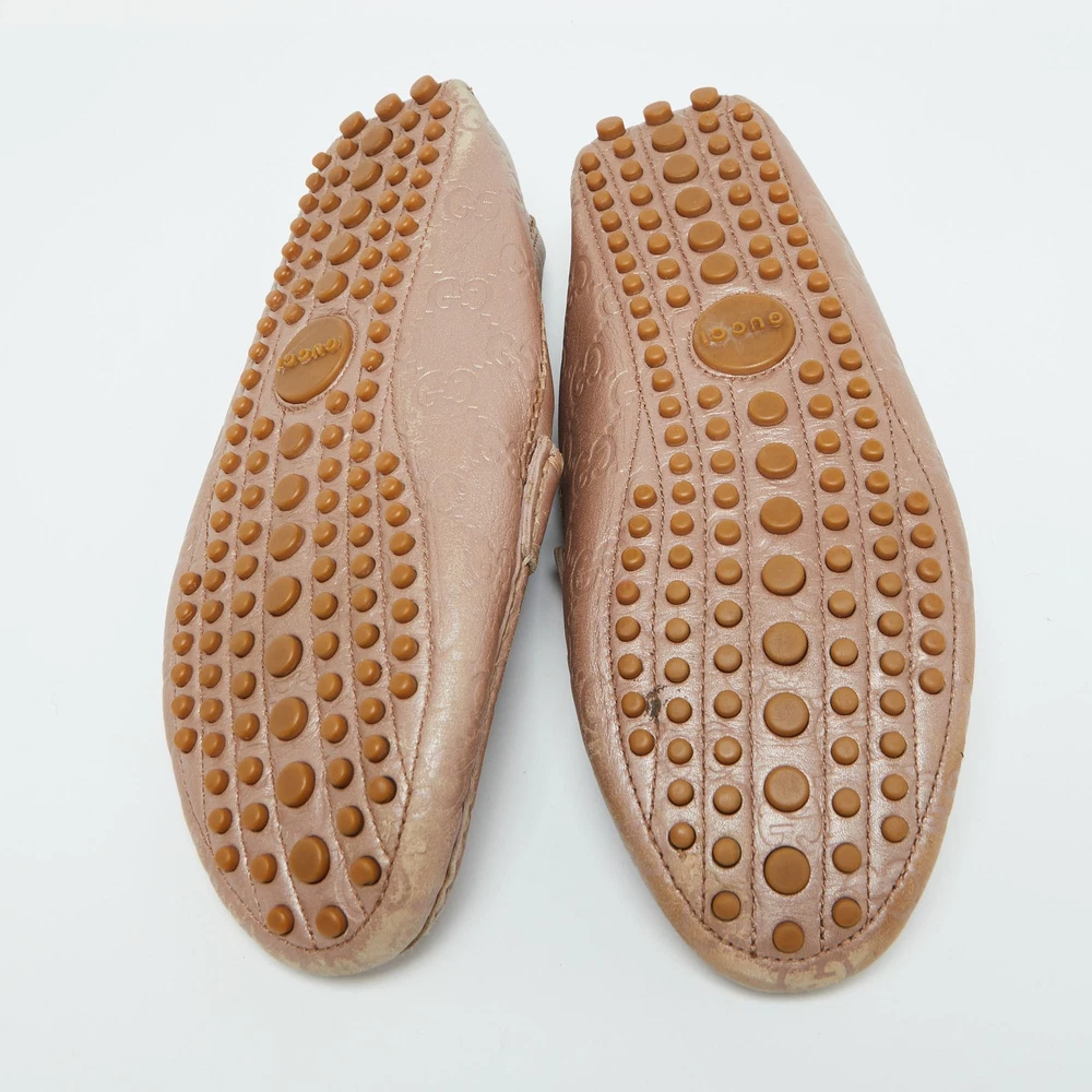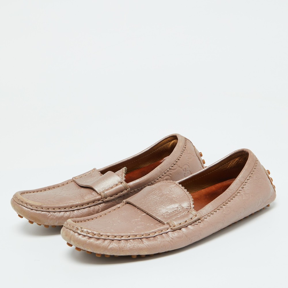 Practical, fashionable, and durable—these Gucci loafers are carefully built to be fine companions to your everyday style. They come made using the best materials to be a prized buy.Certified by The Luxury Closet - This item has gone through a detailed authentication process overseen by our experts. We offer a lifetime guarantee of authenticity on all our items. Import duties, taxes and charges are not included in the item price. These charges are the buyers responsibility. Please check with your country’s customs office to determine what these additional cost will be prior to buying. Our eBay Store About Us Contact Us Add to Favorite Sellers Gucci Champagne Pink Guccissima Leather Slip On Loafers Size 35.5 $165 Practical, fashionable, and durable—these Gucci loafers are carefully built to be fine companions to your everyday style. They come made using the best materials to be a prized buy. Product Details Brand Color Pink Dimensions Material Leather Size 35.5 Outsole Width 9 cm Outsole Length 26 cm Heel Height Includes The Luxury Closet Packaging Certified by The Luxury Closet This item has gone through a detailed authentication process overseen by our experts. We offer a lifetime guarantee of authenticity on all our items. How We Check The in-house team of experts at The Luxury Closet is highly trained to verify the authenticity and the condition of the luxury products. They ensure that only 100% authentic items are put on sale.The evaluation process is unique with its own mix of assessment criteria and differs according to the category. Each item is evaluated based on the following combination of hallmarks, hardware, stitching, symmetry, material, craftsmanship, stamping, codes, hologram stickers, and packaging. Our authenticators also check if the items have been modified or amended (e.g., aftermarket diamonds, replaced batteries, repaired bags, etc.) International Buyers Import duties, taxes and charges are not included in the item price. These charges are the buyers responsibility. Please check with your country’s customs office to determine what these additional cost will be prior to buying.