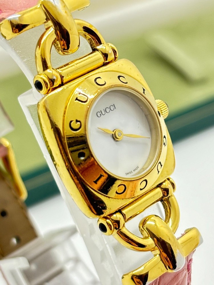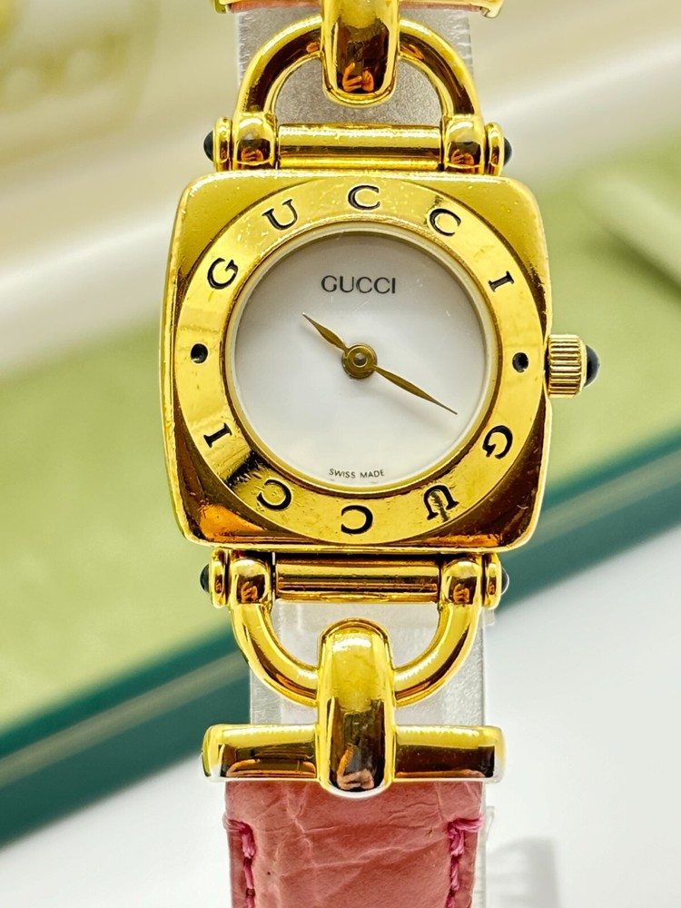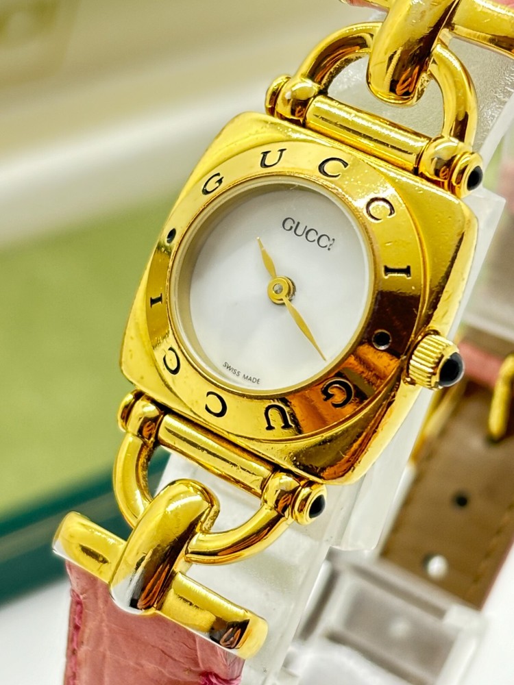 [Exc+5] GUCCI 3000L WOMEN'S GOLD BLACK VINTAGE WATCH QUARTZ Used Working F/S