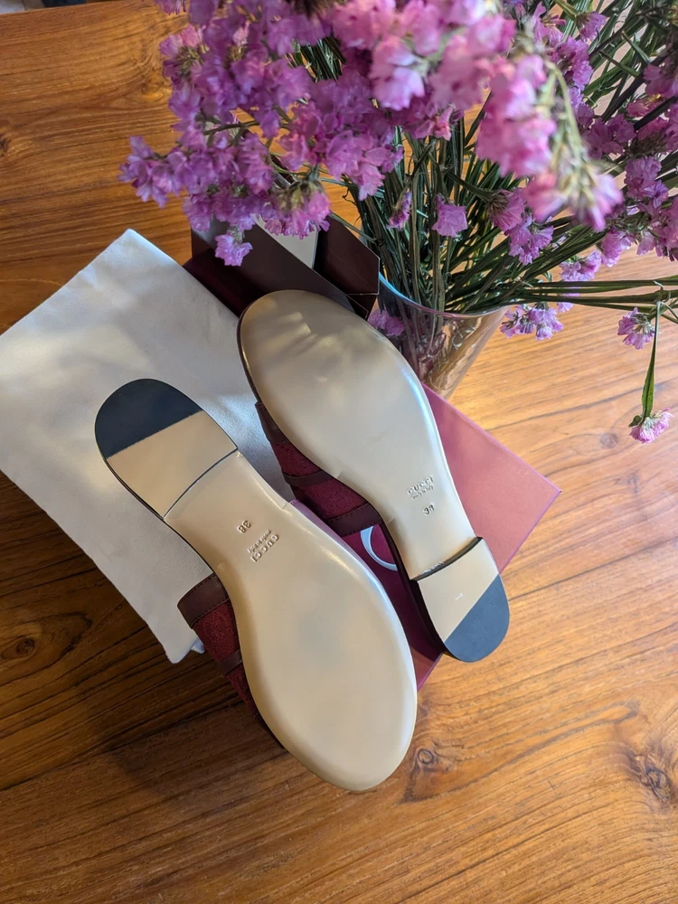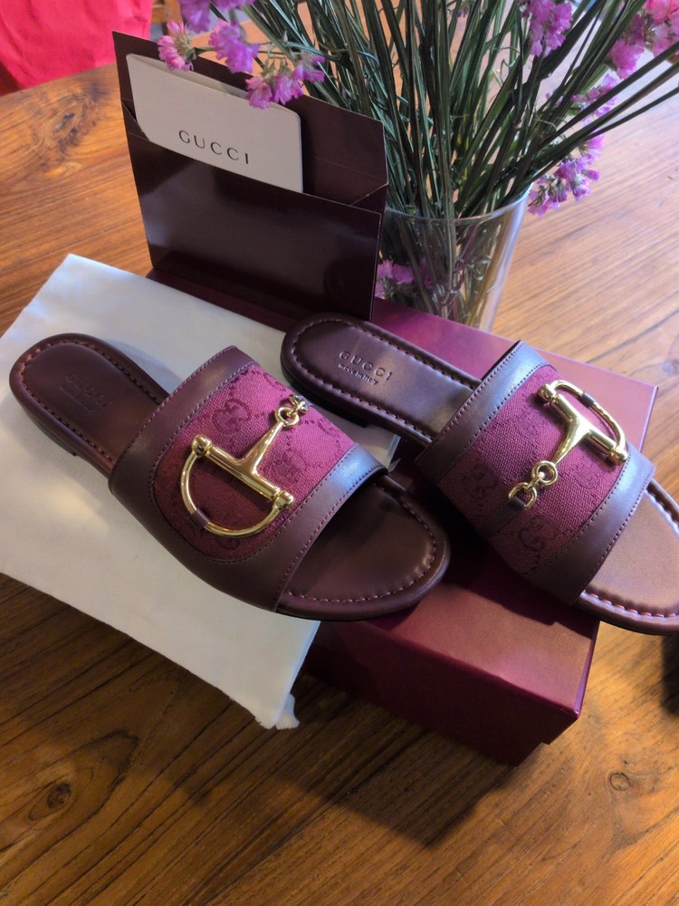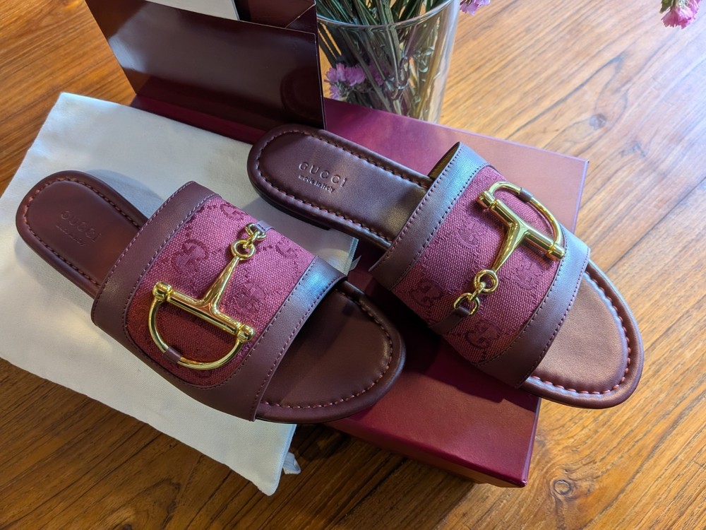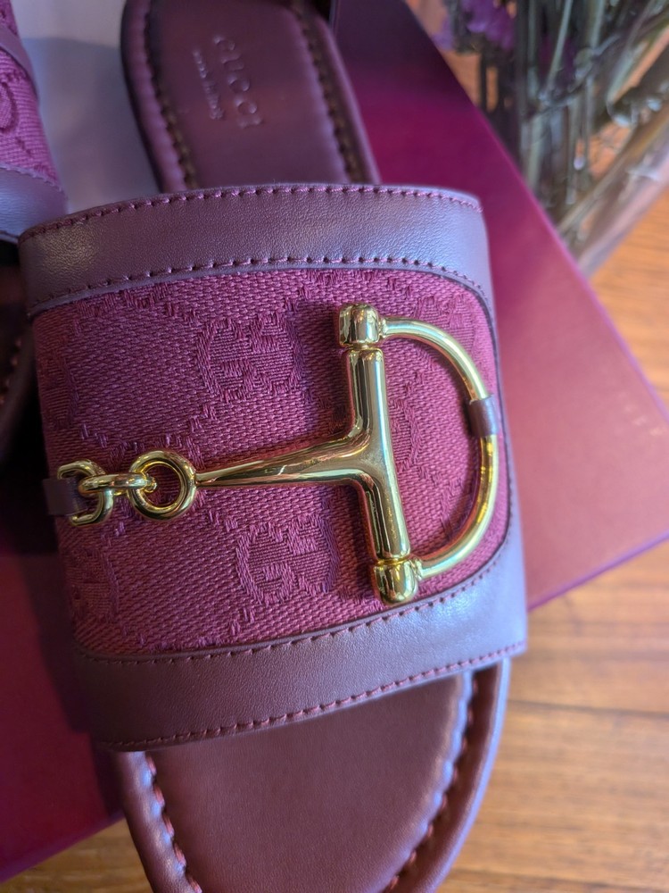Gucci Horsebit Slide Sandals Red Anchor Bordeaux GG Logo 38 Women New