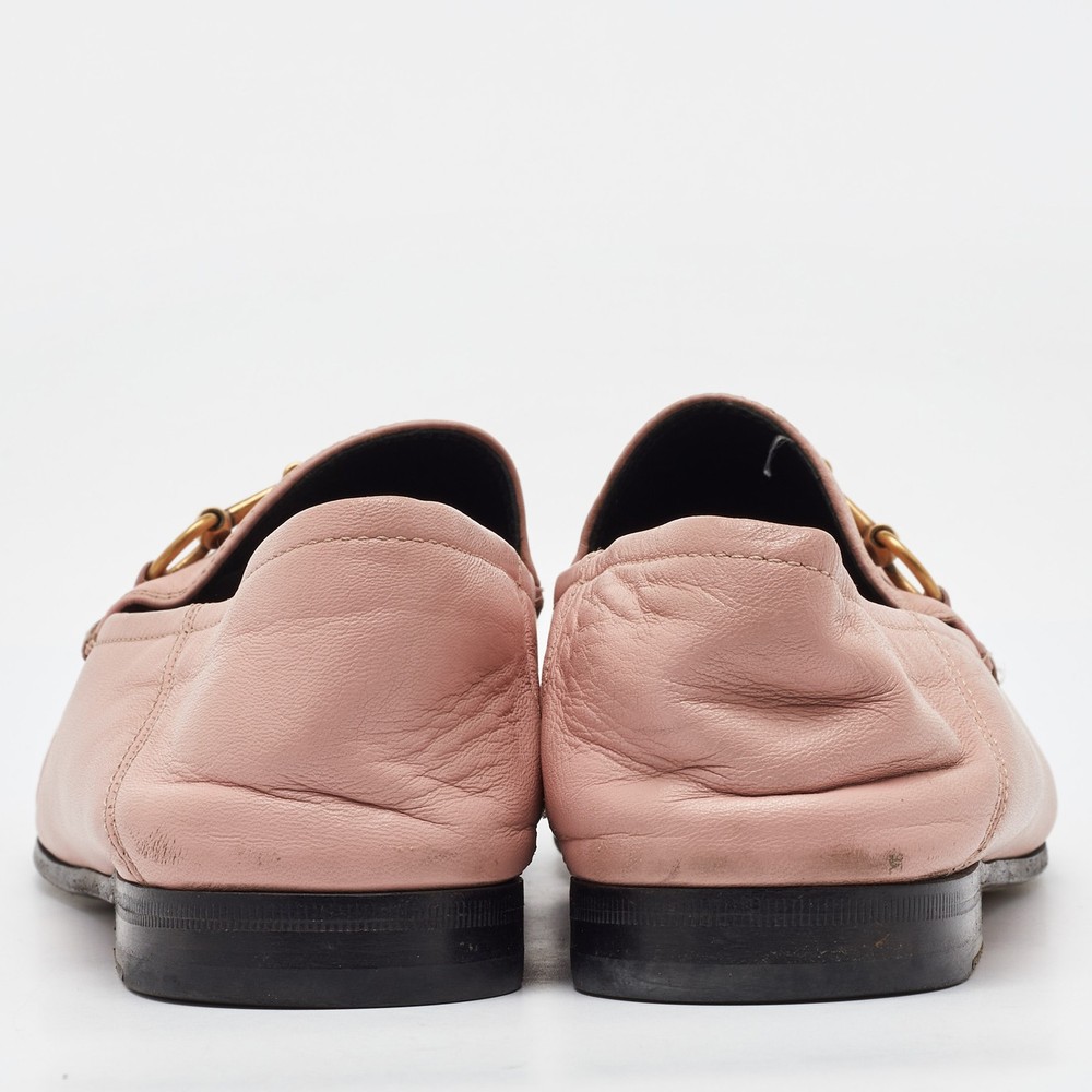 The Gucci loafers are a luxurious fusion of classic design and contemporary elegance. Featuring the iconic Horsebit detail, these loafers are crafted from soft, premium leather in a delicate light pink hue, perfect for adding a touch of sophistication to any outfit. With their sleek, slip on style, they offer both comfort and timeless appeal, making them a standout piece in any wardrobe.Certified by The Luxury Closet - This item has gone through a detailed authentication process overseen by our experts. We offer a lifetime guarantee of authenticity on all our items. Import duties, taxes and charges are not included in the item price. These charges are the buyers responsibility. Please check with your country’s customs office to determine what these additional cost will be prior to buying. Our eBay Store About Us Contact Us Add to Favorite Sellers Gucci Light Pink Leather Jordaan Horsebit Loafers Size 41.5 $273.9 The Gucci loafers are a luxurious fusion of classic design and contemporary elegance. Featuring the iconic Horsebit detail, these loafers are crafted from soft, premium leather in a delicate light pink hue, perfect for adding a touch of sophistication to any outfit. With their sleek, slip on style, they offer both comfort and timeless appeal, making them a standout piece in any wardrobe. Product Details Brand Color Pink Dimensions Material Leather Size 41.5 Outsole Width 9 cm Outsole Length 27 cm Heel Height Includes The Luxury Closet Packaging Certified by The Luxury Closet This item has gone through a detailed authentication process overseen by our experts. We offer a lifetime guarantee of authenticity on all our items. How We Check The in-house team of experts at The Luxury Closet is highly trained to verify the authenticity and the condition of the luxury products. They ensure that only 100% authentic items are put on sale.The evaluation process is unique with its own mix of assessment criteria and differs according to the category. Each item is evaluated based on the following combination of hallmarks, hardware, stitching, symmetry, material, craftsmanship, stamping, codes, hologram stickers, and packaging. Our authenticators also check if the items have been modified or amended (e.g., aftermarket diamonds, replaced batteries, repaired bags, etc.) International Buyers Import duties, taxes and charges are not included in the item price. These charges are the buyers responsibility. Please check with your country’s customs office to determine what these additional cost will be prior to buying.